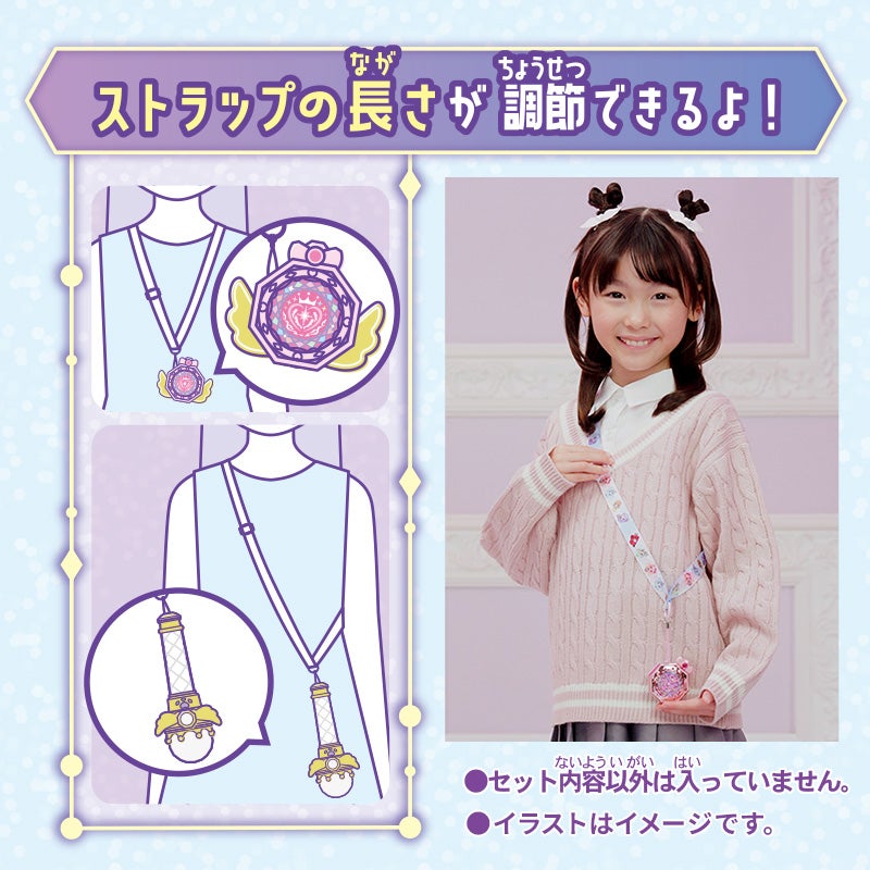 ミラーパクトやコスメ、ぬいぐるみなどアイプリグッズを持ち運べるマルチストラップ。 長さを調整してショルダーストラップやネックストラップにもアレンジができます。