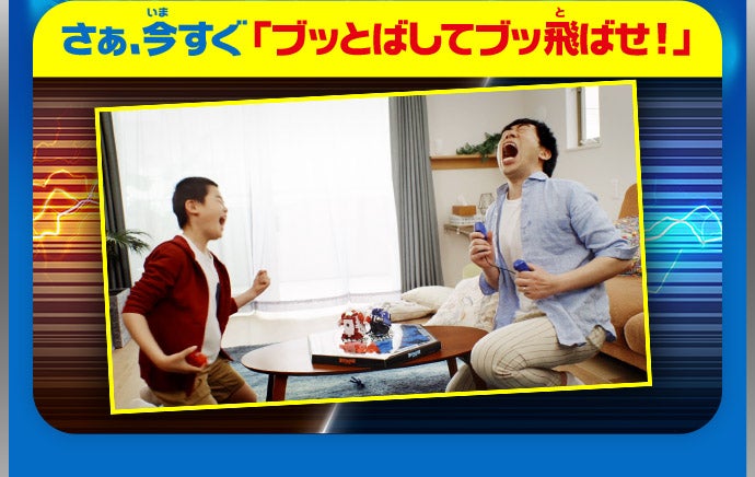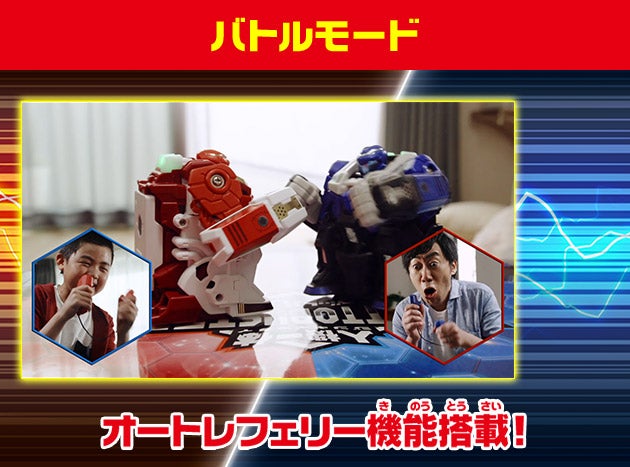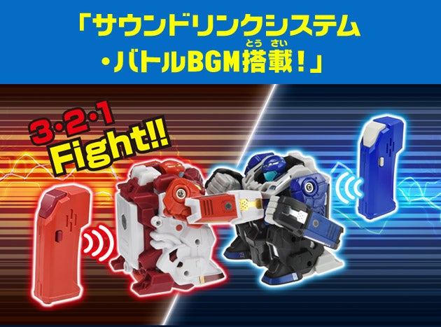 お互いのコントローラーと機体がリンクすることで、対戦時にバトルBGMで戦いをより盛り上げてくれるぞ!