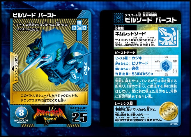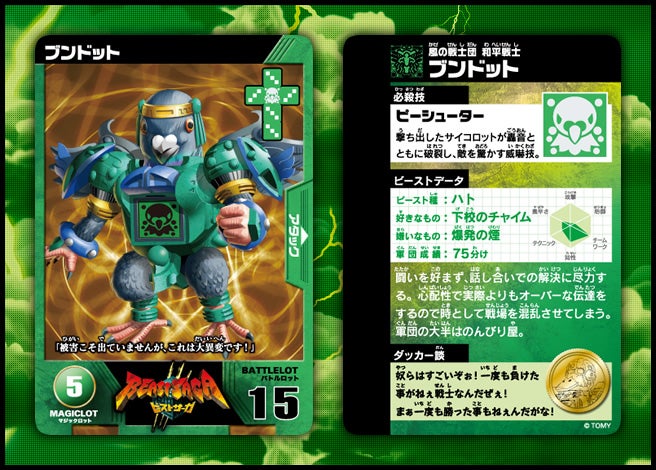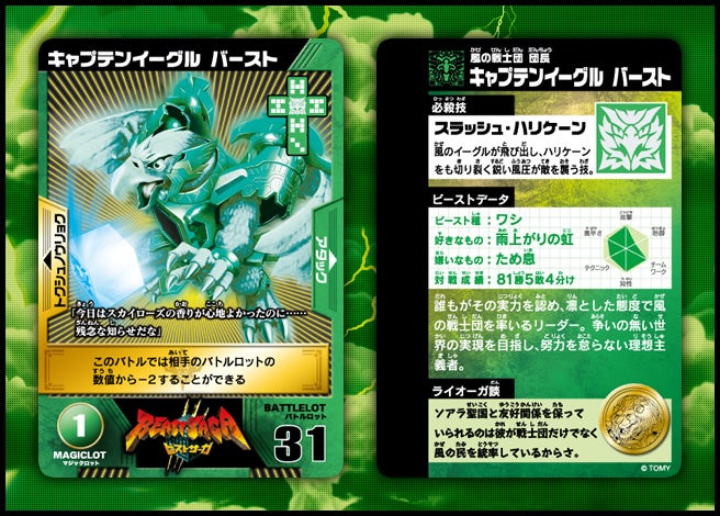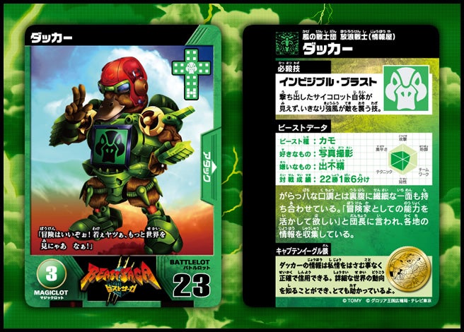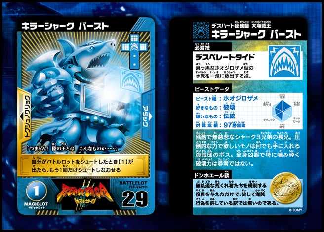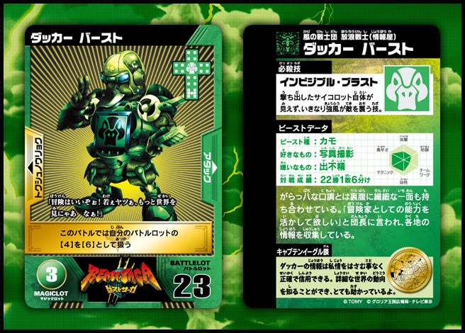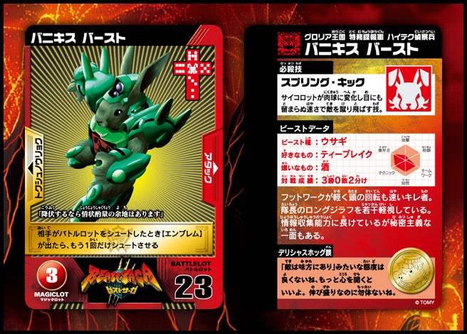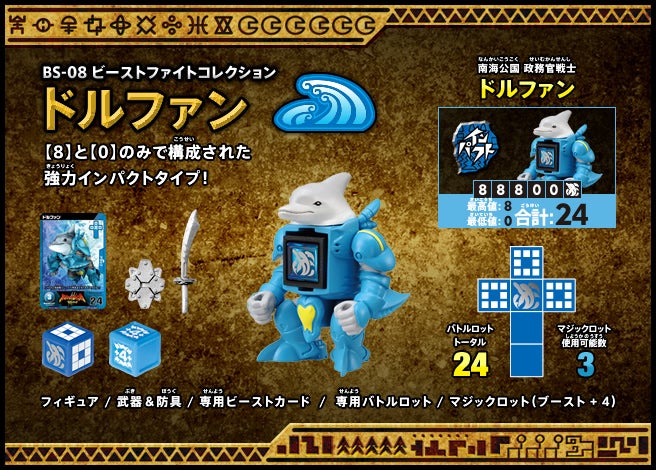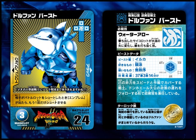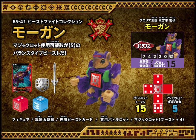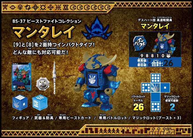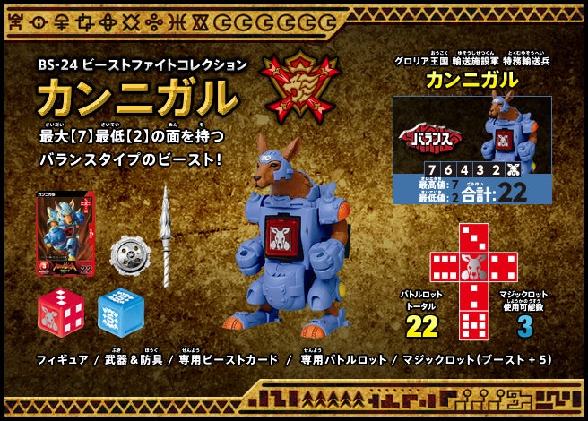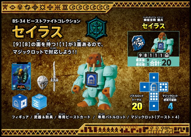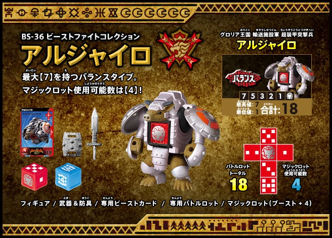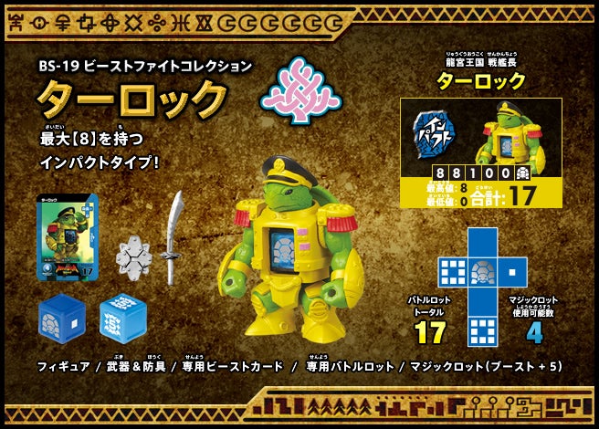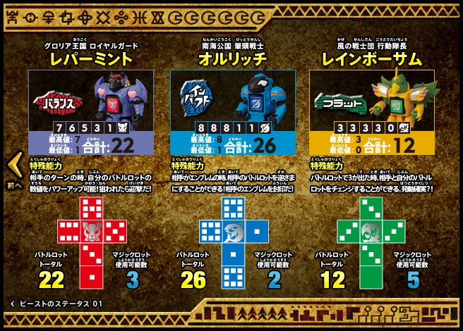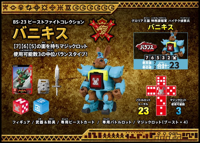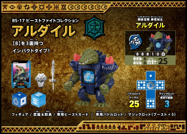 すぐバトルを始(はじ)めることができるスターター、種類(しゅるい)が選(えら)べるブースター、デッキを強化(きょうか)できるランダムブースター、さらに強化(きょうか)アイテムやセットなど、ダイスバトルに必要(ひつよう)な最新(さいしん)ラインナップだ!