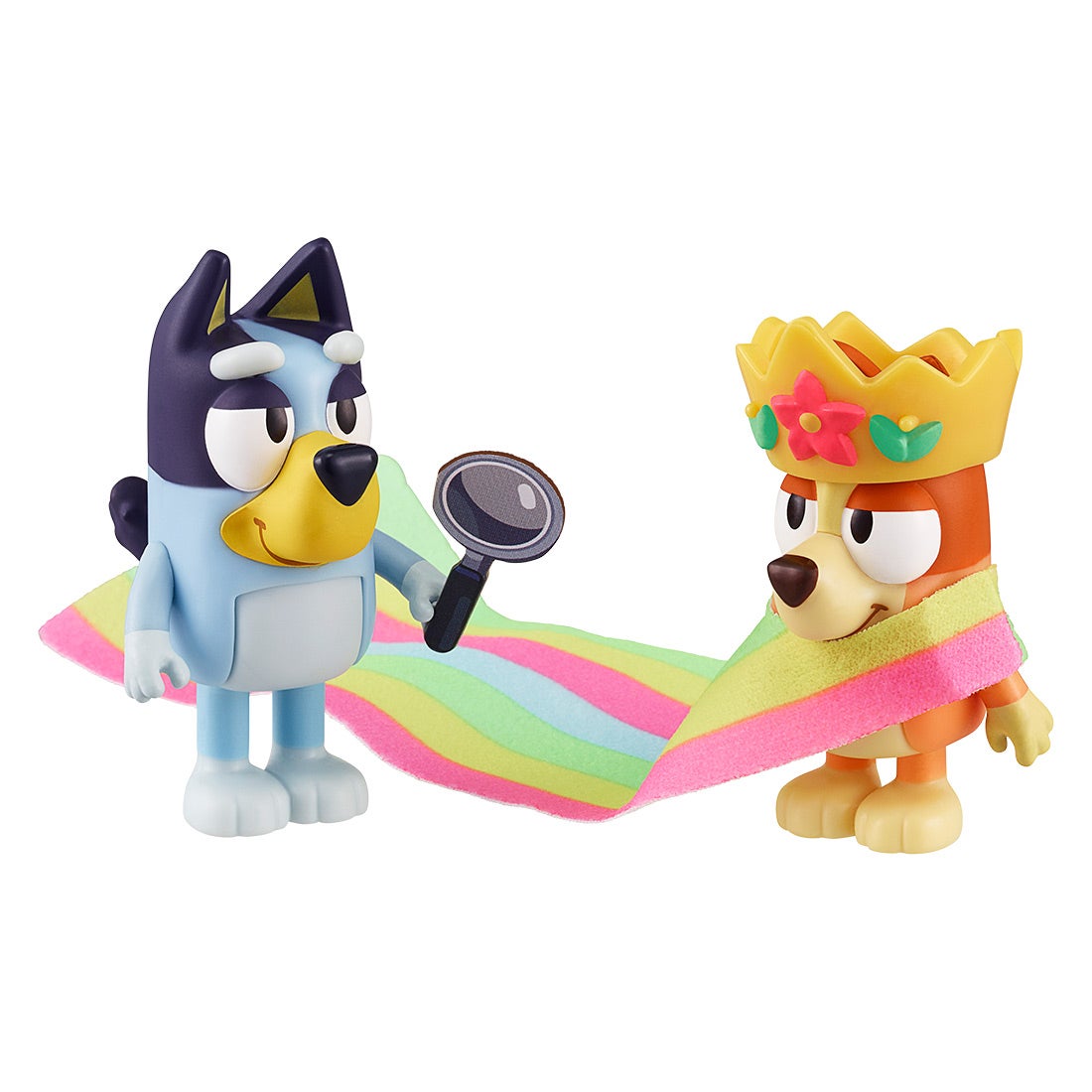 ブルーイとビンゴのフィギュアと小物パーツのセットです。ブルーイとビンゴのフィギュア、王かんとマントの小物パーツがついています。