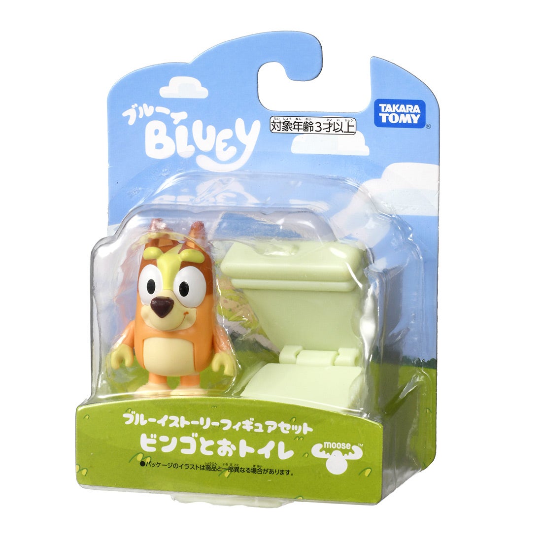 ブルーイとビンゴのフィギュアと小物パーツのセットです。ブルーイとビンゴのフィギュア、カメラとボブ・ビルビーの小物パーツがついています。