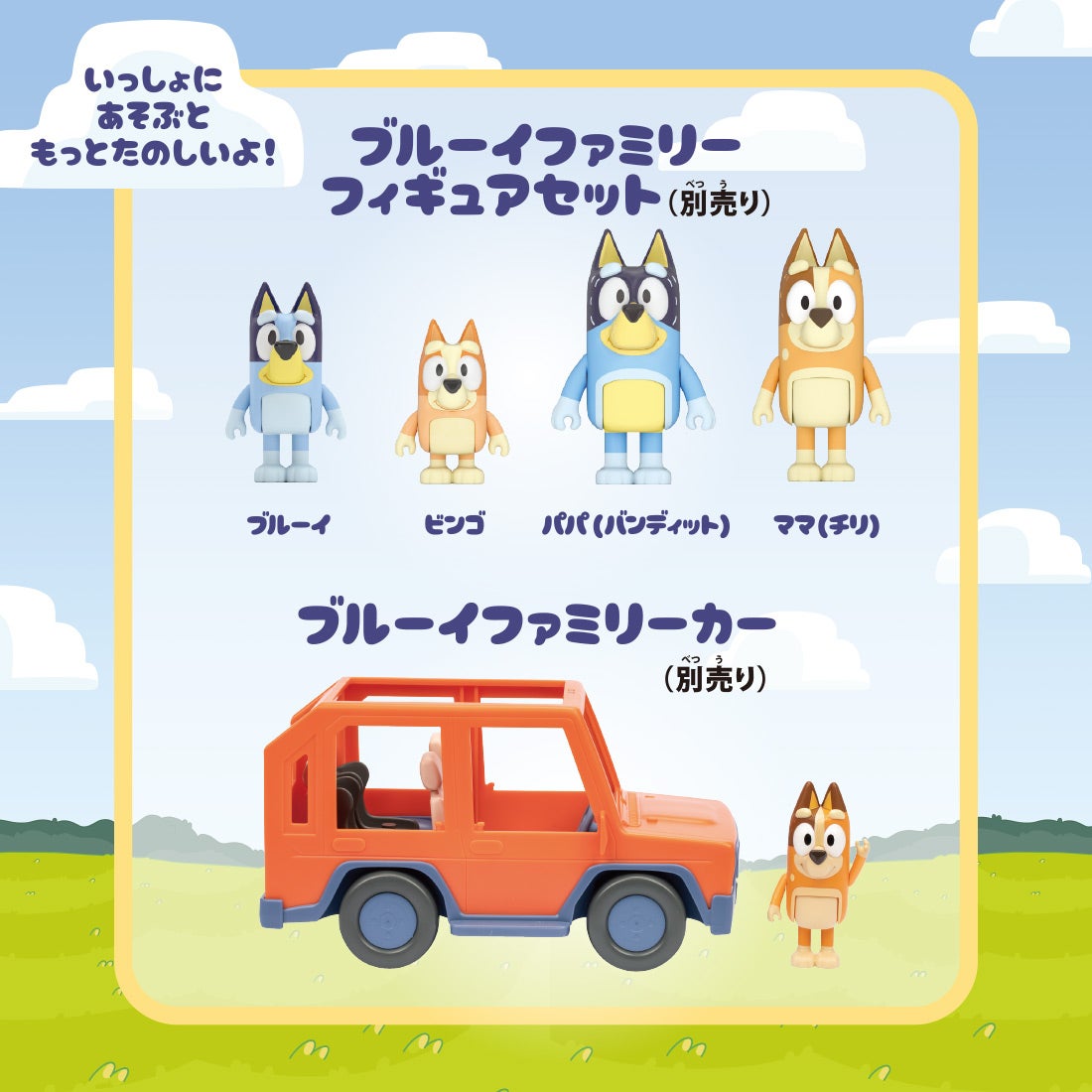別売りの「ブルーイファミリーフィギュアセット」や「ブルーイファミリーカー」と一緒に遊べます。