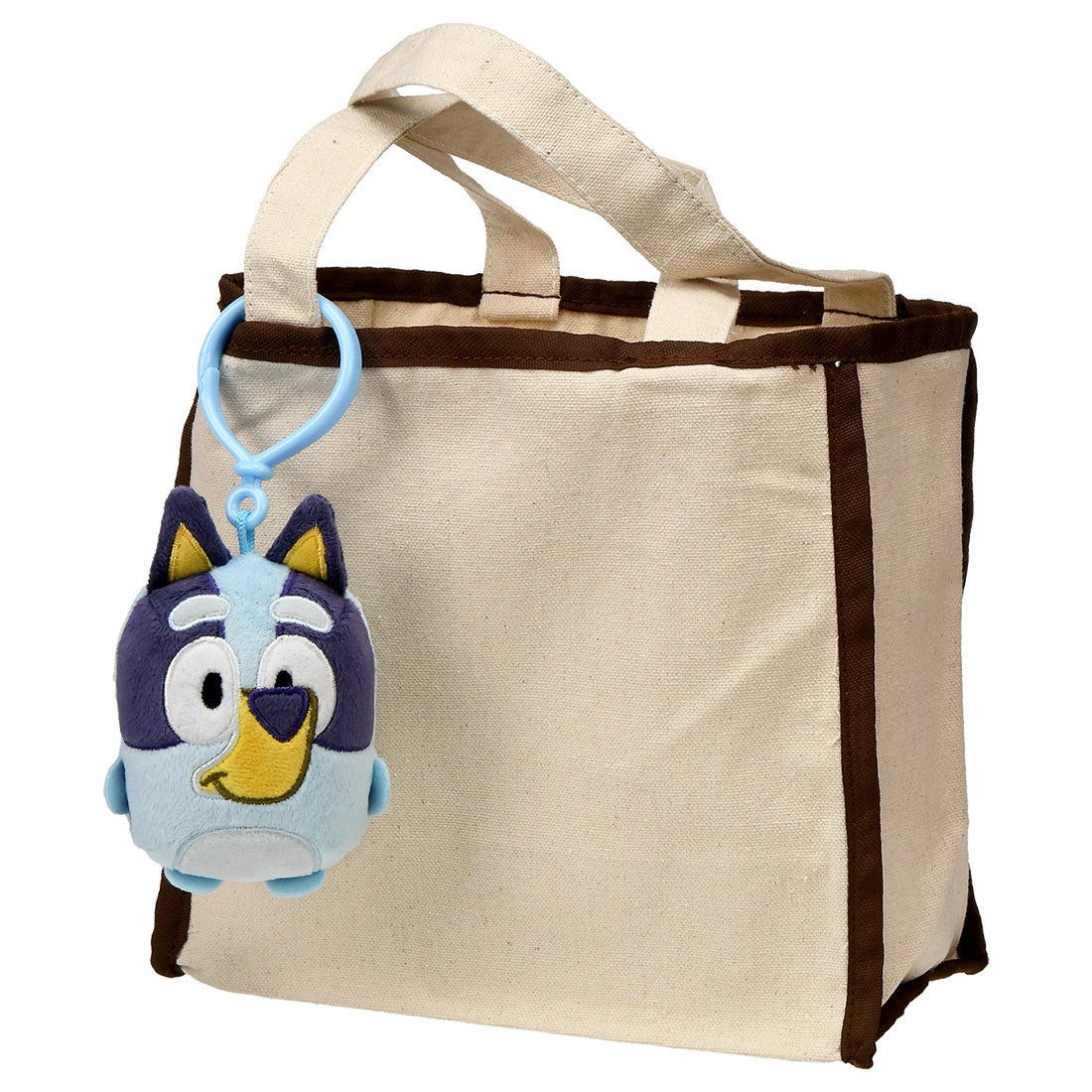 バッグなどにつけられる、フックが付いたキャラクターマスコットです。いつもブルーイといっしょ!