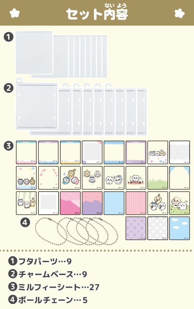 ミルフィーシート27枚入りで9個のミルフィーチャームが作れるよ!
