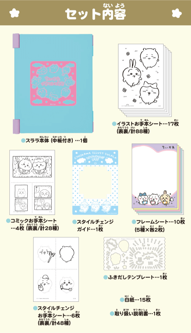 たっぷり24種類以上のちいかわ登場キャラクターたちが描けるよ。