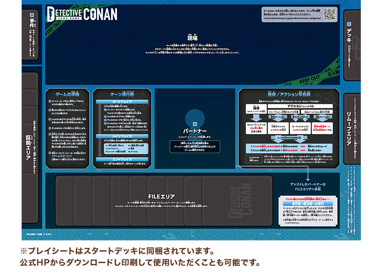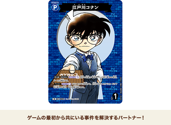 コナンTCGでは、キャラカードとイベントカードで作った40枚のデッキに加えてパートナーカード1枚、事件カード1枚の合計42枚を使って遊びます。 -