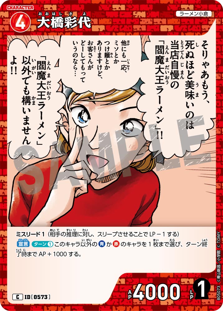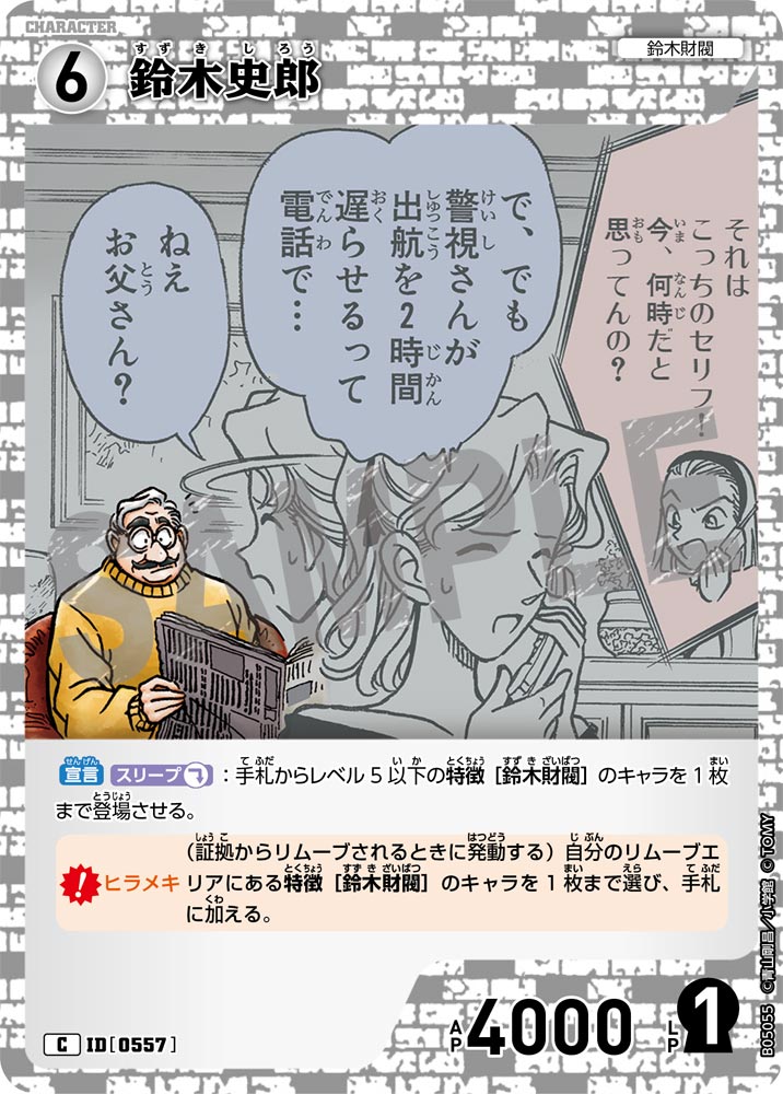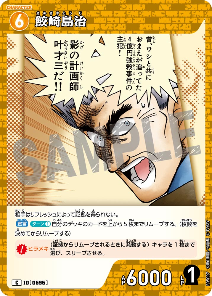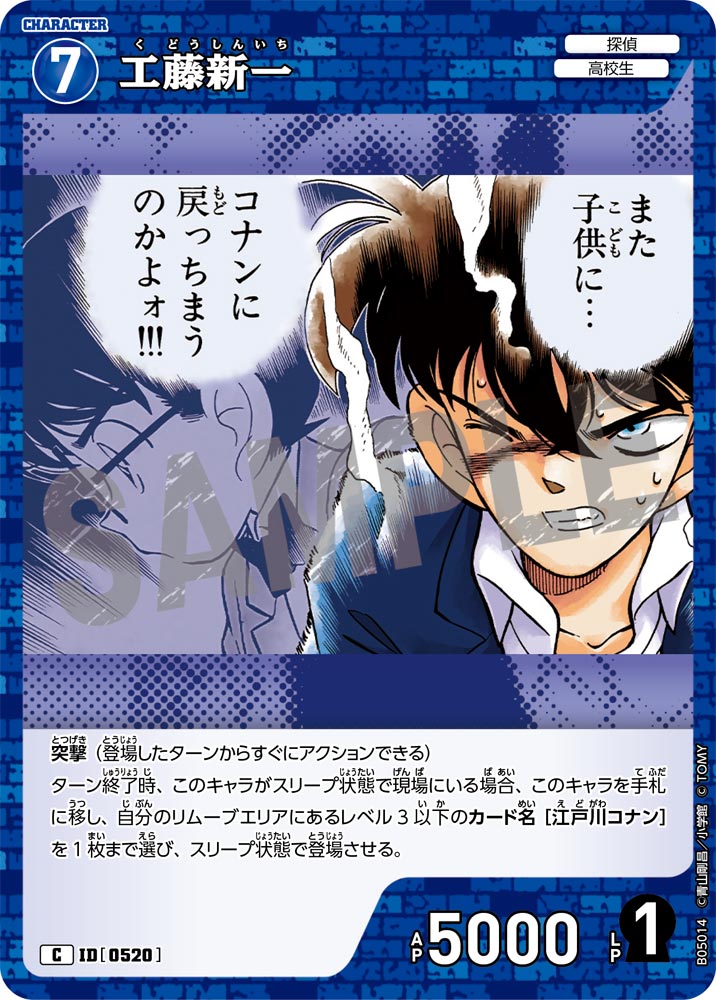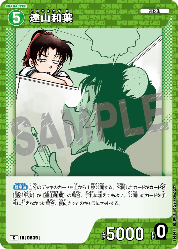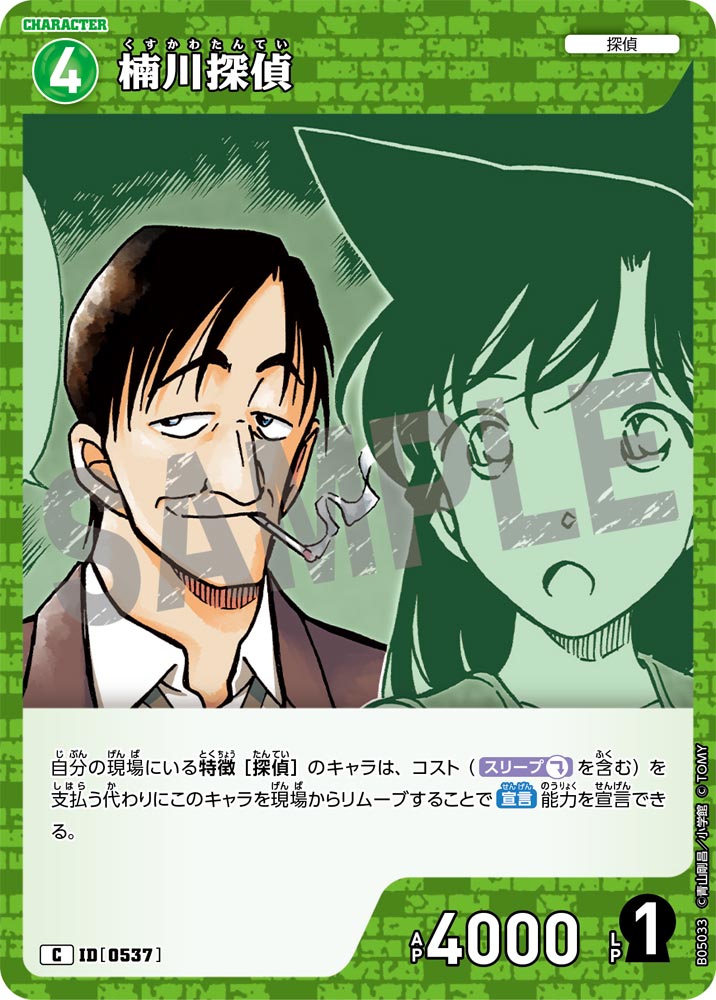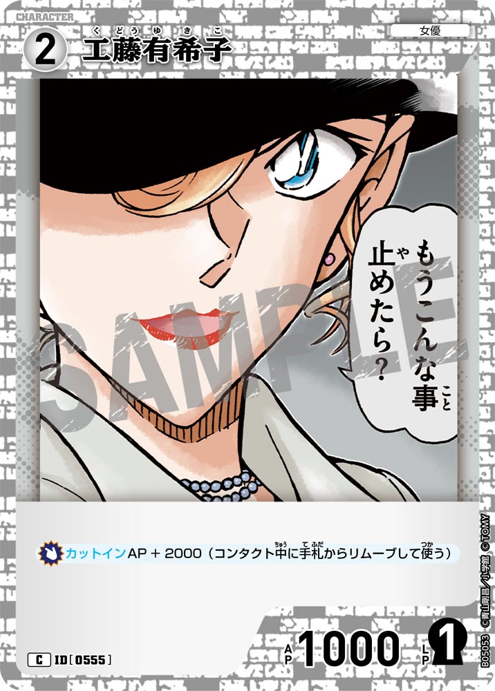 フリーワード 収録先 収録先を選択 ALL CT-P01 Case-Booster 01 探偵たちの切札(ジョーカー) CT-P02 Case-Booster 02 西と東の大決戦(コンタクト) CT-P03 Case-Booster 03 黒影の襲来(カットイン) CT-P04 Case-Booster 04 信義の絆(パートナー) CT-P05 Case-Booster 05 新たなる謎 CT-P06 Case-Booster 06 交錯する刃 CT-P07 Case-Booster 07 魅惑のマジック CT-D01 Case-StartDeck 01 江戸川コナン CT-D02 Case-StartDeck 02 服部平次 CT-D03 Case-StartDeck 03 怪盗キッド CT-D04 Case-StartDeck 04 赤井秀一 CT-D05 Case-StartDeck 05 安室透 CT-D06 Case-ThemeDeck 01 服部平次VS怪盗キッド CT-D07 Case-ThemeDeck 02 黒ずくめの組織 CT-D08 Case-ThemeDeck 03 青の古城探索事件 CT-D09 Case-ThemeDeck 04 死亡の館、赤い壁 CT-D10 Case-ThemeDeck 05 シャッフルロマンス PRカード 条件を追加+ 色 青 緑 白 赤 黄 黒 種類 パートナー キャラ イベント 事件 レアリティ C CP R RP SR SRP SEC D PR SRCP MR MRP MRCP レベル 1 2 3 4 5 6 7 8 9 〜 1 2 3 4 5 6 7 8 9 AP 0 1000 2000 3000 4000 5000 6000 7000 8000 LP 0 1 2 〜 0 1 2 この条件で検索する ×検索条件を解除 1625件 | 江戸川コナン ID カードの種類 レアリティ 色 特徴 レベル AP LP 収録先 事件レベル 先攻 後攻 イラストレーター カードの能力 変装 カットイン ヒラメキ FAQ Q&Aコミュニティで個別質問 NO.