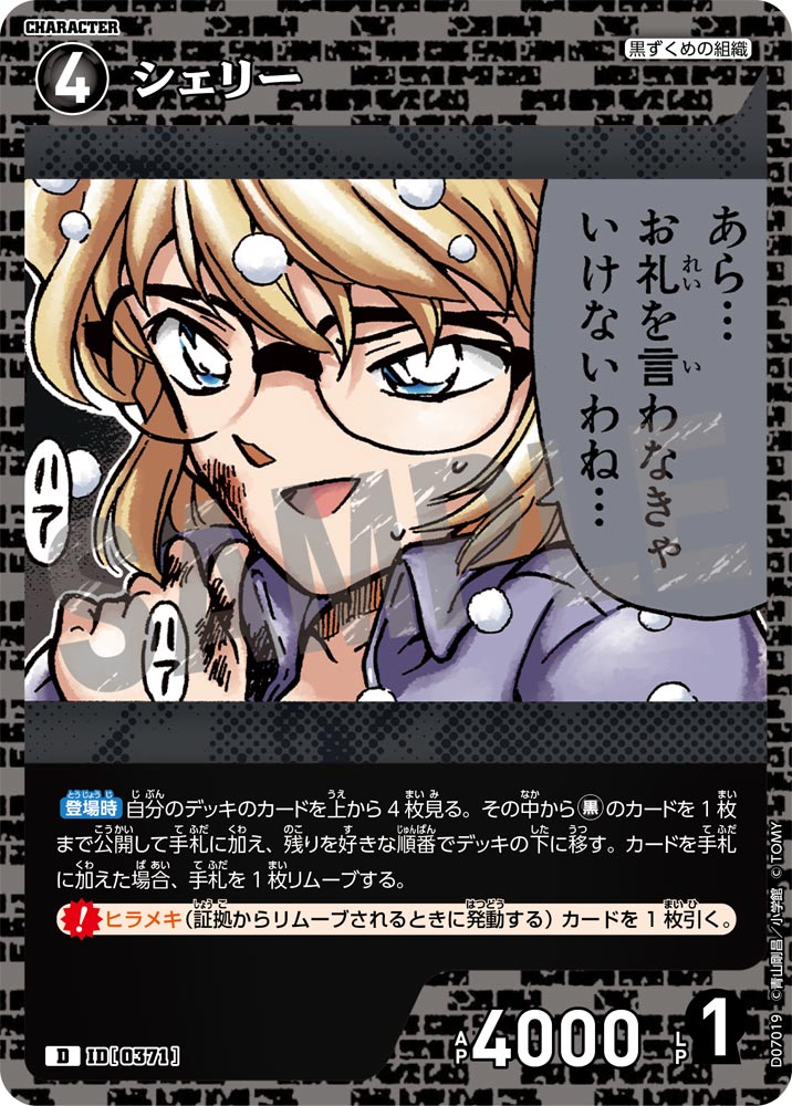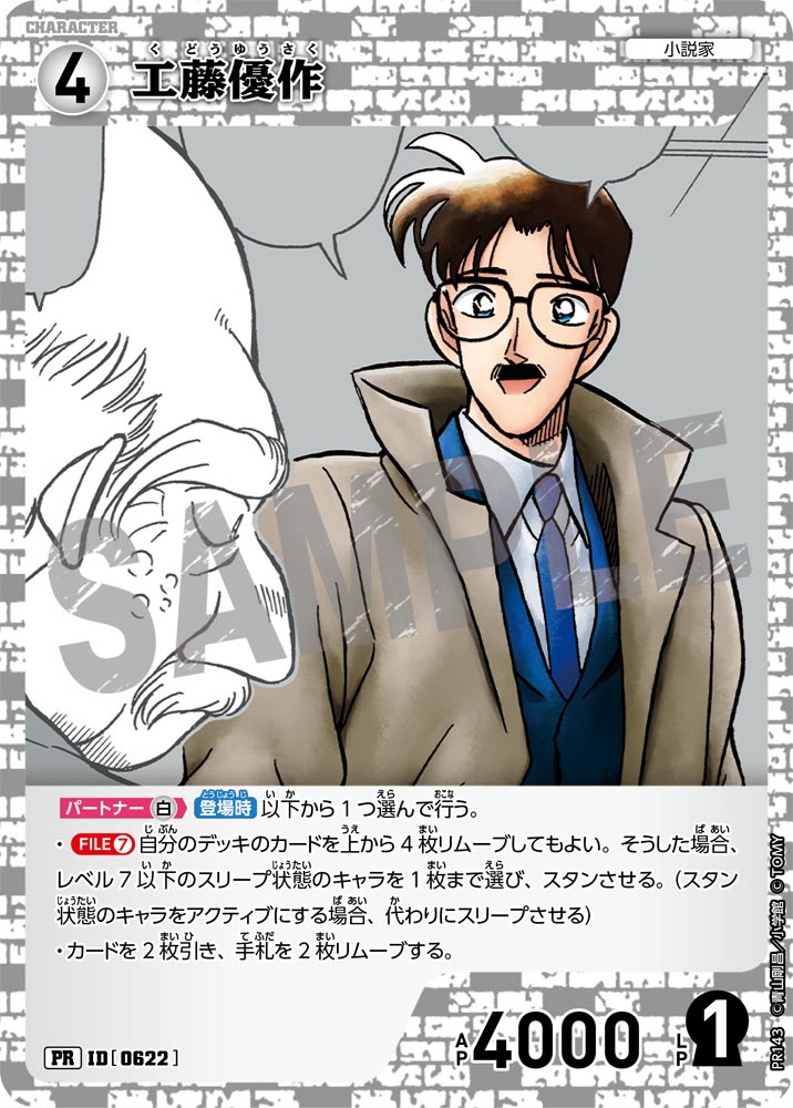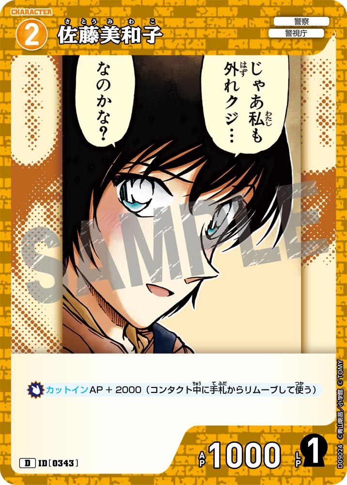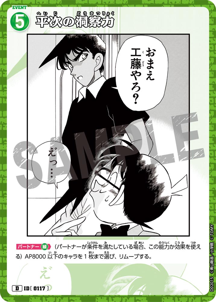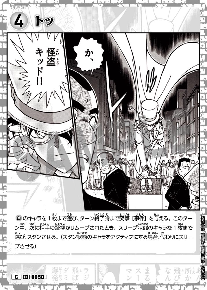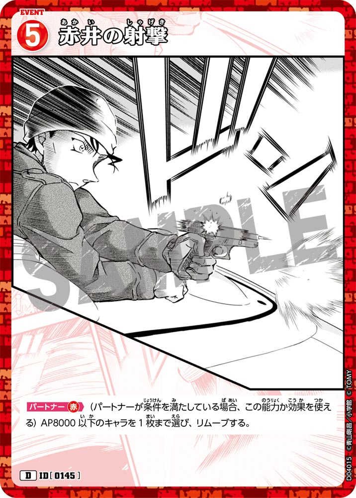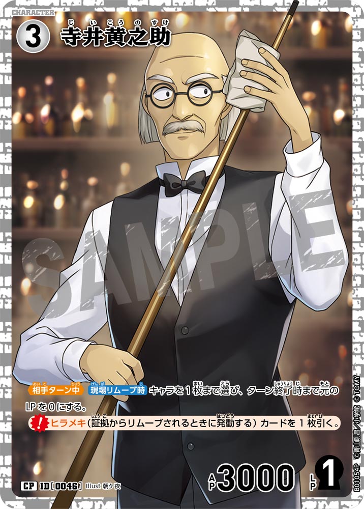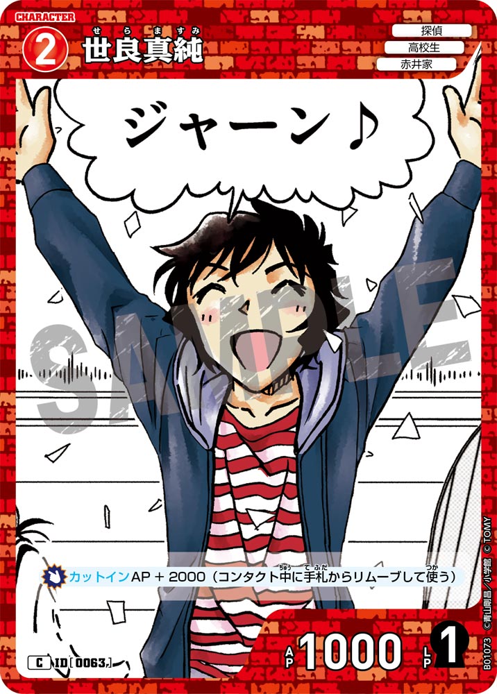 フリーワード 収録先 収録先を選択 ALL CT-P01 Case-Booster 01 探偵たちの切札(ジョーカー) CT-P02 Case-Booster 02 西と東の大決戦(コンタクト) CT-P03 Case-Booster 03 黒影の襲来(カットイン) CT-P04 Case-Booster 04 信義の絆(パートナー) CT-P05 Case-Booster 05 新たなる謎 CT-P06 Case-Booster 06 交錯する刃 CT-P07 Case-Booster 07 魅惑のマジック CT-D01 Case-StartDeck 01 江戸川コナン CT-D02 Case-StartDeck 02 服部平次 CT-D03 Case-StartDeck 03 怪盗キッド CT-D04 Case-StartDeck 04 赤井秀一 CT-D05 Case-StartDeck 05 安室透 CT-D06 Case-ThemeDeck 01 服部平次VS怪盗キッド CT-D07 Case-ThemeDeck 02 黒ずくめの組織 CT-D08 Case-ThemeDeck 03 青の古城探索事件 CT-D09 Case-ThemeDeck 04 死亡の館、赤い壁 CT-D10 Case-ThemeDeck 05 シャッフルロマンス PRカード 条件を追加+ 色 青 緑 白 赤 黄 黒 種類 パートナー キャラ イベント 事件 レアリティ C CP R RP SR SRP SEC D PR SRCP MR MRP MRCP レベル 1 2 3 4 5 6 7 8 9 〜 1 2 3 4 5 6 7 8 9 AP 0 1000 2000 3000 4000 5000 6000 7000 8000 LP 0 1 2 〜 0 1 2 この条件で検索する ×検索条件を解除 1625件 | 江戸川コナン ID カードの種類 レアリティ 色 特徴 レベル AP LP 収録先 事件レベル 先攻 後攻 イラストレーター カードの能力 変装 カットイン ヒラメキ FAQ Q&Aコミュニティで個別質問 NO.