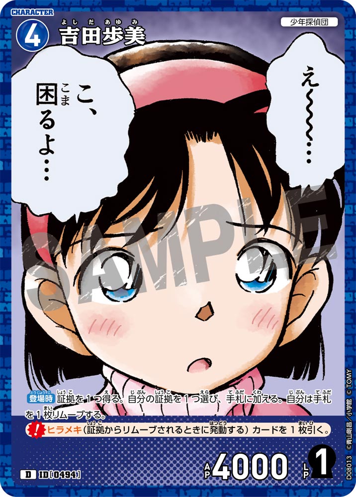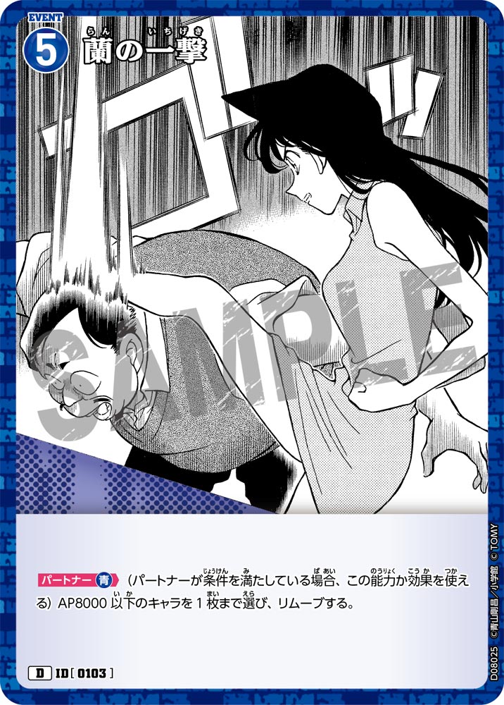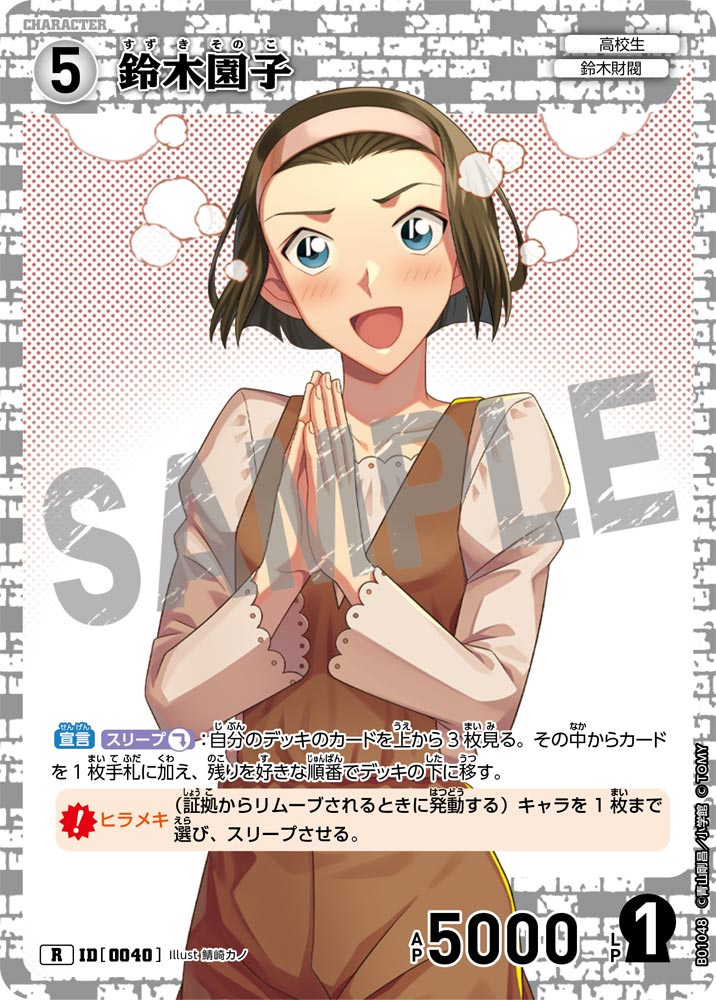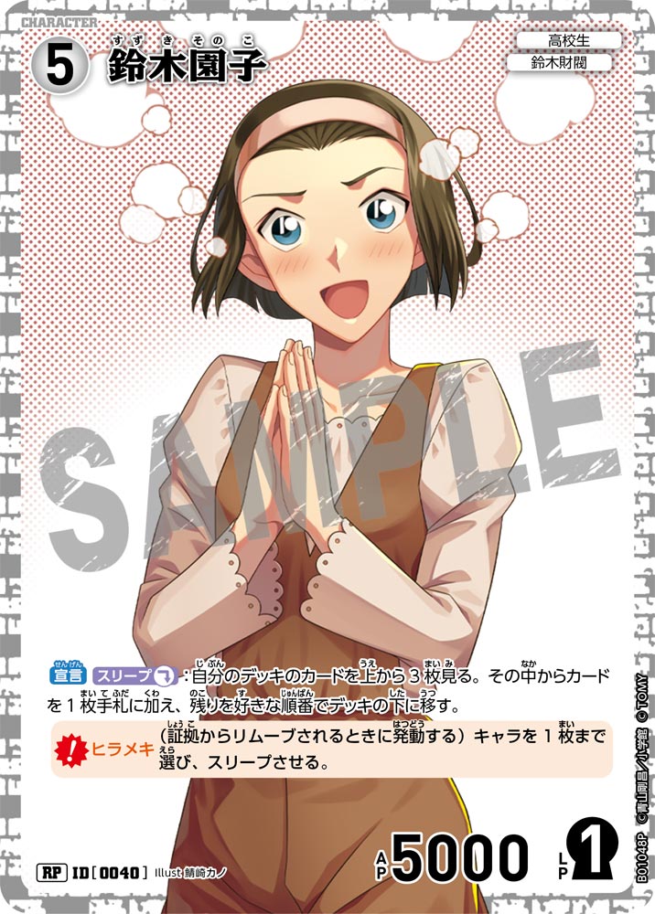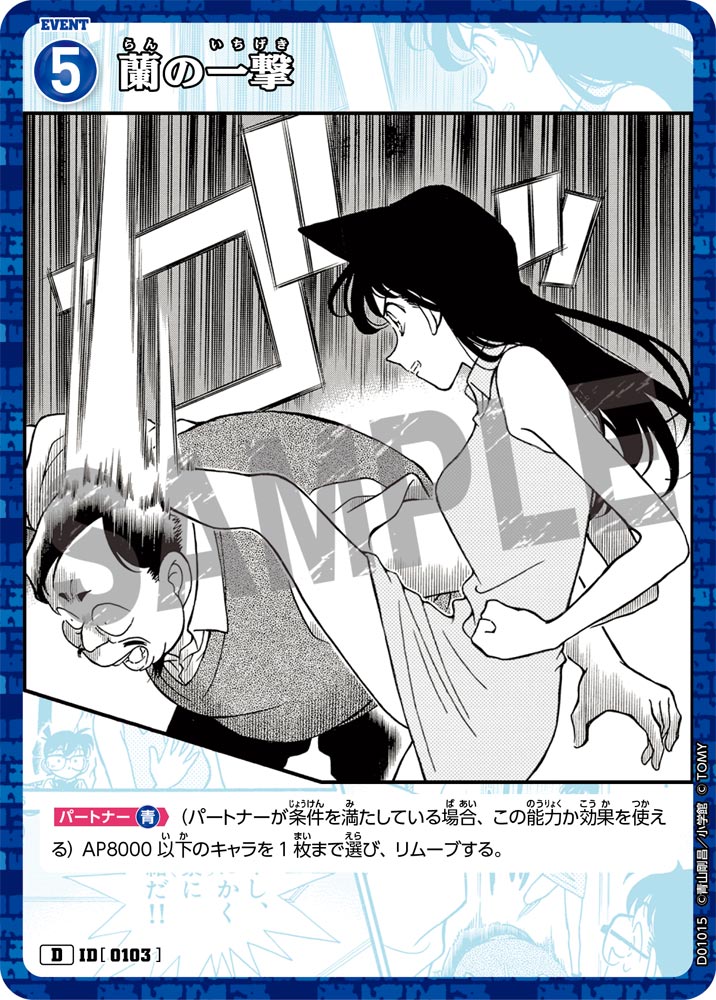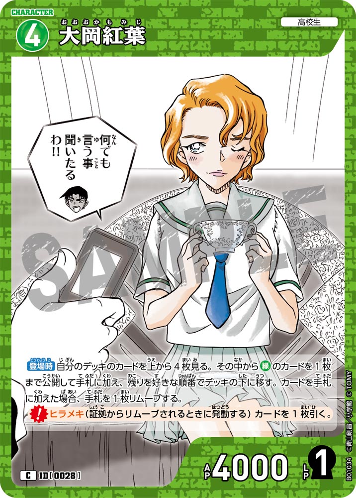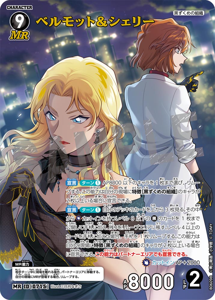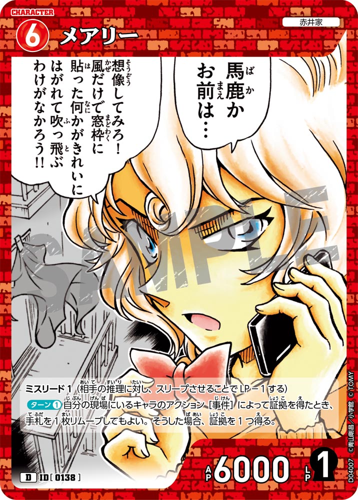 フリーワード 収録先 収録先を選択 ALL CT-P01 Case-Booster 01 探偵たちの切札(ジョーカー) CT-P02 Case-Booster 02 西と東の大決戦(コンタクト) CT-P03 Case-Booster 03 黒影の襲来(カットイン) CT-P04 Case-Booster 04 信義の絆(パートナー) CT-P05 Case-Booster 05 新たなる謎 CT-P06 Case-Booster 06 交錯する刃 CT-P07 Case-Booster 07 魅惑のマジック CT-D01 Case-StartDeck 01 江戸川コナン CT-D02 Case-StartDeck 02 服部平次 CT-D03 Case-StartDeck 03 怪盗キッド CT-D04 Case-StartDeck 04 赤井秀一 CT-D05 Case-StartDeck 05 安室透 CT-D06 Case-ThemeDeck 01 服部平次VS怪盗キッド CT-D07 Case-ThemeDeck 02 黒ずくめの組織 CT-D08 Case-ThemeDeck 03 青の古城探索事件 CT-D09 Case-ThemeDeck 04 死亡の館、赤い壁 CT-D10 Case-ThemeDeck 05 シャッフルロマンス PRカード 条件を追加+ 色 青 緑 白 赤 黄 黒 種類 パートナー キャラ イベント 事件 レアリティ C CP R RP SR SRP SEC D PR SRCP MR MRP MRCP レベル 1 2 3 4 5 6 7 8 9 〜 1 2 3 4 5 6 7 8 9 AP 0 1000 2000 3000 4000 5000 6000 7000 8000 LP 0 1 2 〜 0 1 2 この条件で検索する ×検索条件を解除 1625件 | 江戸川コナン ID カードの種類 レアリティ 色 特徴 レベル AP LP 収録先 事件レベル 先攻 後攻 イラストレーター カードの能力 変装 カットイン ヒラメキ FAQ Q&Aコミュニティで個別質問 NO.