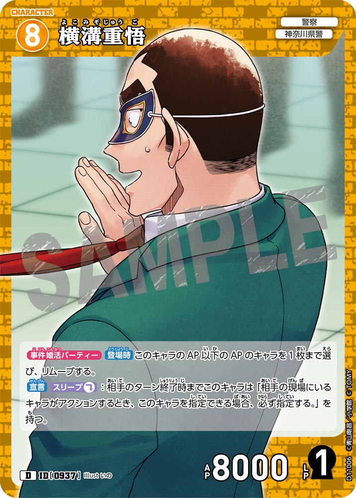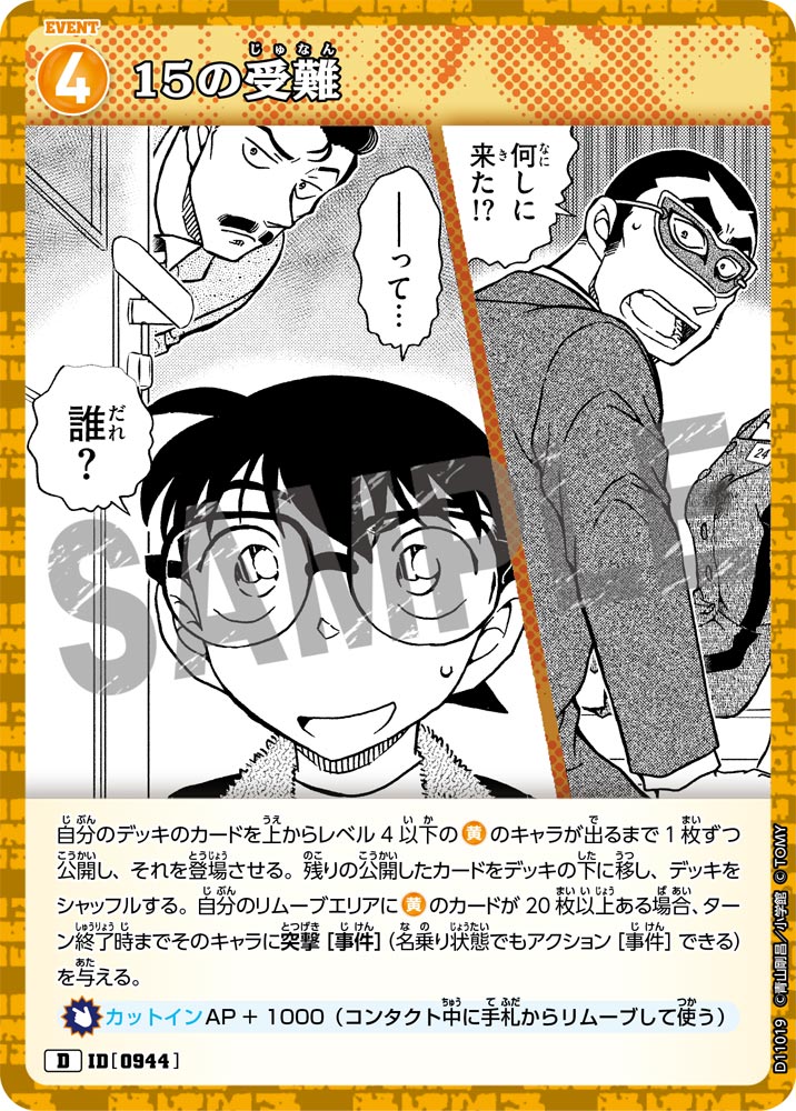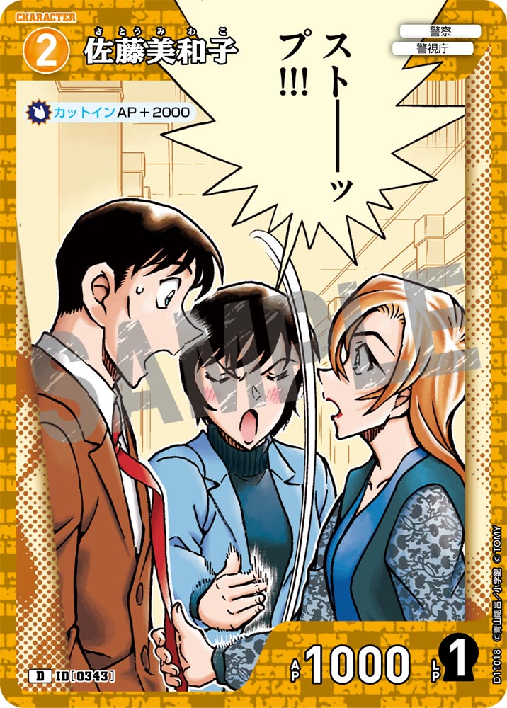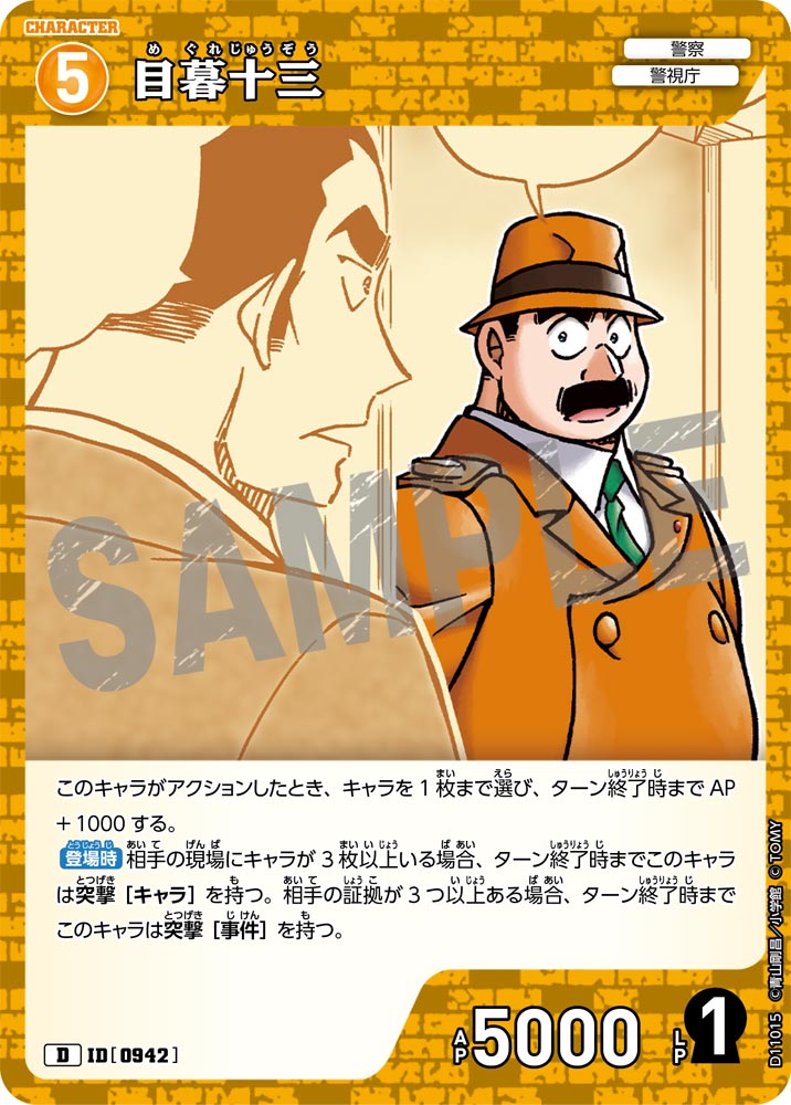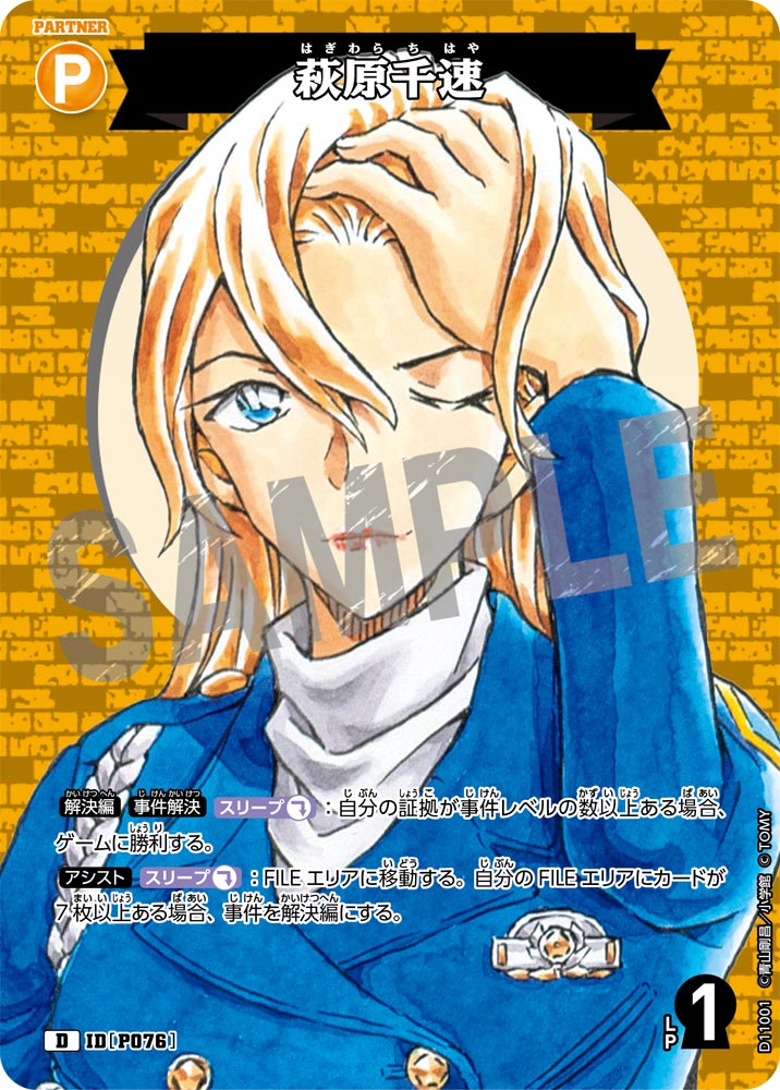 ALL CT-P01 Case-Booster 01 探偵たちの切札(ジョーカー) CT-P02 Case-Booster 02 西と東の大決戦(コンタクト) CT-P03 Case-Booster 03 黒影の襲来(カットイン) CT-P04 Case-Booster 04 信義の絆(パートナー) CT-P05 Case-Booster 05 新たなる謎 CT-P06 Case-Booster 06 交錯する刃 CT-P07 Case-Booster 07 魅惑のマジック CT-P08 Case-Booster 08 哀色の宿命 CT-P09 Case-Booster 09 疾風の煌めき CT-D01 Case-StartDeck 01 江戸川コナン CT-D02 Case-StartDeck 02 服部平次 CT-D03 Case-StartDeck 03 怪盗キッド CT-D04 Case-StartDeck 04 赤井秀一 CT-D05 Case-StartDeck 05 安室透 CT-D06 Case-ThemeDeck 01 服部平次VS怪盗キッド CT-D07 Case-ThemeDeck 02 黒ずくめの組織 CT-D08 Case-ThemeDeck 03 青の古城探索事件 CT-D09 Case-ThemeDeck 04 死亡の館、赤い壁 CT-D10 Case-ThemeDeck 05 シャッフルロマンス CT-D11 Case-ThemeDeck 06 千速と重悟の婚活パーティー PRカード 条件を追加+ 色 全選択 青 緑 白 赤 黄 黒 種類 全選択 パートナー キャラ イベント 事件 レアリティ 全選択 C CP CP2 R RP SR SRP SEC D PR SRCP MR MRP MRCP レベル 全選択 1 2 3 4 5 6 7 8 9 AP 全選択 0 1000 2000 3000 4000 5000 6000 7000 8000 9000 LP 全選択 0 1 2 3 特徴 探偵 毛利探偵事務所 少年探偵団 高校生 発明家 弁護士 科学者 執事 警察 怪盗 小説家 FBI 大学院生 赤井家 棋士 喫茶ポアロ 黒ずくめの組織 鈴木財閥 CIA アイドル ヒーロー 教師 ガジェット マジシャン 女優 犯人 サッカー選手 秘書 猫 図書館館長 寿司職人 犬 医師 アナウンサー ボディガード デザイナー シマリス 鷹 家政婦 大学生 メイド カメラマン ラーメン小倉 酒屋 絵描き YAIBA お手伝い 空手家 ビッグジュエル シャッフルロマンス バーテンダー 王女 邪神 ロボット 赤魔術 まじっく快斗 証券会社社員 CGクリエイター 女王 王子 食品会社社員 大学教授 政治家 怪人 泥参会 婚活パーティー 大阪府警 公安 警視庁 京都府警 長野県警 群馬県警 医療関係者 医大生 北海道警 神奈川県警 静岡県警 千葉県警 怪物 花見客 魔女 システムエンジニア この条件で検索する ×検索条件を解除 21件 | 江戸川コナン ID カードの種類 レアリティ 色 特徴 レベル AP LP 収録先 事件レベル 先攻 後攻 イラストレーター カードの能力 変装 カットイン ヒラメキ FAQ Q&Aコミュニティで個別質問 NO.