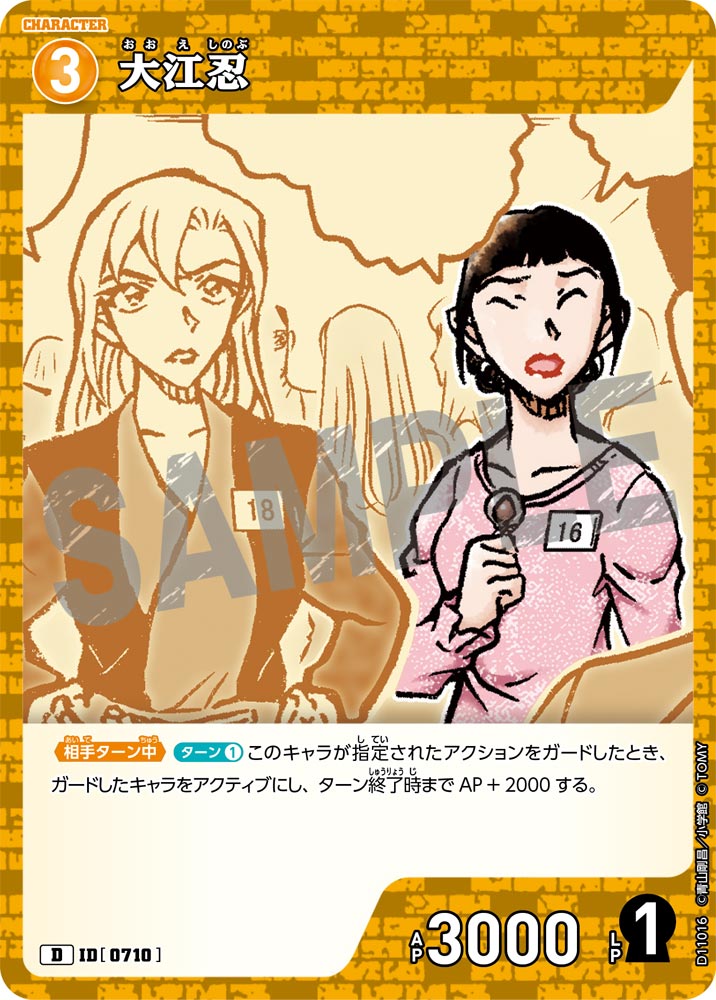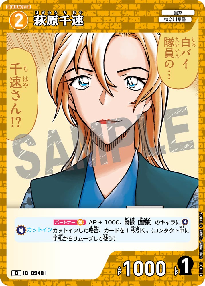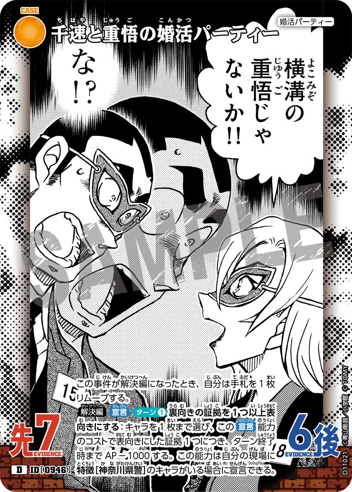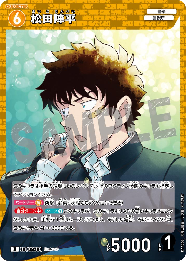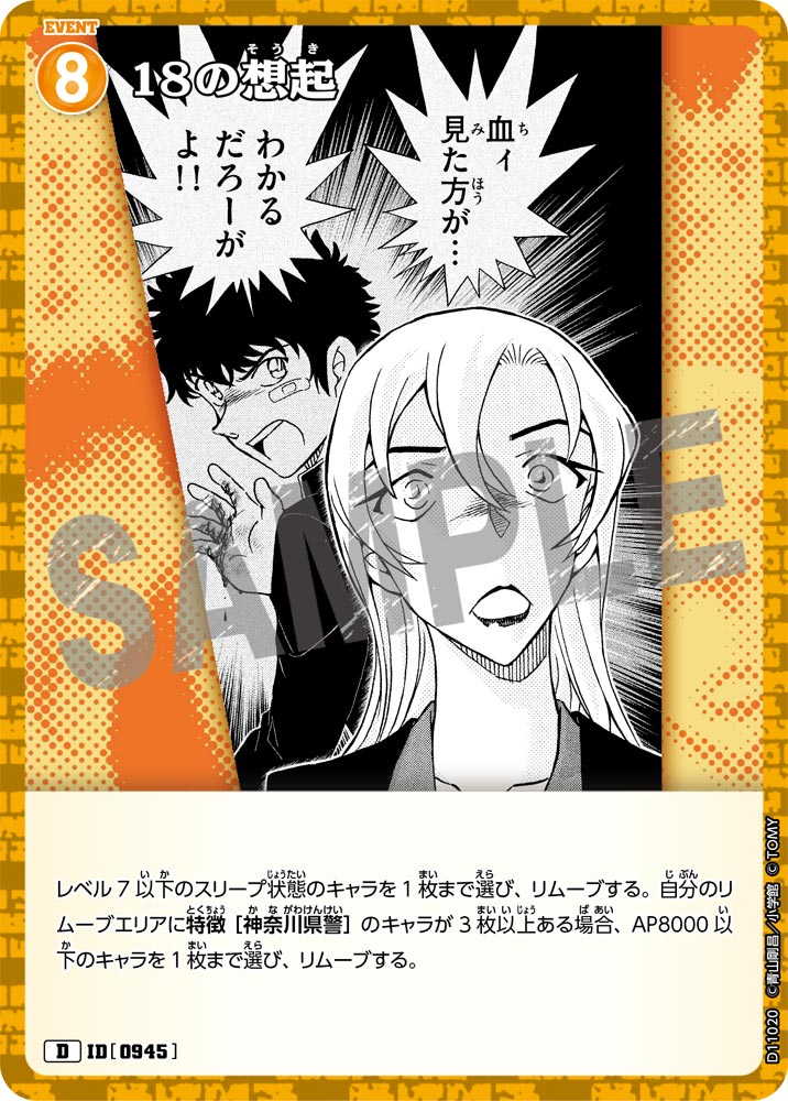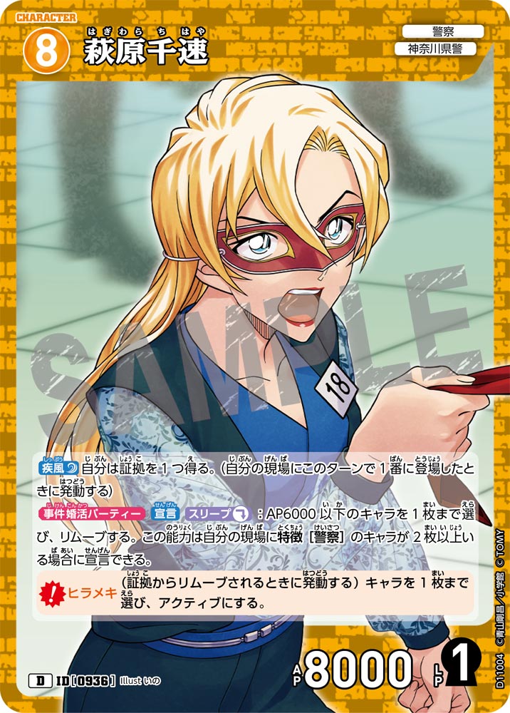 ALL CT-P01 Case-Booster 01 探偵たちの切札(ジョーカー) CT-P02 Case-Booster 02 西と東の大決戦(コンタクト) CT-P03 Case-Booster 03 黒影の襲来(カットイン) CT-P04 Case-Booster 04 信義の絆(パートナー) CT-P05 Case-Booster 05 新たなる謎 CT-P06 Case-Booster 06 交錯する刃 CT-P07 Case-Booster 07 魅惑のマジック CT-P08 Case-Booster 08 哀色の宿命 CT-P09 Case-Booster 09 疾風の煌めき CT-D01 Case-StartDeck 01 江戸川コナン CT-D02 Case-StartDeck 02 服部平次 CT-D03 Case-StartDeck 03 怪盗キッド CT-D04 Case-StartDeck 04 赤井秀一 CT-D05 Case-StartDeck 05 安室透 CT-D06 Case-ThemeDeck 01 服部平次VS怪盗キッド CT-D07 Case-ThemeDeck 02 黒ずくめの組織 CT-D08 Case-ThemeDeck 03 青の古城探索事件 CT-D09 Case-ThemeDeck 04 死亡の館、赤い壁 CT-D10 Case-ThemeDeck 05 シャッフルロマンス CT-D11 Case-ThemeDeck 06 千速と重悟の婚活パーティー PRカード 条件を追加+ 色 全選択 青 緑 白 赤 黄 黒 種類 全選択 パートナー キャラ イベント 事件 レアリティ 全選択 C CP CP2 R RP SR SRP SEC D PR SRCP MR MRP MRCP レベル 全選択 1 2 3 4 5 6 7 8 9 AP 全選択 0 1000 2000 3000 4000 5000 6000 7000 8000 9000 LP 全選択 0 1 2 3 特徴 探偵 毛利探偵事務所 少年探偵団 高校生 発明家 弁護士 科学者 執事 警察 怪盗 小説家 FBI 大学院生 赤井家 棋士 喫茶ポアロ 黒ずくめの組織 鈴木財閥 CIA アイドル ヒーロー 教師 ガジェット マジシャン 女優 犯人 サッカー選手 秘書 猫 図書館館長 寿司職人 犬 医師 アナウンサー ボディガード デザイナー シマリス 鷹 家政婦 大学生 メイド カメラマン ラーメン小倉 酒屋 絵描き YAIBA お手伝い 空手家 ビッグジュエル シャッフルロマンス バーテンダー 王女 邪神 ロボット 赤魔術 まじっく快斗 証券会社社員 CGクリエイター 女王 王子 食品会社社員 大学教授 政治家 怪人 泥参会 婚活パーティー 大阪府警 公安 警視庁 京都府警 長野県警 群馬県警 医療関係者 医大生 北海道警 神奈川県警 静岡県警 千葉県警 怪物 花見客 魔女 システムエンジニア この条件で検索する ×検索条件を解除 21件 | 江戸川コナン ID カードの種類 レアリティ 色 特徴 レベル AP LP 収録先 事件レベル 先攻 後攻 イラストレーター カードの能力 変装 カットイン ヒラメキ FAQ Q&Aコミュニティで個別質問 NO.
