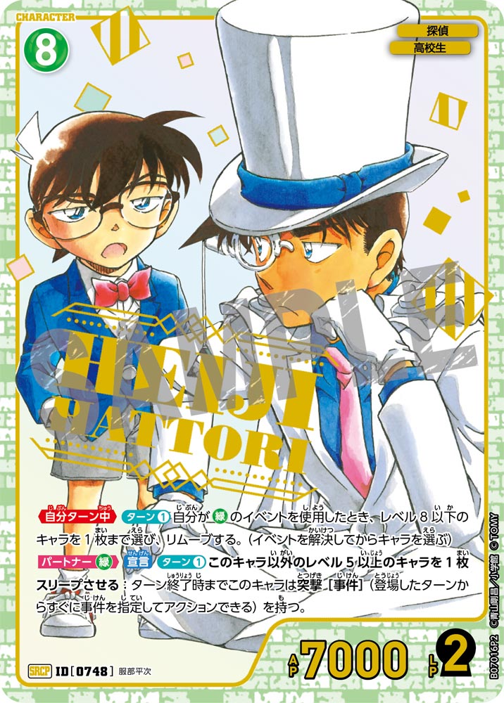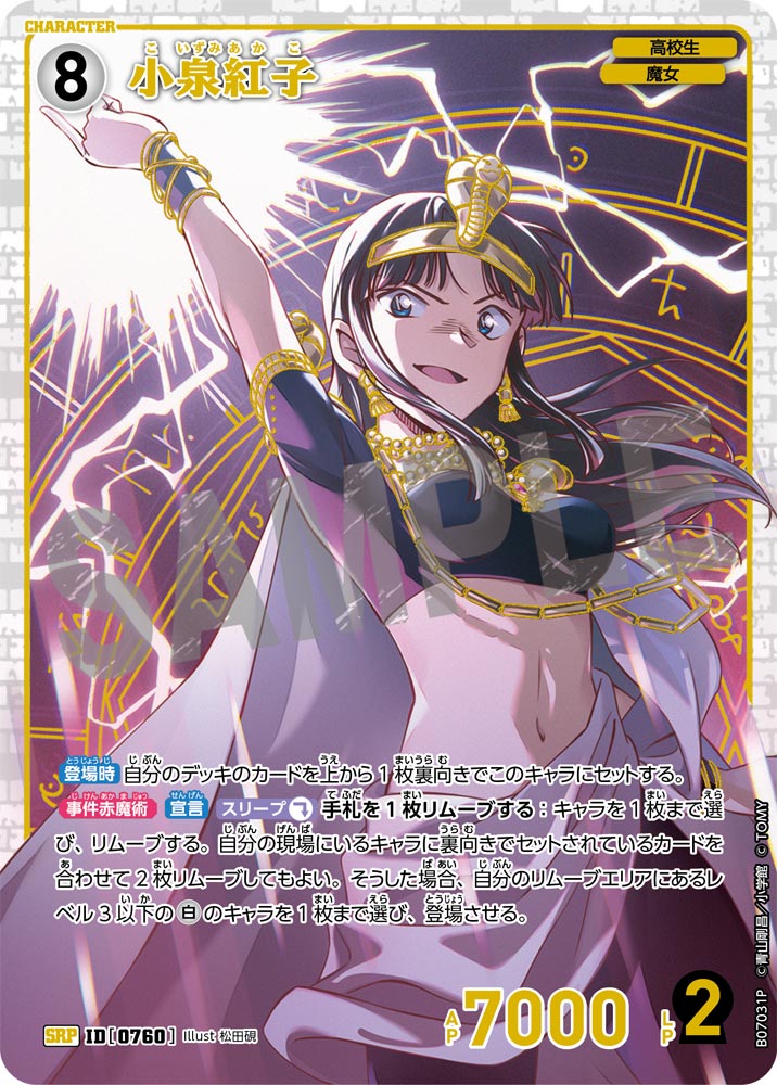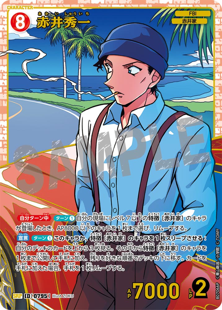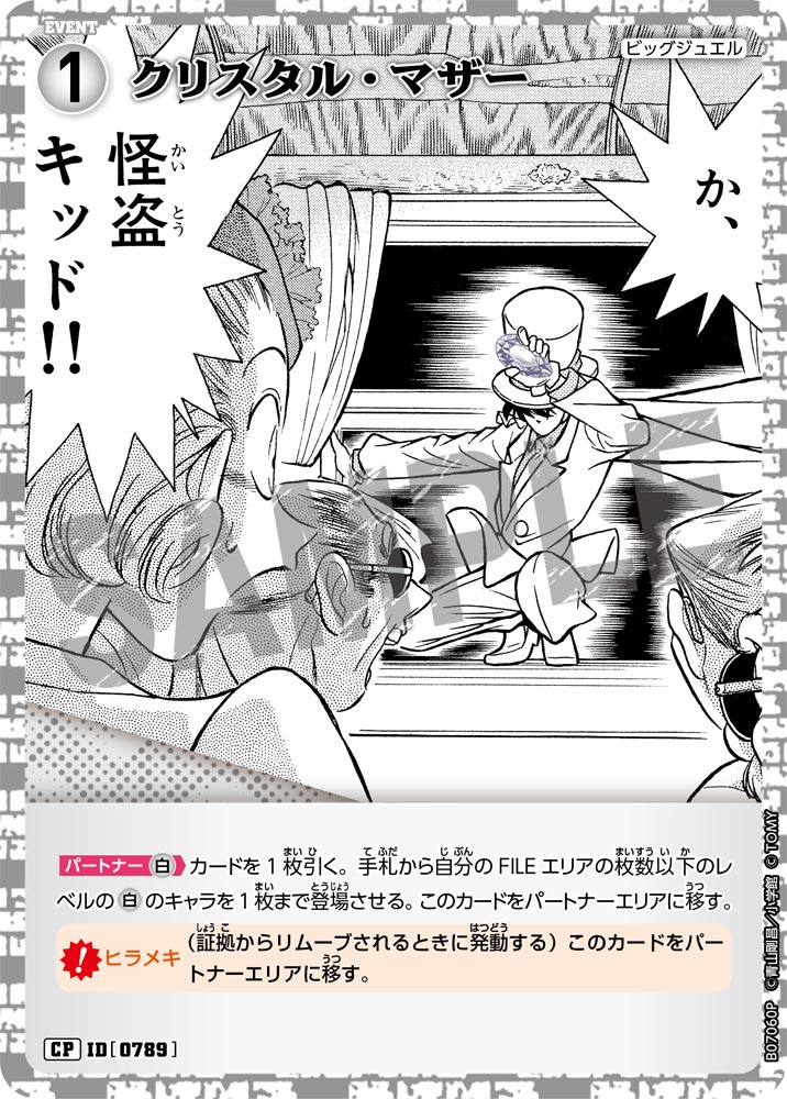 フリーワード 収録先 収録先を選択 ALL CT-P01 Case-Booster 01 探偵たちの切札(ジョーカー) CT-P02 Case-Booster 02 西と東の大決戦(コンタクト) CT-P03 Case-Booster 03 黒影の襲来(カットイン) CT-P04 Case-Booster 04 信義の絆(パートナー) CT-P05 Case-Booster 05 新たなる謎 CT-P06 Case-Booster 06 交錯する刃 CT-P07 Case-Booster 07 魅惑のマジック CT-D01 Case-StartDeck 01 江戸川コナン CT-D02 Case-StartDeck 02 服部平次 CT-D03 Case-StartDeck 03 怪盗キッド CT-D04 Case-StartDeck 04 赤井秀一 CT-D05 Case-StartDeck 05 安室透 CT-D06 Case-ThemeDeck 01 服部平次VS怪盗キッド CT-D07 Case-ThemeDeck 02 黒ずくめの組織 CT-D08 Case-ThemeDeck 03 青の古城探索事件 CT-D09 Case-ThemeDeck 04 死亡の館、赤い壁 CT-D10 Case-ThemeDeck 05 シャッフルロマンス PRカード 条件を追加+ 色 青 緑 白 赤 黄 黒 種類 パートナー キャラ イベント 事件 レアリティ C CP R RP SR SRP SEC D PR SRCP MR MRP MRCP レベル 1 2 3 4 5 6 7 8 9 〜 1 2 3 4 5 6 7 8 9 AP 0 1000 2000 3000 4000 5000 6000 7000 8000 LP 0 1 2 〜 0 1 2 この条件で検索する ×検索条件を解除 175件 | 江戸川コナン ID カードの種類 レアリティ 色 特徴 レベル AP LP 収録先 事件レベル 先攻 後攻 イラストレーター カードの能力 変装 カットイン ヒラメキ FAQ Q&Aコミュニティで個別質問 NO.