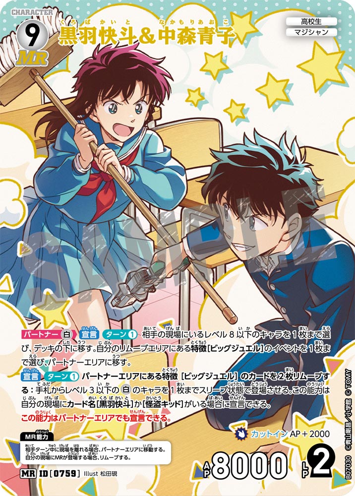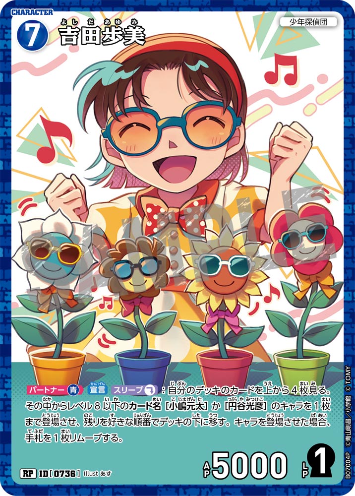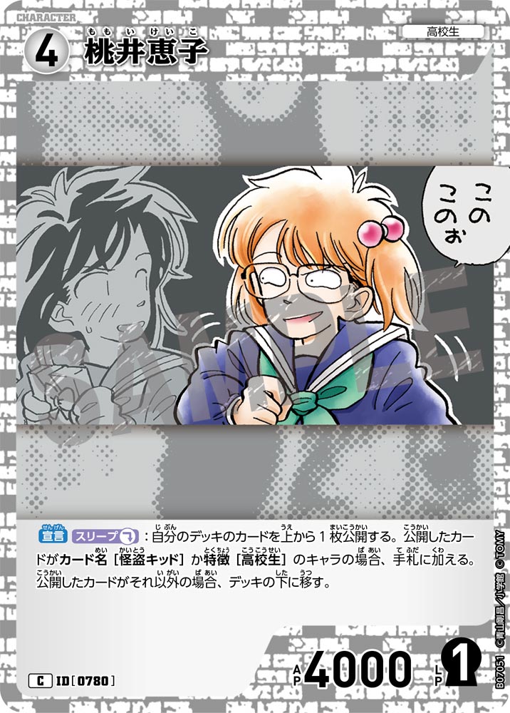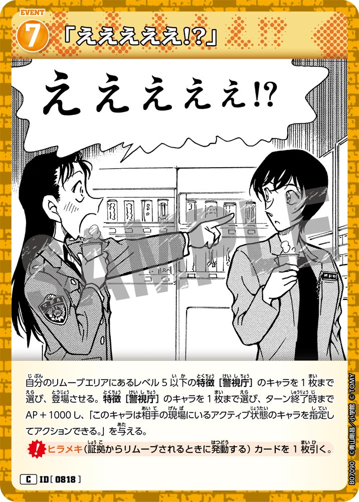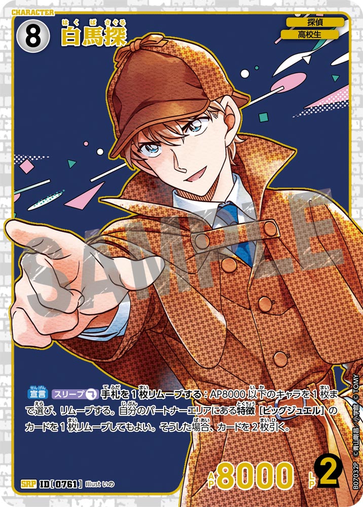 フリーワード 収録先 収録先を選択 ALL CT-P01 Case-Booster 01 探偵たちの切札(ジョーカー) CT-P02 Case-Booster 02 西と東の大決戦(コンタクト) CT-P03 Case-Booster 03 黒影の襲来(カットイン) CT-P04 Case-Booster 04 信義の絆(パートナー) CT-P05 Case-Booster 05 新たなる謎 CT-P06 Case-Booster 06 交錯する刃 CT-P07 Case-Booster 07 魅惑のマジック CT-D01 Case-StartDeck 01 江戸川コナン CT-D02 Case-StartDeck 02 服部平次 CT-D03 Case-StartDeck 03 怪盗キッド CT-D04 Case-StartDeck 04 赤井秀一 CT-D05 Case-StartDeck 05 安室透 CT-D06 Case-ThemeDeck 01 服部平次VS怪盗キッド CT-D07 Case-ThemeDeck 02 黒ずくめの組織 CT-D08 Case-ThemeDeck 03 青の古城探索事件 CT-D09 Case-ThemeDeck 04 死亡の館、赤い壁 CT-D10 Case-ThemeDeck 05 シャッフルロマンス PRカード 条件を追加+ 色 青 緑 白 赤 黄 黒 種類 パートナー キャラ イベント 事件 レアリティ C CP R RP SR SRP SEC D PR SRCP MR MRP MRCP レベル 1 2 3 4 5 6 7 8 9 〜 1 2 3 4 5 6 7 8 9 AP 0 1000 2000 3000 4000 5000 6000 7000 8000 LP 0 1 2 〜 0 1 2 この条件で検索する ×検索条件を解除 175件 | 江戸川コナン ID カードの種類 レアリティ 色 特徴 レベル AP LP 収録先 事件レベル 先攻 後攻 イラストレーター カードの能力 変装 カットイン ヒラメキ FAQ Q&Aコミュニティで個別質問 NO.