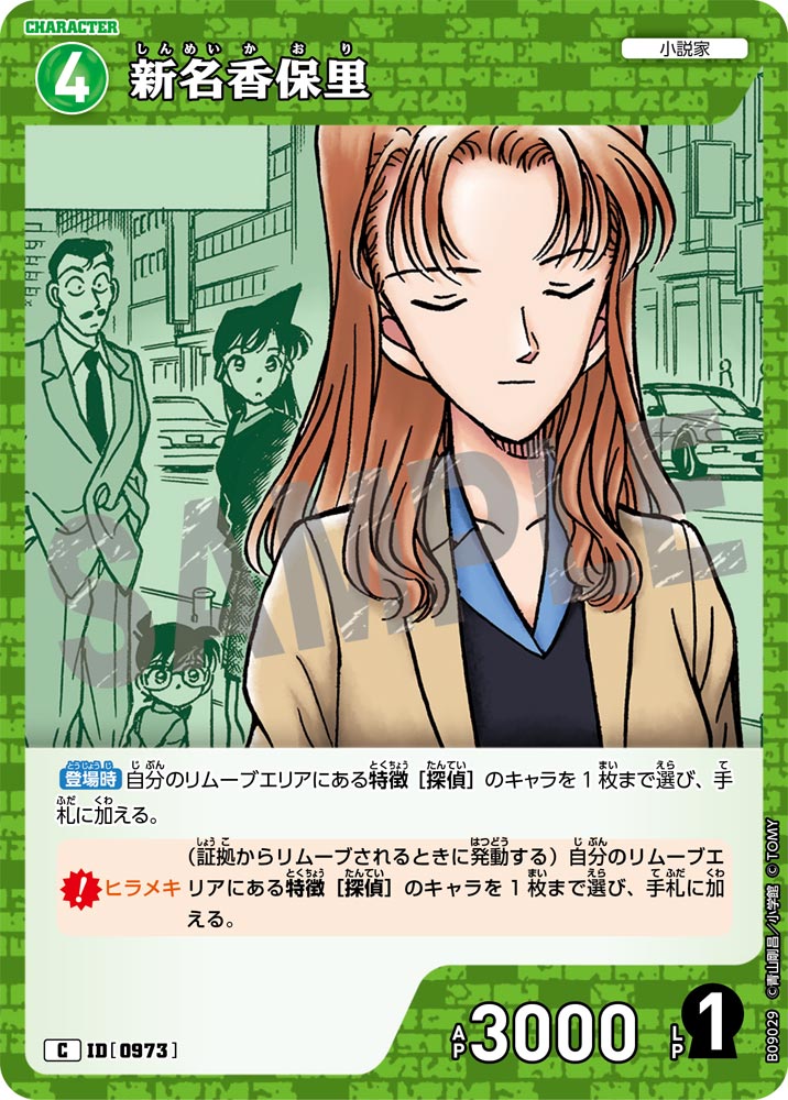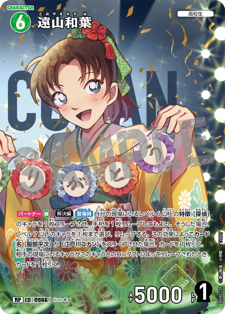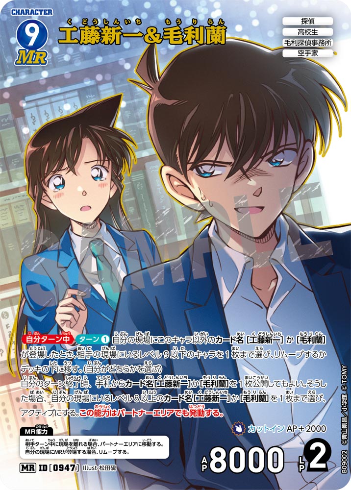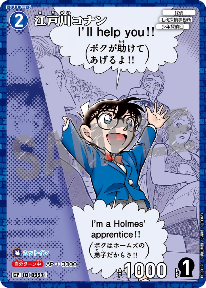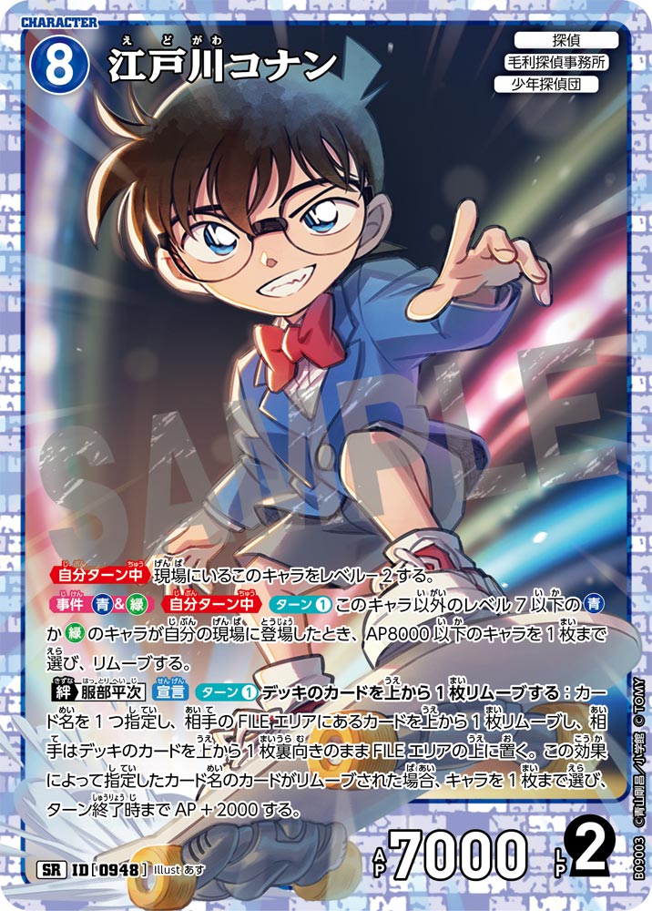 ALL CT-P01 Case-Booster 01 探偵たちの切札(ジョーカー) CT-P02 Case-Booster 02 西と東の大決戦(コンタクト) CT-P03 Case-Booster 03 黒影の襲来(カットイン) CT-P04 Case-Booster 04 信義の絆(パートナー) CT-P05 Case-Booster 05 新たなる謎 CT-P06 Case-Booster 06 交錯する刃 CT-P07 Case-Booster 07 魅惑のマジック CT-P08 Case-Booster 08 哀色の宿命 CT-P09 Case-Booster 09 疾風の煌めき CT-D01 Case-StartDeck 01 江戸川コナン CT-D02 Case-StartDeck 02 服部平次 CT-D03 Case-StartDeck 03 怪盗キッド CT-D04 Case-StartDeck 04 赤井秀一 CT-D05 Case-StartDeck 05 安室透 CT-D06 Case-ThemeDeck 01 服部平次VS怪盗キッド CT-D07 Case-ThemeDeck 02 黒ずくめの組織 CT-D08 Case-ThemeDeck 03 青の古城探索事件 CT-D09 Case-ThemeDeck 04 死亡の館、赤い壁 CT-D10 Case-ThemeDeck 05 シャッフルロマンス CT-D11 Case-ThemeDeck 06 千速と重悟の婚活パーティー PRカード 条件を追加+ 色 全選択 青 緑 白 赤 黄 黒 種類 全選択 パートナー キャラ イベント 事件 レアリティ 全選択 C CP CP2 R RP SR SRP SEC D PR SRCP MR MRP MRCP レベル 全選択 1 2 3 4 5 6 7 8 9 AP 全選択 0 1000 2000 3000 4000 5000 6000 7000 8000 9000 LP 全選択 0 1 2 3 特徴 探偵 毛利探偵事務所 少年探偵団 高校生 発明家 弁護士 科学者 執事 警察 怪盗 小説家 FBI 大学院生 赤井家 棋士 喫茶ポアロ 黒ずくめの組織 鈴木財閥 CIA アイドル ヒーロー 教師 ガジェット マジシャン 女優 犯人 サッカー選手 秘書 猫 図書館館長 寿司職人 犬 医師 アナウンサー ボディガード デザイナー シマリス 鷹 家政婦 大学生 メイド カメラマン ラーメン小倉 酒屋 絵描き YAIBA お手伝い 空手家 ビッグジュエル シャッフルロマンス バーテンダー 王女 邪神 ロボット 赤魔術 まじっく快斗 証券会社社員 CGクリエイター 女王 王子 食品会社社員 大学教授 政治家 怪人 泥参会 婚活パーティー 大阪府警 公安 警視庁 京都府警 長野県警 群馬県警 医療関係者 医大生 北海道警 神奈川県警 静岡県警 千葉県警 怪物 花見客 魔女 システムエンジニア この条件で検索する ×検索条件を解除 188件 | 江戸川コナン ID カードの種類 レアリティ 色 特徴 レベル AP LP 収録先 事件レベル 先攻 後攻 イラストレーター カードの能力 変装 カットイン ヒラメキ FAQ Q&Aコミュニティで個別質問 NO.