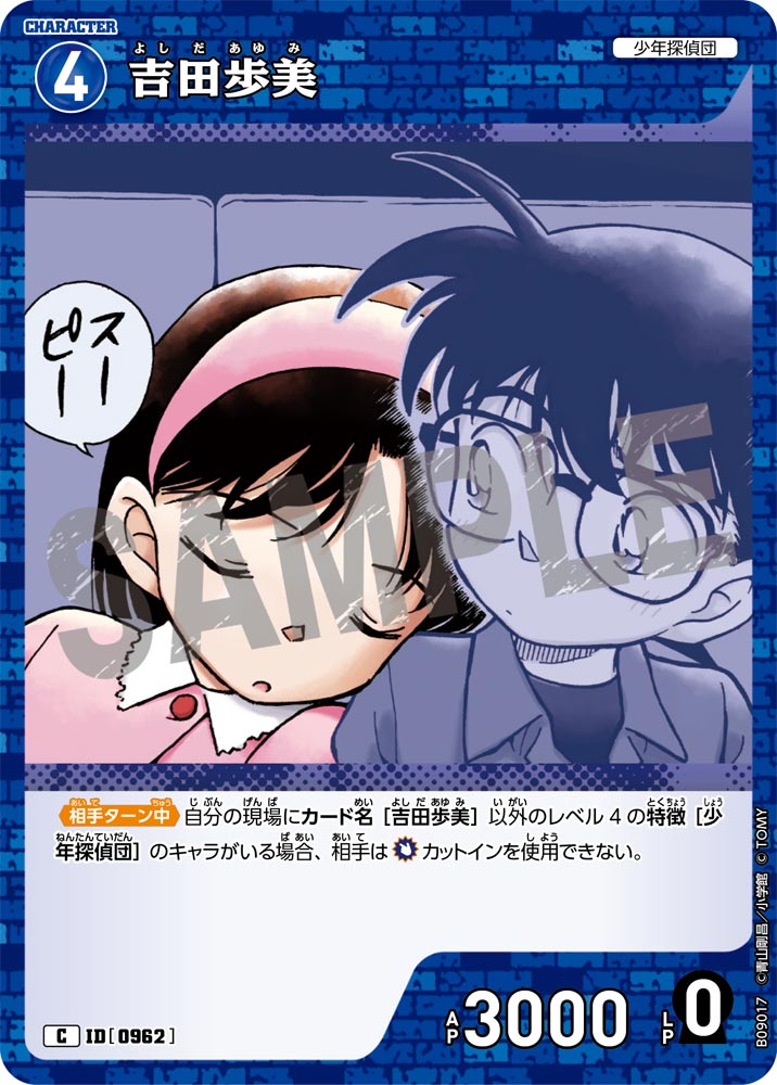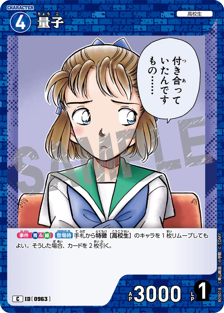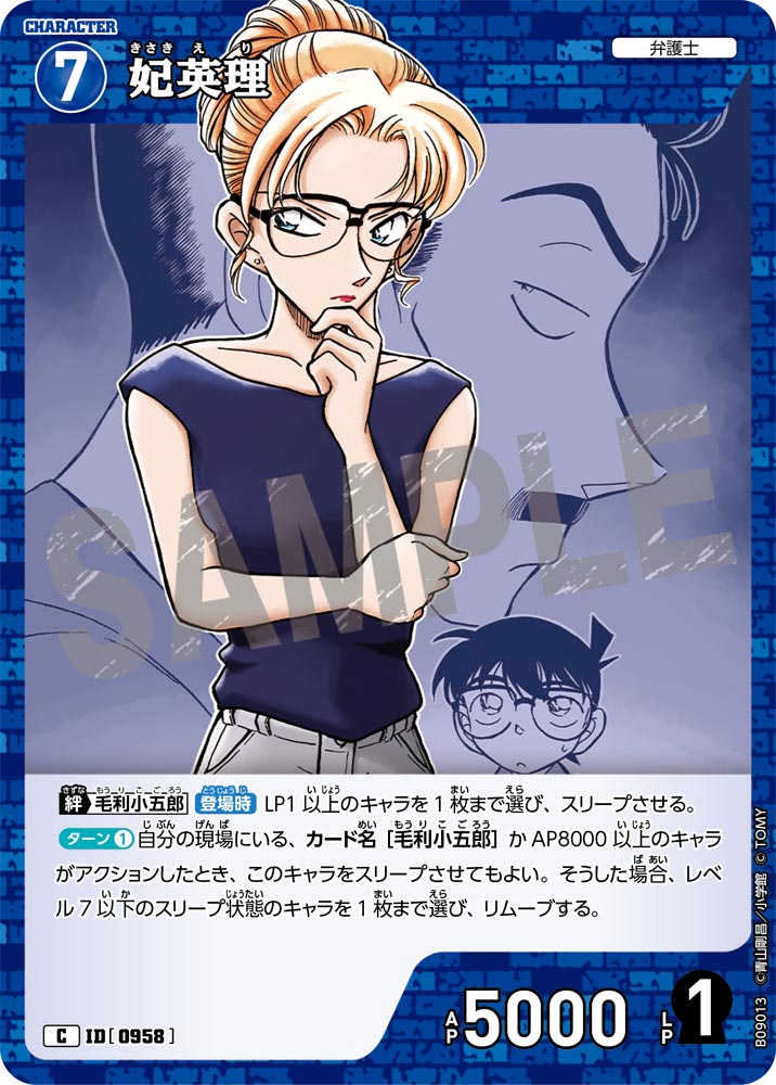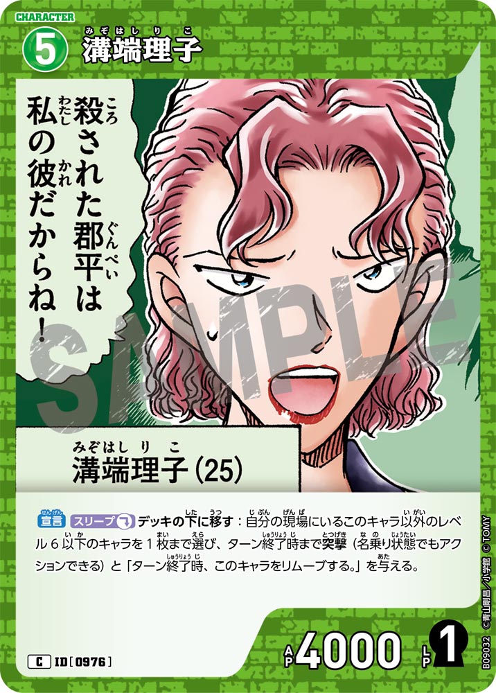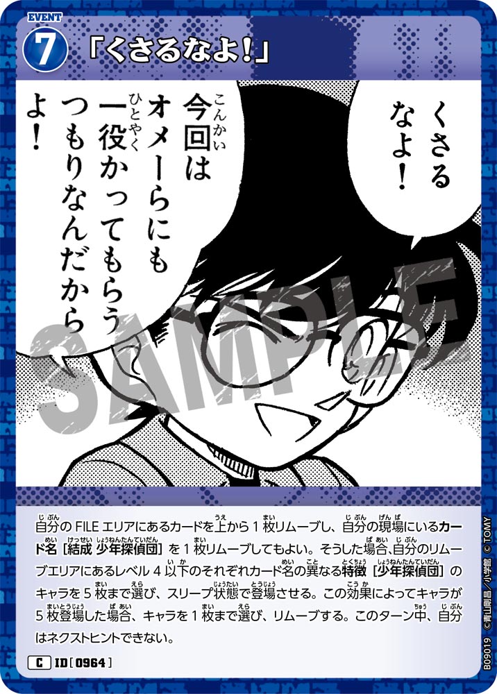 ALL CT-P01 Case-Booster 01 探偵たちの切札(ジョーカー) CT-P02 Case-Booster 02 西と東の大決戦(コンタクト) CT-P03 Case-Booster 03 黒影の襲来(カットイン) CT-P04 Case-Booster 04 信義の絆(パートナー) CT-P05 Case-Booster 05 新たなる謎 CT-P06 Case-Booster 06 交錯する刃 CT-P07 Case-Booster 07 魅惑のマジック CT-P08 Case-Booster 08 哀色の宿命 CT-P09 Case-Booster 09 疾風の煌めき CT-D01 Case-StartDeck 01 江戸川コナン CT-D02 Case-StartDeck 02 服部平次 CT-D03 Case-StartDeck 03 怪盗キッド CT-D04 Case-StartDeck 04 赤井秀一 CT-D05 Case-StartDeck 05 安室透 CT-D06 Case-ThemeDeck 01 服部平次VS怪盗キッド CT-D07 Case-ThemeDeck 02 黒ずくめの組織 CT-D08 Case-ThemeDeck 03 青の古城探索事件 CT-D09 Case-ThemeDeck 04 死亡の館、赤い壁 CT-D10 Case-ThemeDeck 05 シャッフルロマンス CT-D11 Case-ThemeDeck 06 千速と重悟の婚活パーティー PRカード 条件を追加+ 色 全選択 青 緑 白 赤 黄 黒 種類 全選択 パートナー キャラ イベント 事件 レアリティ 全選択 C CP CP2 R RP SR SRP SEC D PR SRCP MR MRP MRCP レベル 全選択 1 2 3 4 5 6 7 8 9 AP 全選択 0 1000 2000 3000 4000 5000 6000 7000 8000 9000 LP 全選択 0 1 2 3 特徴 探偵 毛利探偵事務所 少年探偵団 高校生 発明家 弁護士 科学者 執事 警察 怪盗 小説家 FBI 大学院生 赤井家 棋士 喫茶ポアロ 黒ずくめの組織 鈴木財閥 CIA アイドル ヒーロー 教師 ガジェット マジシャン 女優 犯人 サッカー選手 秘書 猫 図書館館長 寿司職人 犬 医師 アナウンサー ボディガード デザイナー シマリス 鷹 家政婦 大学生 メイド カメラマン ラーメン小倉 酒屋 絵描き YAIBA お手伝い 空手家 ビッグジュエル シャッフルロマンス バーテンダー 王女 邪神 ロボット 赤魔術 まじっく快斗 証券会社社員 CGクリエイター 女王 王子 食品会社社員 大学教授 政治家 怪人 泥参会 婚活パーティー 大阪府警 公安 警視庁 京都府警 長野県警 群馬県警 医療関係者 医大生 北海道警 神奈川県警 静岡県警 千葉県警 怪物 花見客 魔女 システムエンジニア この条件で検索する ×検索条件を解除 188件 | 江戸川コナン ID カードの種類 レアリティ 色 特徴 レベル AP LP 収録先 事件レベル 先攻 後攻 イラストレーター カードの能力 変装 カットイン ヒラメキ FAQ Q&Aコミュニティで個別質問 NO.