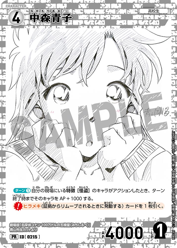 フリーワード 収録先 収録先を選択 ALL CT-P01 Case-Booster 01 探偵たちの切札(ジョーカー) CT-P02 Case-Booster 02 西と東の大決戦(コンタクト) CT-P03 Case-Booster 03 黒影の襲来(カットイン) CT-P04 Case-Booster 04 信義の絆(パートナー) CT-P05 Case-Booster 05 新たなる謎 CT-P06 Case-Booster 06 交錯する刃 CT-P07 Case-Booster 07 魅惑のマジック CT-D01 Case-StartDeck 01 江戸川コナン CT-D02 Case-StartDeck 02 服部平次 CT-D03 Case-StartDeck 03 怪盗キッド CT-D04 Case-StartDeck 04 赤井秀一 CT-D05 Case-StartDeck 05 安室透 CT-D06 Case-ThemeDeck 01 服部平次VS怪盗キッド CT-D07 Case-ThemeDeck 02 黒ずくめの組織 CT-D08 Case-ThemeDeck 03 青の古城探索事件 CT-D09 Case-ThemeDeck 04 死亡の館、赤い壁 CT-D10 Case-ThemeDeck 05 シャッフルロマンス PRカード 条件を追加+ 色 青 緑 白 赤 黄 黒 種類 パートナー キャラ イベント 事件 レアリティ C CP R RP SR SRP SEC D PR SRCP MR MRP MRCP レベル 1 2 3 4 5 6 7 8 9 〜 1 2 3 4 5 6 7 8 9 AP 0 1000 2000 3000 4000 5000 6000 7000 8000 LP 0 1 2 〜 0 1 2 この条件で検索する ×検索条件を解除 209件 | 江戸川コナン ID カードの種類 レアリティ 色 特徴 レベル AP LP 収録先 事件レベル 先攻 後攻 イラストレーター カードの能力 変装 カットイン ヒラメキ FAQ Q&Aコミュニティで個別質問 NO.