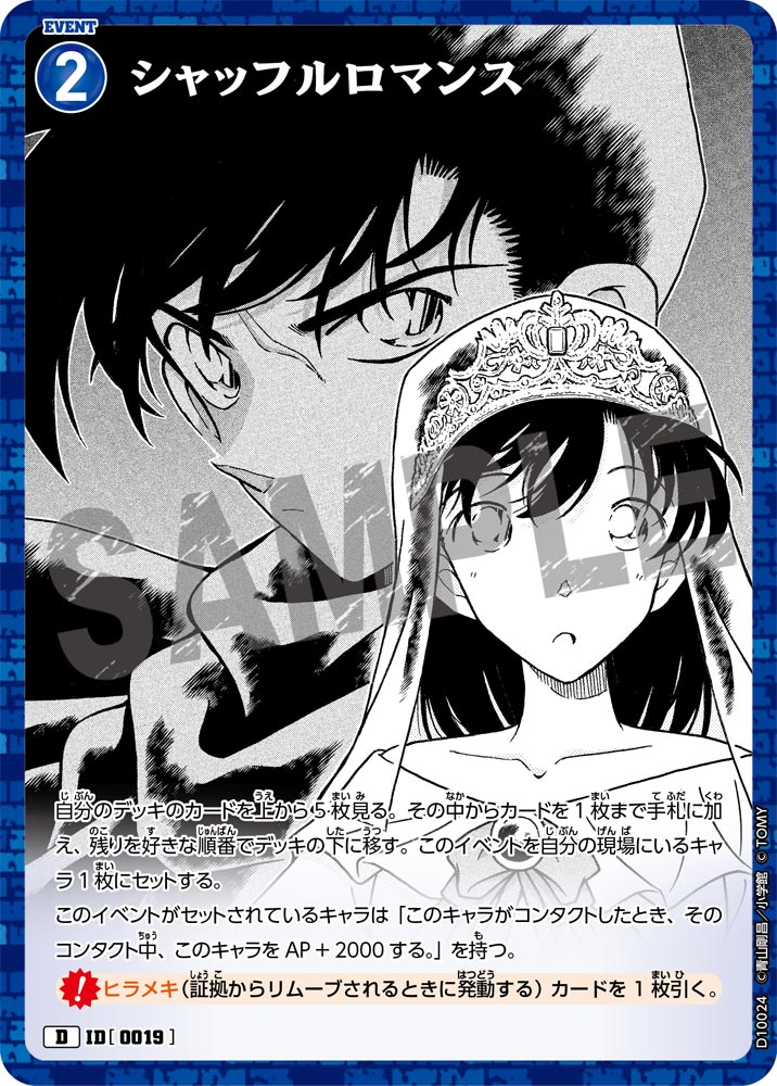 フリーワード 収録先 収録先を選択 ALL CT-P01 Case-Booster 01 探偵たちの切札(ジョーカー) CT-P02 Case-Booster 02 西と東の大決戦(コンタクト) CT-P03 Case-Booster 03 黒影の襲来(カットイン) CT-P04 Case-Booster 04 信義の絆(パートナー) CT-P05 Case-Booster 05 新たなる謎 CT-P06 Case-Booster 06 交錯する刃 CT-P07 Case-Booster 07 魅惑のマジック CT-D01 Case-StartDeck 01 江戸川コナン CT-D02 Case-StartDeck 02 服部平次 CT-D03 Case-StartDeck 03 怪盗キッド CT-D04 Case-StartDeck 04 赤井秀一 CT-D05 Case-StartDeck 05 安室透 CT-D06 Case-ThemeDeck 01 服部平次VS怪盗キッド CT-D07 Case-ThemeDeck 02 黒ずくめの組織 CT-D08 Case-ThemeDeck 03 青の古城探索事件 CT-D09 Case-ThemeDeck 04 死亡の館、赤い壁 CT-D10 Case-ThemeDeck 05 シャッフルロマンス PRカード 条件を追加+ 色 青 緑 白 赤 黄 黒 種類 パートナー キャラ イベント 事件 レアリティ C CP R RP SR SRP SEC D PR SRCP MR MRP MRCP レベル 1 2 3 4 5 6 7 8 9 〜 1 2 3 4 5 6 7 8 9 AP 0 1000 2000 3000 4000 5000 6000 7000 8000 LP 0 1 2 〜 0 1 2 この条件で検索する ×検索条件を解除 1625件 | 江戸川コナン ID カードの種類 レアリティ 色 特徴 レベル AP LP 収録先 事件レベル 先攻 後攻 イラストレーター カードの能力 変装 カットイン ヒラメキ FAQ Q&Aコミュニティで個別質問 NO.