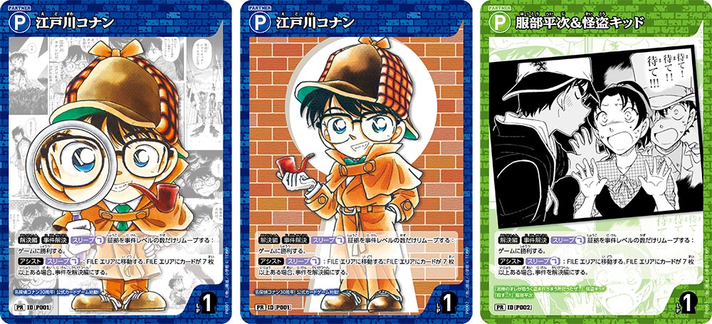 プロモーションカード【PR001】「江戸川コナン」、【PR002】「江戸川コナン」、【PR003】「服部平次&怪盗キッド」につきまして、配布以降にパートナーカードのテキストが更新されたため、カードテキストを訂正いたします。これらのカードは以下のテキストを持っているものとして扱います。
