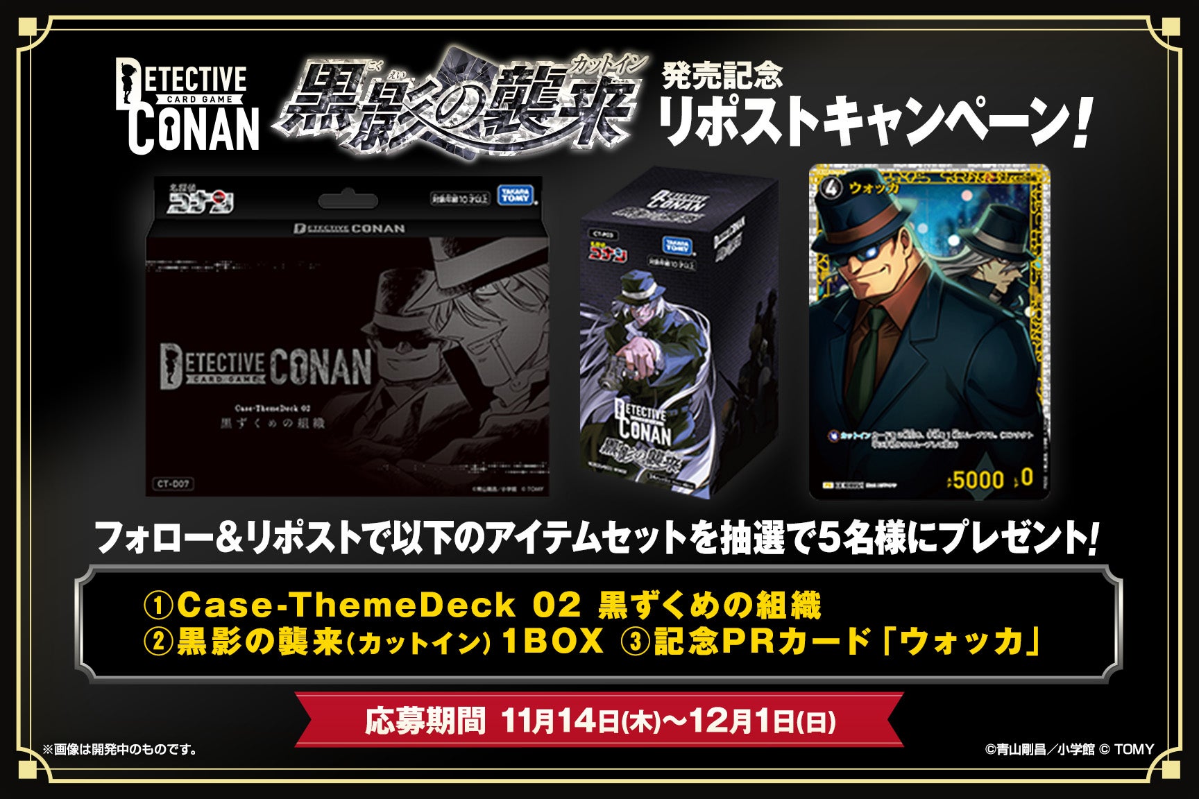 キャンペーン終了後、厳正な抽選の上、当選者へのみ「名探偵コナンカードゲーム公式X(@CONAN_tcg)」よりDMにてご連絡いたします。