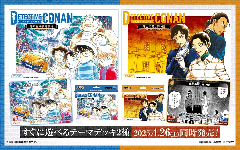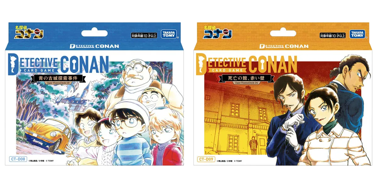 少年探偵団たちの名エピソード「青の古城探索事件」と長野県警のメンバーが活躍するエピソード「死亡の館、赤い壁」をモチーフにしたテーマデッキ2種が同日発売!