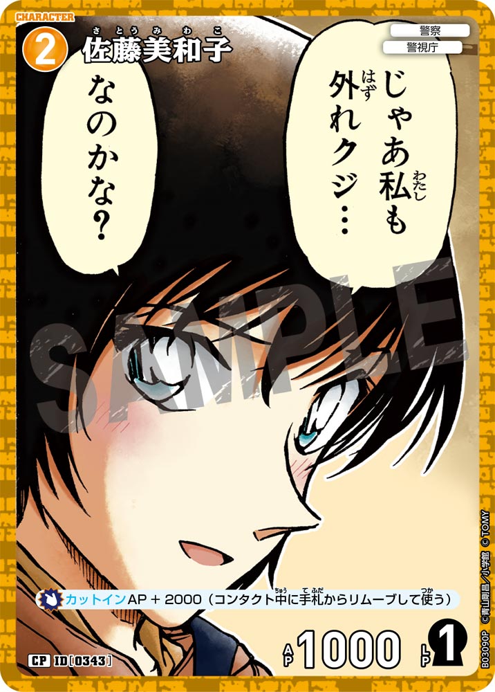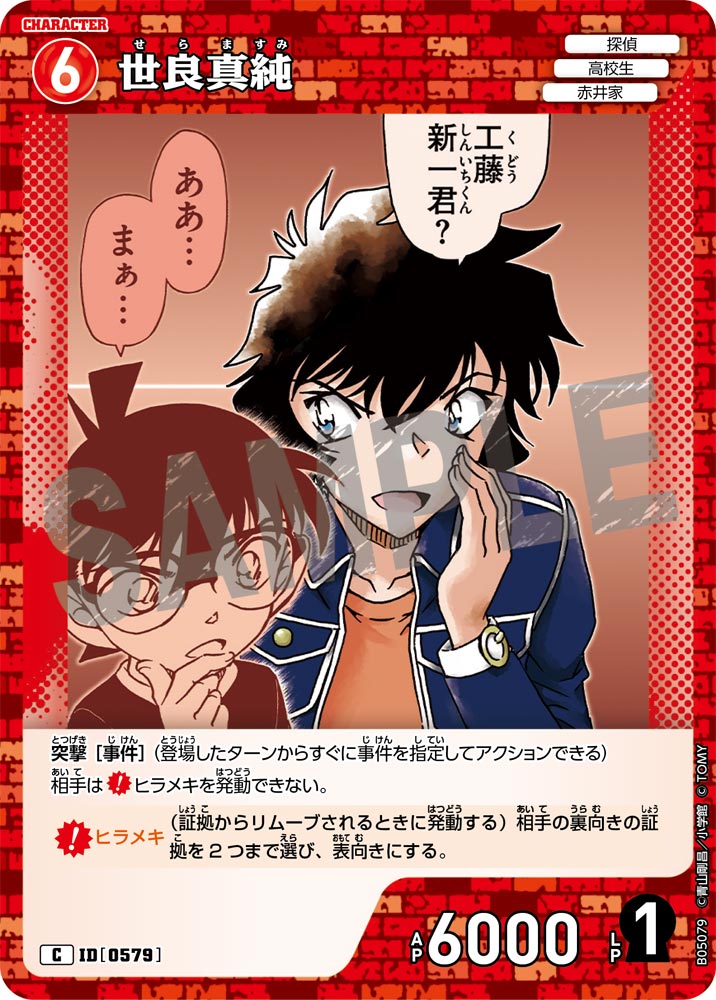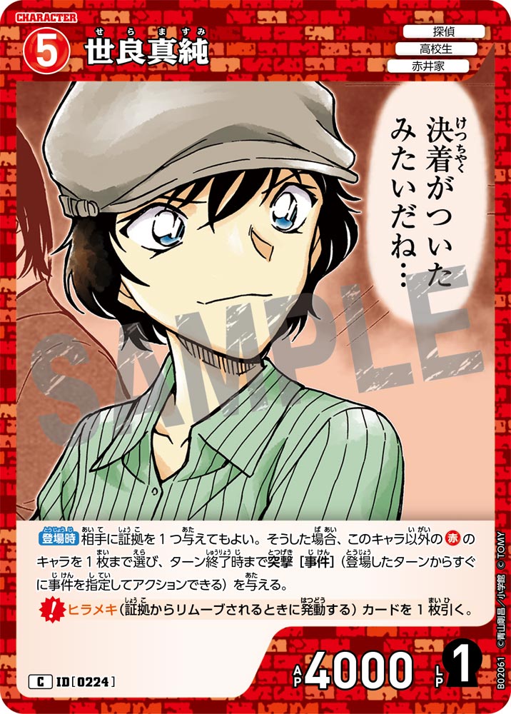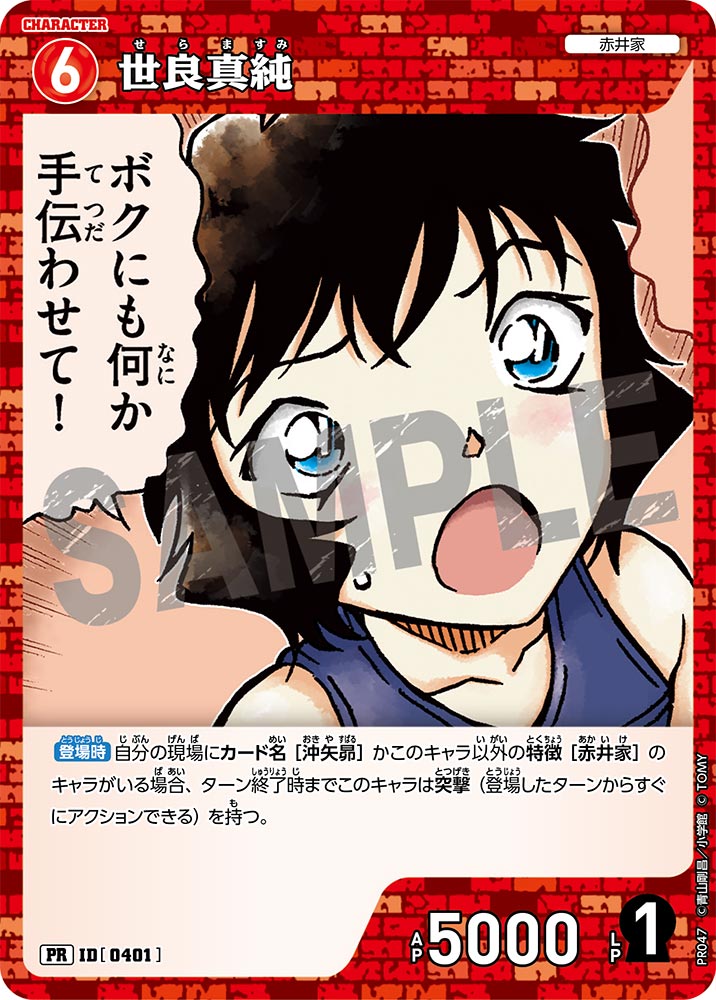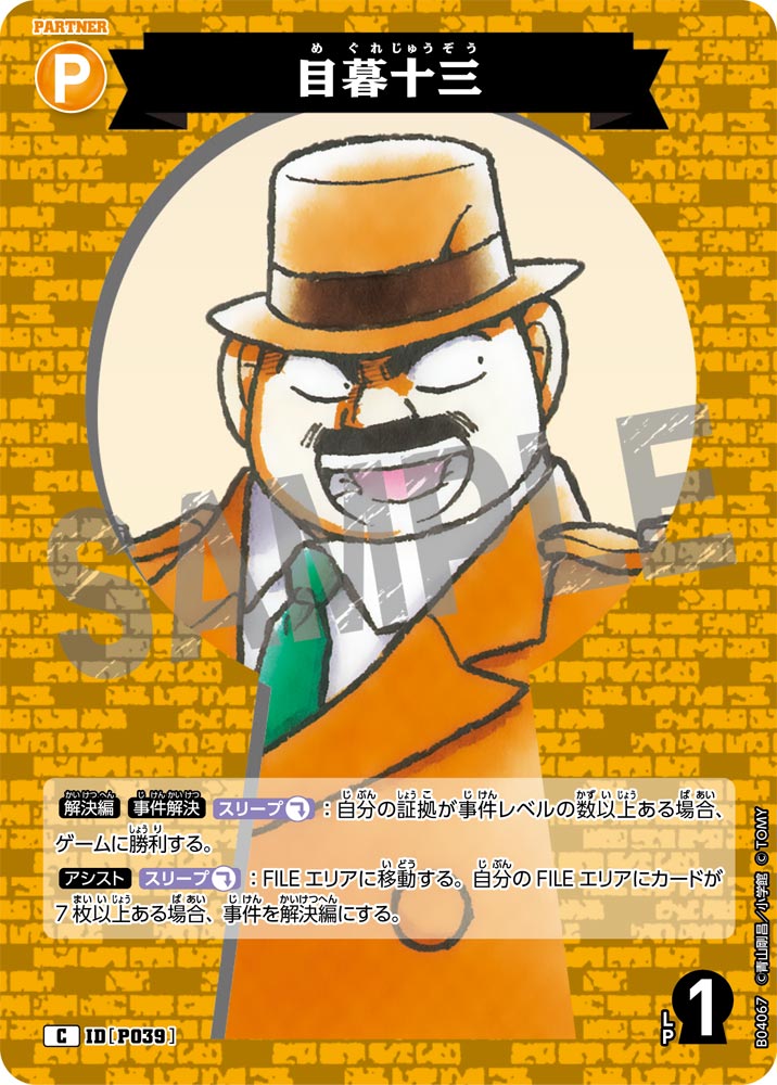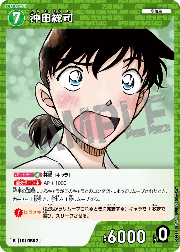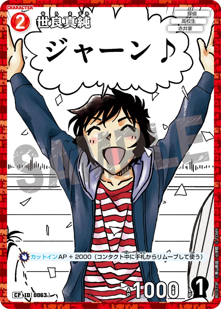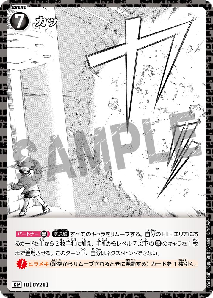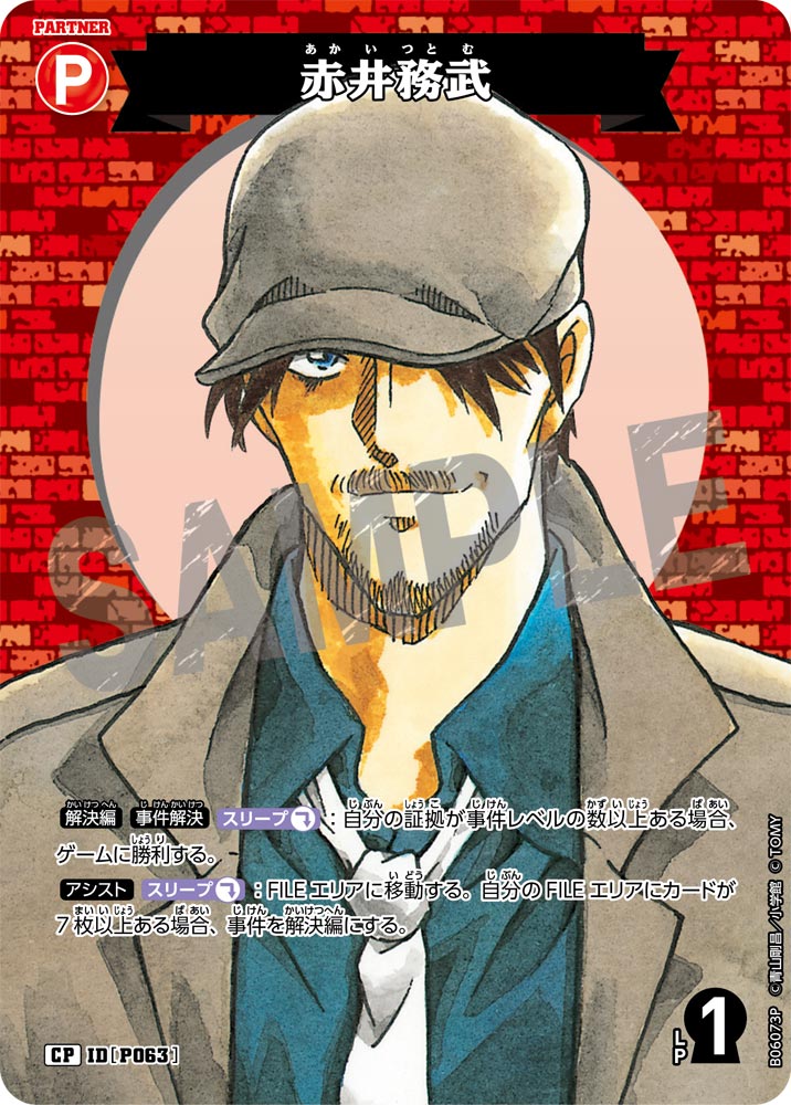 フリーワード 収録先 収録先を選択 ALL CT-P01 Case-Booster 01 探偵たちの切札(ジョーカー) CT-P02 Case-Booster 02 西と東の大決戦(コンタクト) CT-P03 Case-Booster 03 黒影の襲来(カットイン) CT-P04 Case-Booster 04 信義の絆(パートナー) CT-P05 Case-Booster 05 新たなる謎 CT-P06 Case-Booster 06 交錯する刃 CT-P07 Case-Booster 07 魅惑のマジック CT-D01 Case-StartDeck 01 江戸川コナン CT-D02 Case-StartDeck 02 服部平次 CT-D03 Case-StartDeck 03 怪盗キッド CT-D04 Case-StartDeck 04 赤井秀一 CT-D05 Case-StartDeck 05 安室透 CT-D06 Case-ThemeDeck 01 服部平次VS怪盗キッド CT-D07 Case-ThemeDeck 02 黒ずくめの組織 CT-D08 Case-ThemeDeck 03 青の古城探索事件 CT-D09 Case-ThemeDeck 04 死亡の館、赤い壁 CT-D10 Case-ThemeDeck 05 シャッフルロマンス PRカード 条件を追加+ 色 青 緑 白 赤 黄 黒 種類 パートナー キャラ イベント 事件 レアリティ C CP R RP SR SRP SEC D PR SRCP MR MRP MRCP レベル 1 2 3 4 5 6 7 8 9 〜 1 2 3 4 5 6 7 8 9 AP 0 1000 2000 3000 4000 5000 6000 7000 8000 LP 0 1 2 〜 0 1 2 この条件で検索する ×検索条件を解除 1625件 | 江戸川コナン ID カードの種類 レアリティ 色 特徴 レベル AP LP 収録先 事件レベル 先攻 後攻 イラストレーター カードの能力 変装 カットイン ヒラメキ FAQ Q&Aコミュニティで個別質問 NO.