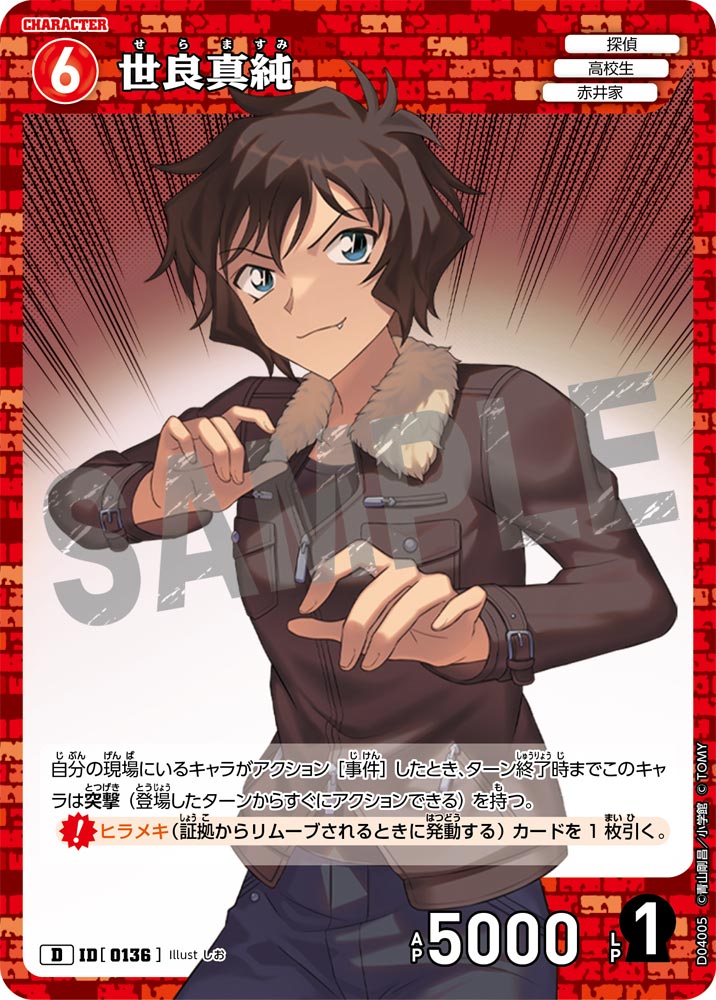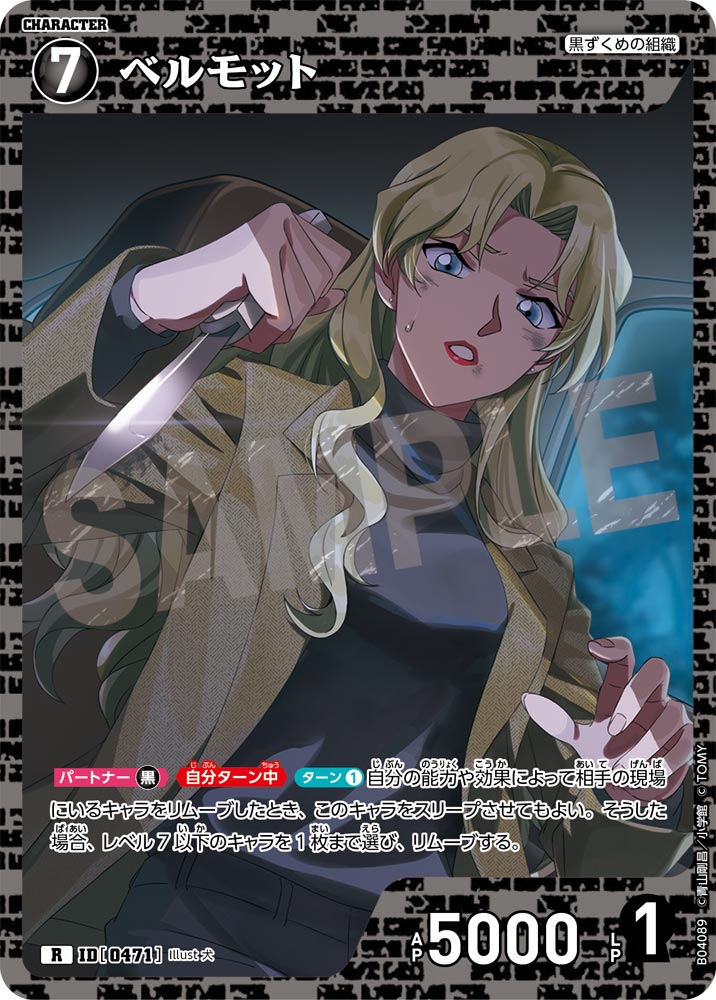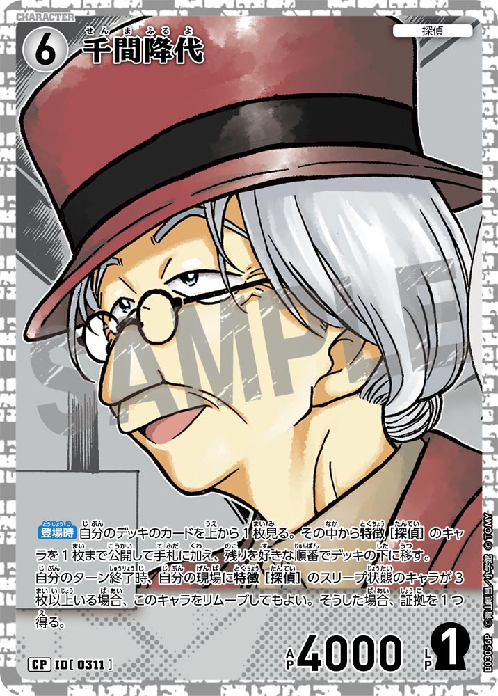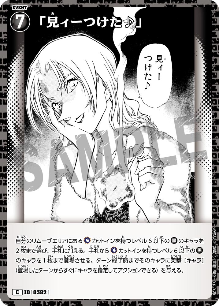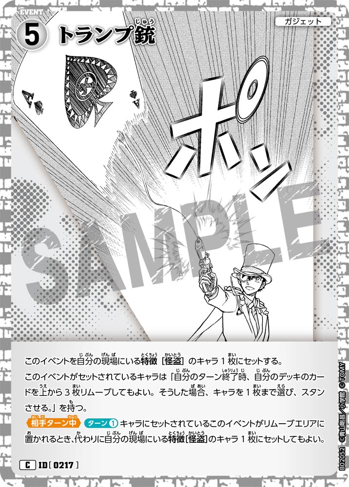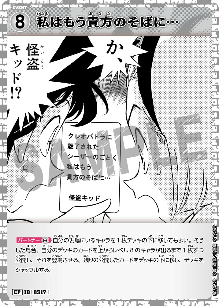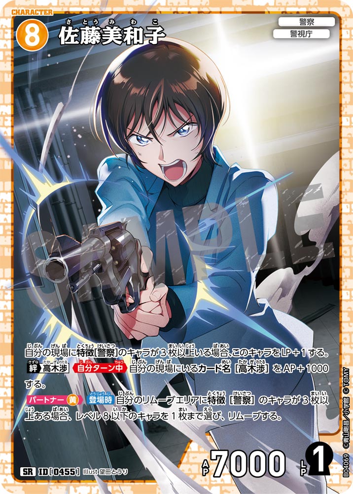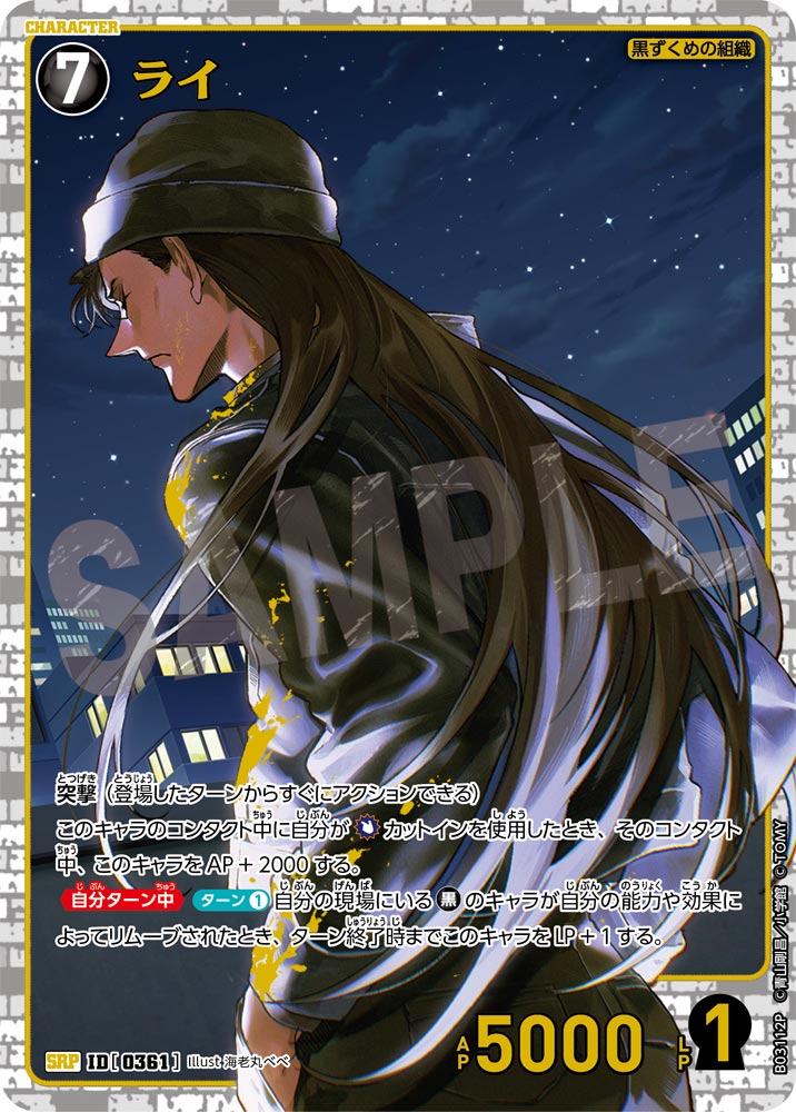 フリーワード 収録先 収録先を選択 ALL CT-P01 Case-Booster 01 探偵たちの切札(ジョーカー) CT-P02 Case-Booster 02 西と東の大決戦(コンタクト) CT-P03 Case-Booster 03 黒影の襲来(カットイン) CT-P04 Case-Booster 04 信義の絆(パートナー) CT-P05 Case-Booster 05 新たなる謎 CT-P06 Case-Booster 06 交錯する刃 CT-P07 Case-Booster 07 魅惑のマジック CT-D01 Case-StartDeck 01 江戸川コナン CT-D02 Case-StartDeck 02 服部平次 CT-D03 Case-StartDeck 03 怪盗キッド CT-D04 Case-StartDeck 04 赤井秀一 CT-D05 Case-StartDeck 05 安室透 CT-D06 Case-ThemeDeck 01 服部平次VS怪盗キッド CT-D07 Case-ThemeDeck 02 黒ずくめの組織 CT-D08 Case-ThemeDeck 03 青の古城探索事件 CT-D09 Case-ThemeDeck 04 死亡の館、赤い壁 CT-D10 Case-ThemeDeck 05 シャッフルロマンス PRカード 条件を追加+ 色 青 緑 白 赤 黄 黒 種類 パートナー キャラ イベント 事件 レアリティ C CP R RP SR SRP SEC D PR SRCP MR MRP MRCP レベル 1 2 3 4 5 6 7 8 9 〜 1 2 3 4 5 6 7 8 9 AP 0 1000 2000 3000 4000 5000 6000 7000 8000 LP 0 1 2 〜 0 1 2 この条件で検索する ×検索条件を解除 1625件 | 江戸川コナン ID カードの種類 レアリティ 色 特徴 レベル AP LP 収録先 事件レベル 先攻 後攻 イラストレーター カードの能力 変装 カットイン ヒラメキ FAQ Q&Aコミュニティで個別質問 NO.