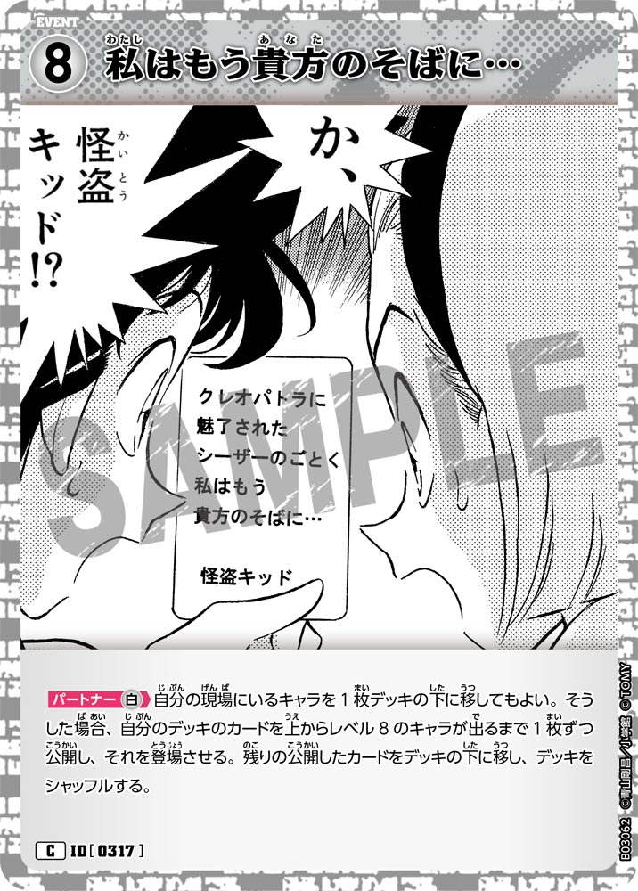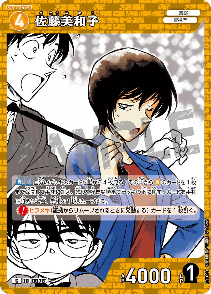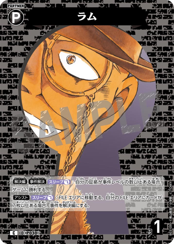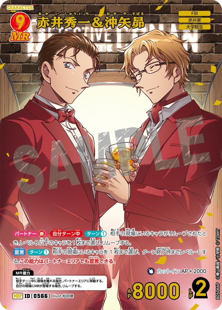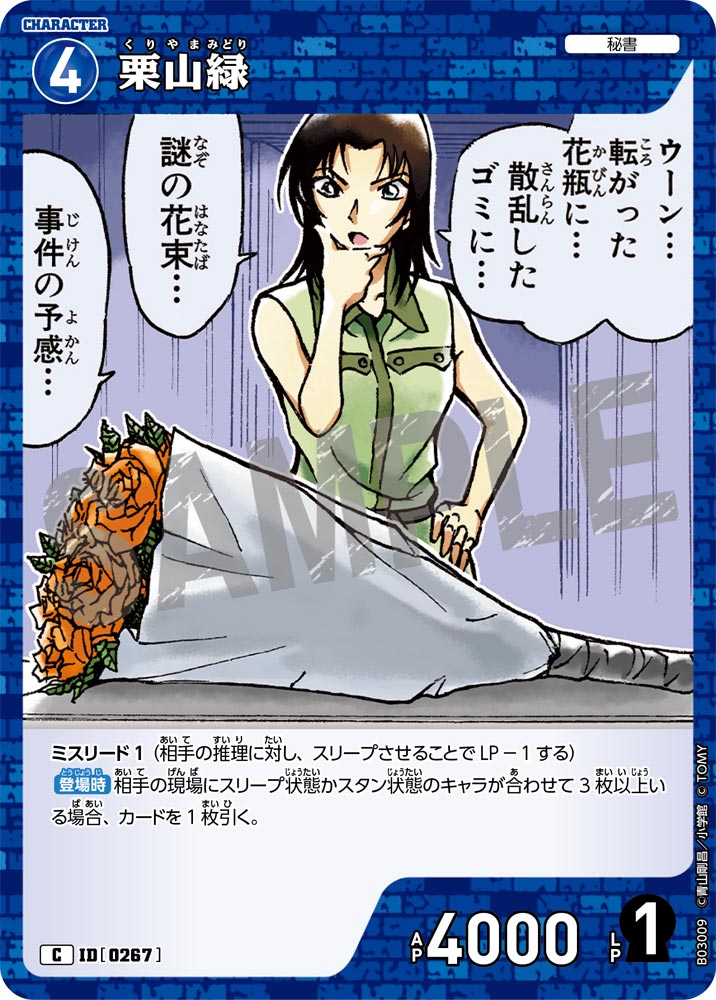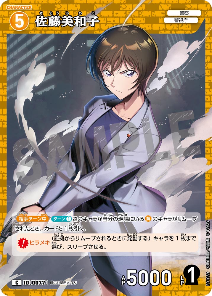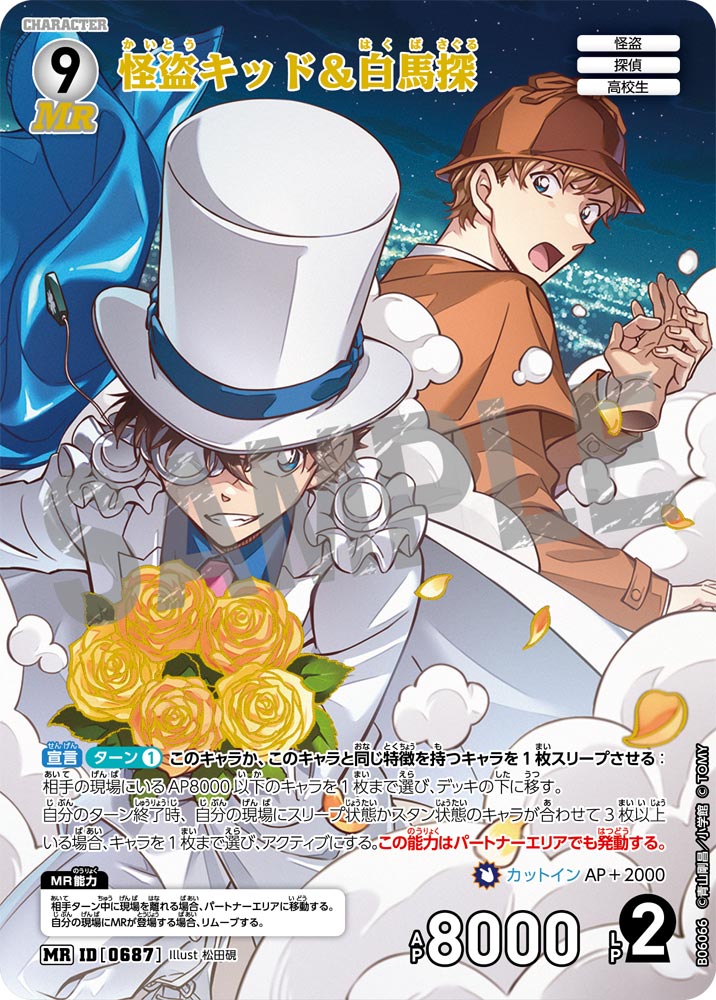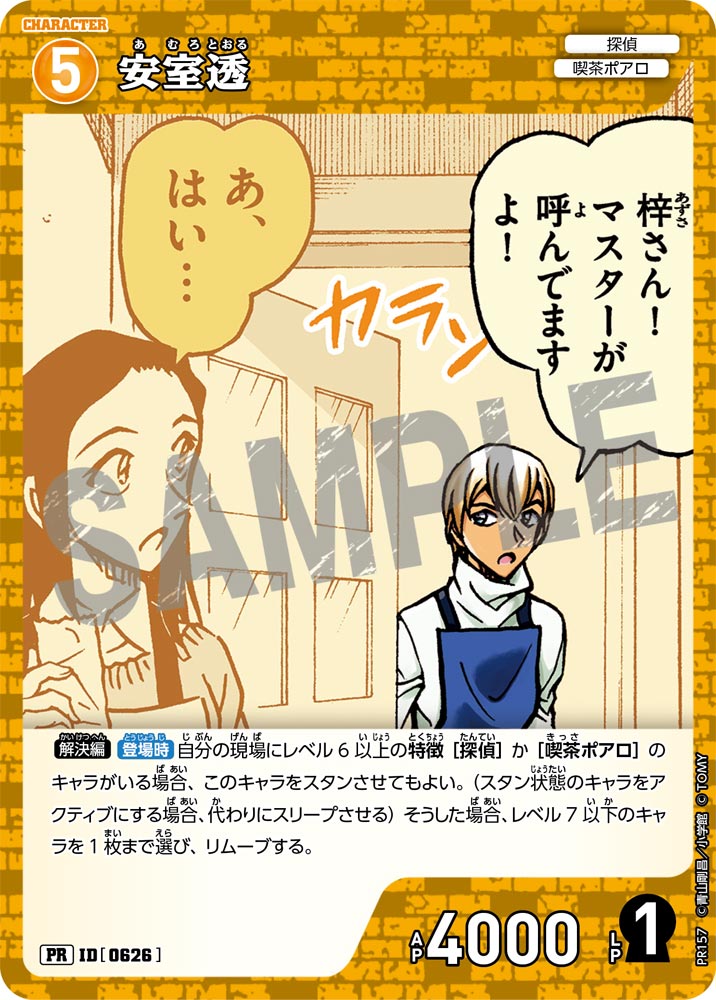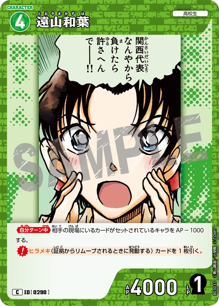 フリーワード 収録先 収録先を選択 ALL CT-P01 Case-Booster 01 探偵たちの切札(ジョーカー) CT-P02 Case-Booster 02 西と東の大決戦(コンタクト) CT-P03 Case-Booster 03 黒影の襲来(カットイン) CT-P04 Case-Booster 04 信義の絆(パートナー) CT-P05 Case-Booster 05 新たなる謎 CT-P06 Case-Booster 06 交錯する刃 CT-P07 Case-Booster 07 魅惑のマジック CT-D01 Case-StartDeck 01 江戸川コナン CT-D02 Case-StartDeck 02 服部平次 CT-D03 Case-StartDeck 03 怪盗キッド CT-D04 Case-StartDeck 04 赤井秀一 CT-D05 Case-StartDeck 05 安室透 CT-D06 Case-ThemeDeck 01 服部平次VS怪盗キッド CT-D07 Case-ThemeDeck 02 黒ずくめの組織 CT-D08 Case-ThemeDeck 03 青の古城探索事件 CT-D09 Case-ThemeDeck 04 死亡の館、赤い壁 CT-D10 Case-ThemeDeck 05 シャッフルロマンス PRカード 条件を追加+ 色 青 緑 白 赤 黄 黒 種類 パートナー キャラ イベント 事件 レアリティ C CP R RP SR SRP SEC D PR SRCP MR MRP MRCP レベル 1 2 3 4 5 6 7 8 9 〜 1 2 3 4 5 6 7 8 9 AP 0 1000 2000 3000 4000 5000 6000 7000 8000 LP 0 1 2 〜 0 1 2 この条件で検索する ×検索条件を解除 1625件 | 江戸川コナン ID カードの種類 レアリティ 色 特徴 レベル AP LP 収録先 事件レベル 先攻 後攻 イラストレーター カードの能力 変装 カットイン ヒラメキ FAQ Q&Aコミュニティで個別質問 NO.