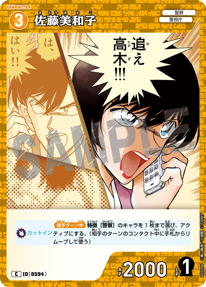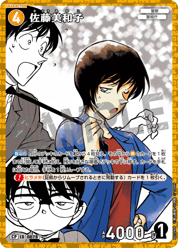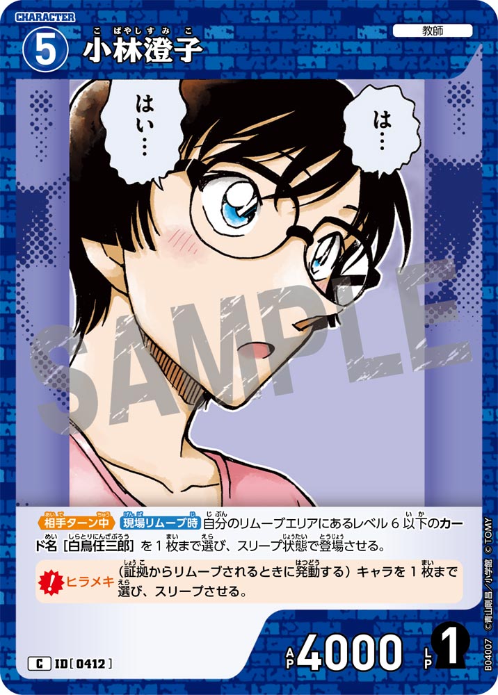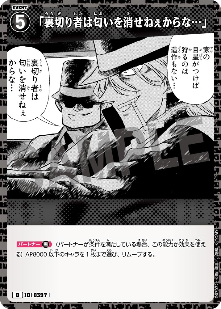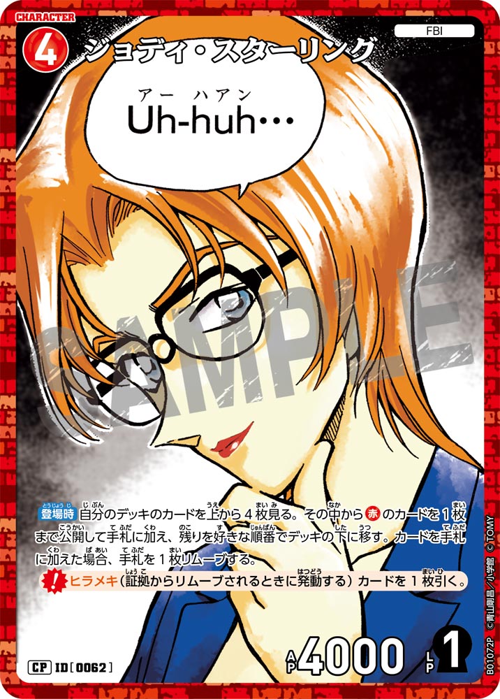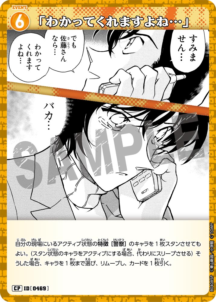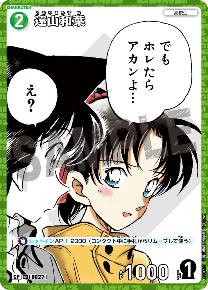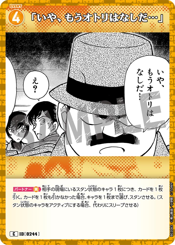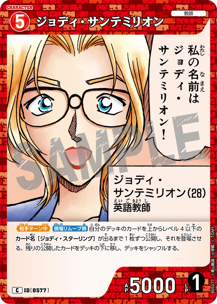 フリーワード 収録先 収録先を選択 ALL CT-P01 Case-Booster 01 探偵たちの切札(ジョーカー) CT-P02 Case-Booster 02 西と東の大決戦(コンタクト) CT-P03 Case-Booster 03 黒影の襲来(カットイン) CT-P04 Case-Booster 04 信義の絆(パートナー) CT-P05 Case-Booster 05 新たなる謎 CT-P06 Case-Booster 06 交錯する刃 CT-P07 Case-Booster 07 魅惑のマジック CT-D01 Case-StartDeck 01 江戸川コナン CT-D02 Case-StartDeck 02 服部平次 CT-D03 Case-StartDeck 03 怪盗キッド CT-D04 Case-StartDeck 04 赤井秀一 CT-D05 Case-StartDeck 05 安室透 CT-D06 Case-ThemeDeck 01 服部平次VS怪盗キッド CT-D07 Case-ThemeDeck 02 黒ずくめの組織 CT-D08 Case-ThemeDeck 03 青の古城探索事件 CT-D09 Case-ThemeDeck 04 死亡の館、赤い壁 CT-D10 Case-ThemeDeck 05 シャッフルロマンス PRカード 条件を追加+ 色 青 緑 白 赤 黄 黒 種類 パートナー キャラ イベント 事件 レアリティ C CP R RP SR SRP SEC D PR SRCP MR MRP MRCP レベル 1 2 3 4 5 6 7 8 9 〜 1 2 3 4 5 6 7 8 9 AP 0 1000 2000 3000 4000 5000 6000 7000 8000 LP 0 1 2 〜 0 1 2 この条件で検索する ×検索条件を解除 1625件 | 江戸川コナン ID カードの種類 レアリティ 色 特徴 レベル AP LP 収録先 事件レベル 先攻 後攻 イラストレーター カードの能力 変装 カットイン ヒラメキ FAQ Q&Aコミュニティで個別質問 NO.