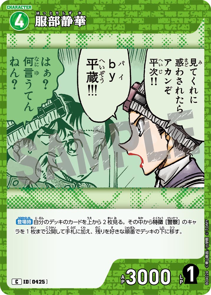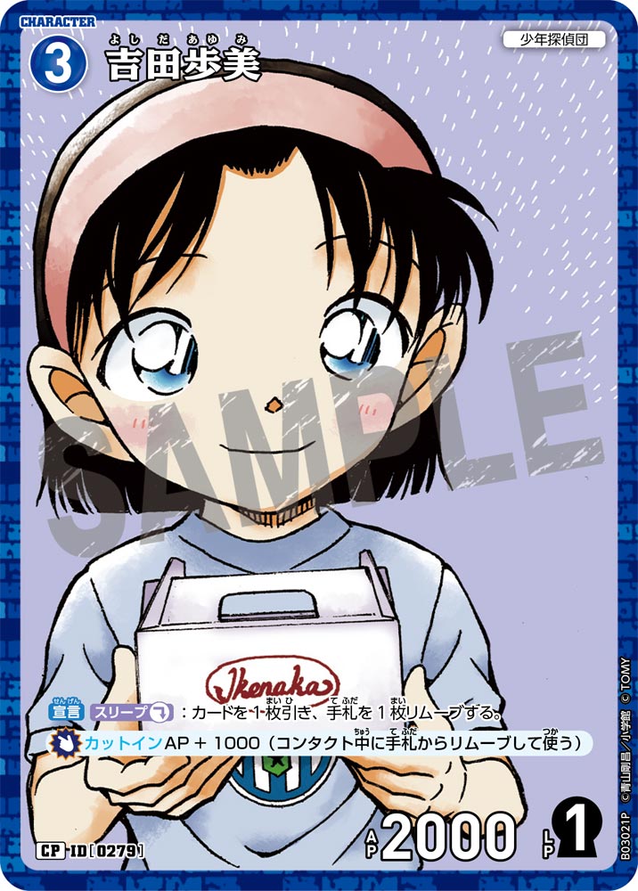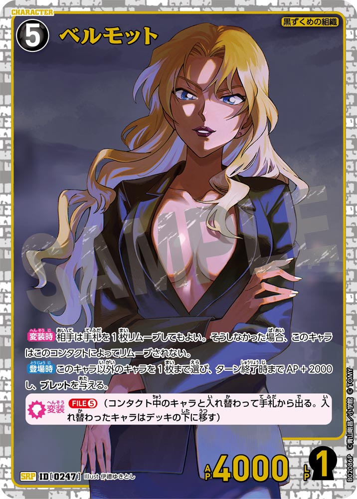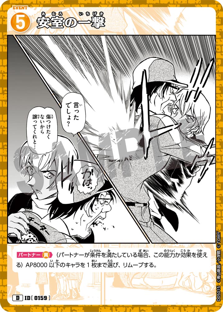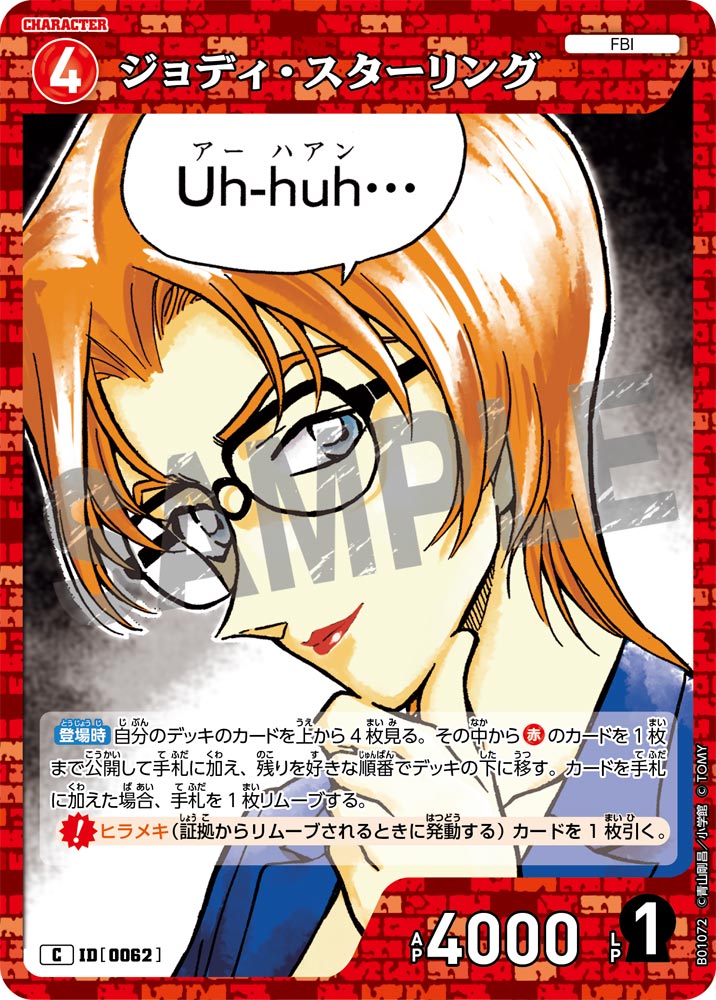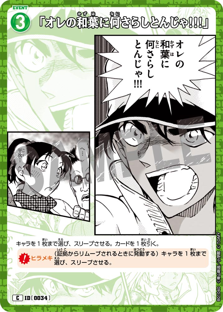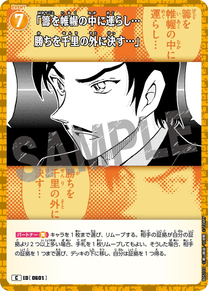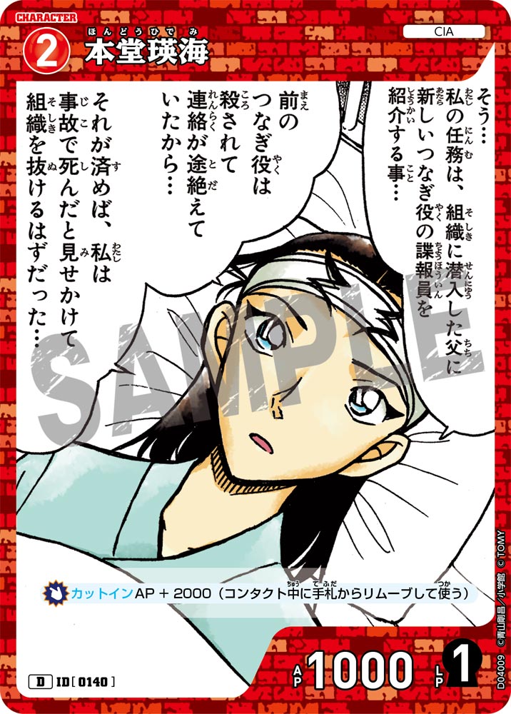 フリーワード 収録先 収録先を選択 ALL CT-P01 Case-Booster 01 探偵たちの切札(ジョーカー) CT-P02 Case-Booster 02 西と東の大決戦(コンタクト) CT-P03 Case-Booster 03 黒影の襲来(カットイン) CT-P04 Case-Booster 04 信義の絆(パートナー) CT-P05 Case-Booster 05 新たなる謎 CT-P06 Case-Booster 06 交錯する刃 CT-P07 Case-Booster 07 魅惑のマジック CT-D01 Case-StartDeck 01 江戸川コナン CT-D02 Case-StartDeck 02 服部平次 CT-D03 Case-StartDeck 03 怪盗キッド CT-D04 Case-StartDeck 04 赤井秀一 CT-D05 Case-StartDeck 05 安室透 CT-D06 Case-ThemeDeck 01 服部平次VS怪盗キッド CT-D07 Case-ThemeDeck 02 黒ずくめの組織 CT-D08 Case-ThemeDeck 03 青の古城探索事件 CT-D09 Case-ThemeDeck 04 死亡の館、赤い壁 CT-D10 Case-ThemeDeck 05 シャッフルロマンス PRカード 条件を追加+ 色 青 緑 白 赤 黄 黒 種類 パートナー キャラ イベント 事件 レアリティ C CP R RP SR SRP SEC D PR SRCP MR MRP MRCP レベル 1 2 3 4 5 6 7 8 9 〜 1 2 3 4 5 6 7 8 9 AP 0 1000 2000 3000 4000 5000 6000 7000 8000 LP 0 1 2 〜 0 1 2 この条件で検索する ×検索条件を解除 1625件 | 江戸川コナン ID カードの種類 レアリティ 色 特徴 レベル AP LP 収録先 事件レベル 先攻 後攻 イラストレーター カードの能力 変装 カットイン ヒラメキ FAQ Q&Aコミュニティで個別質問 NO.