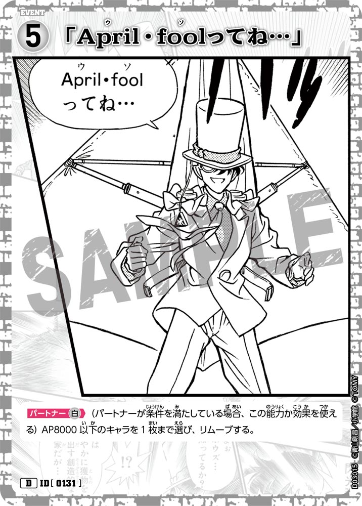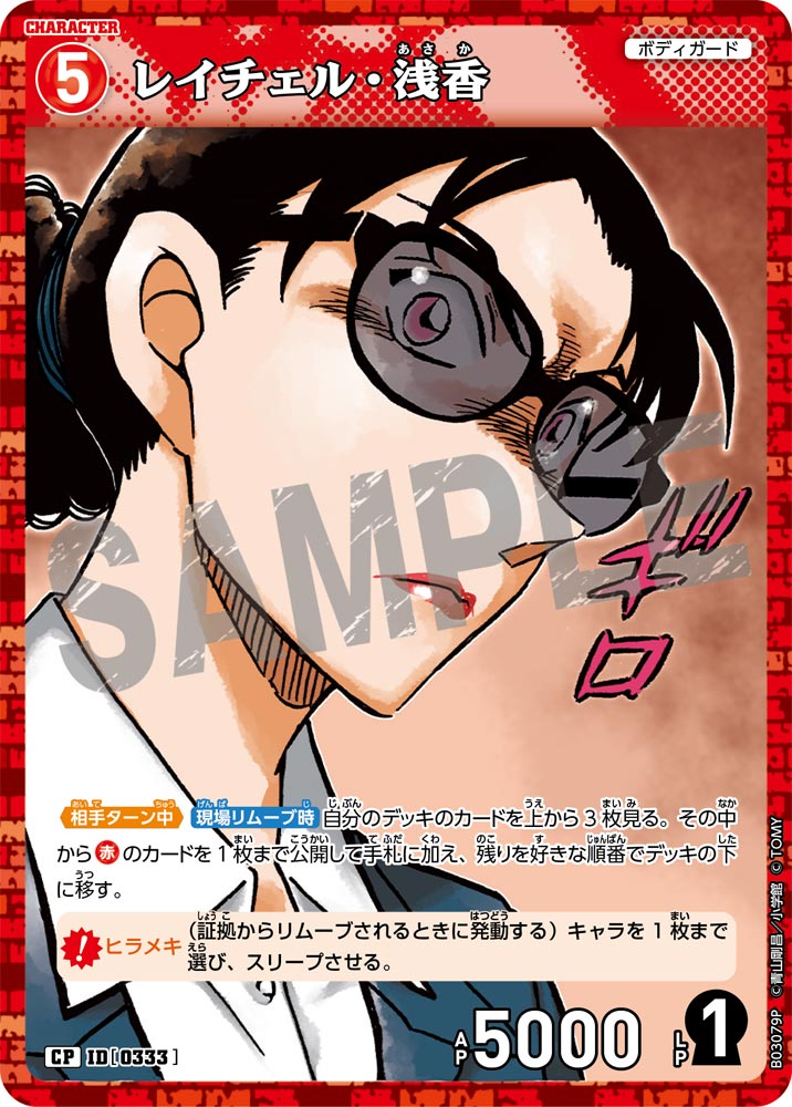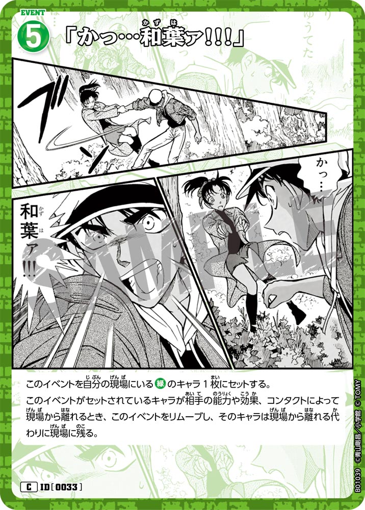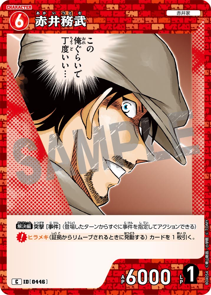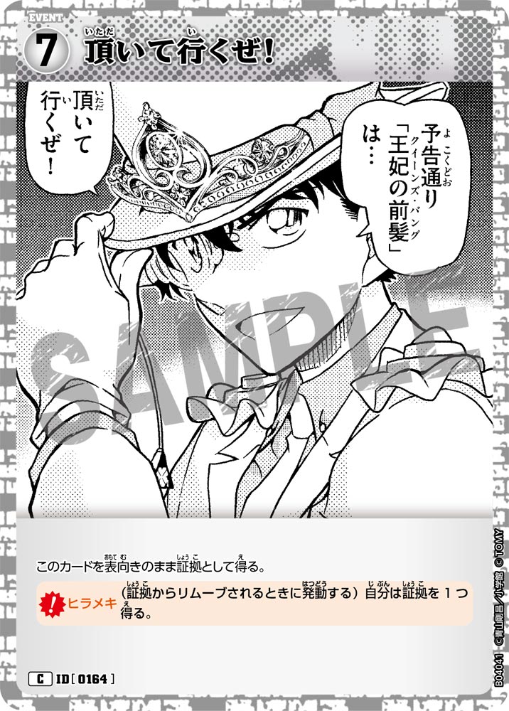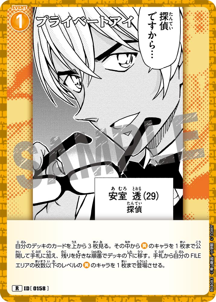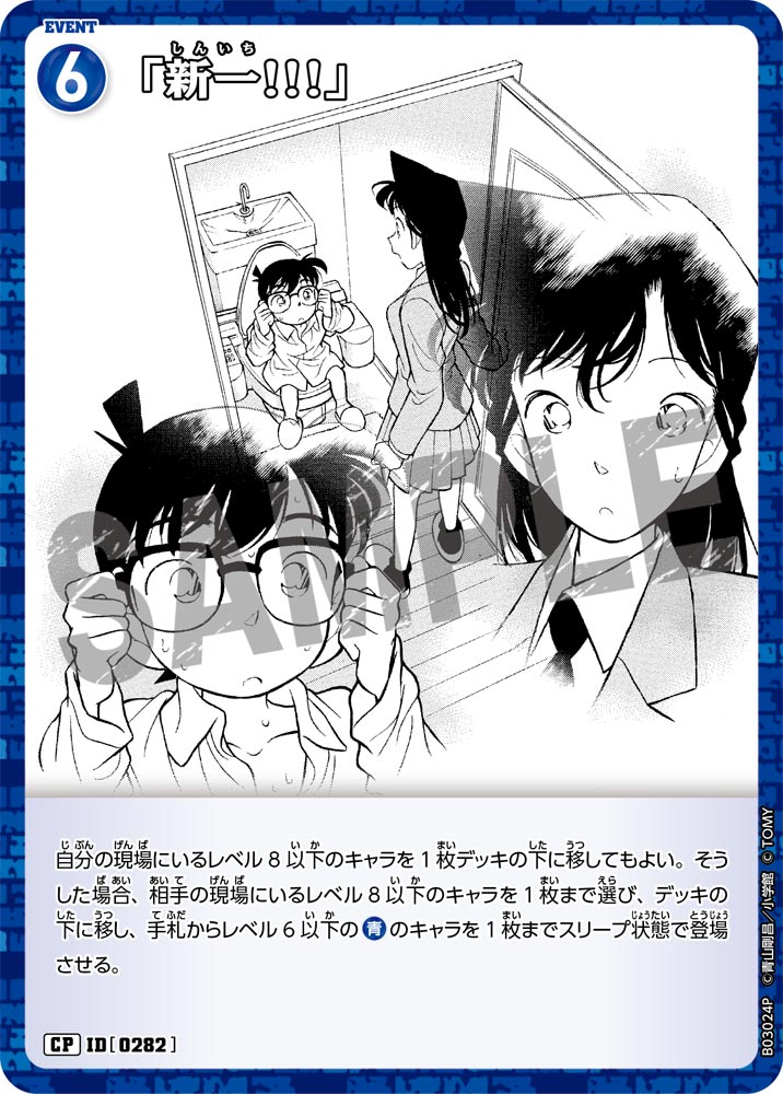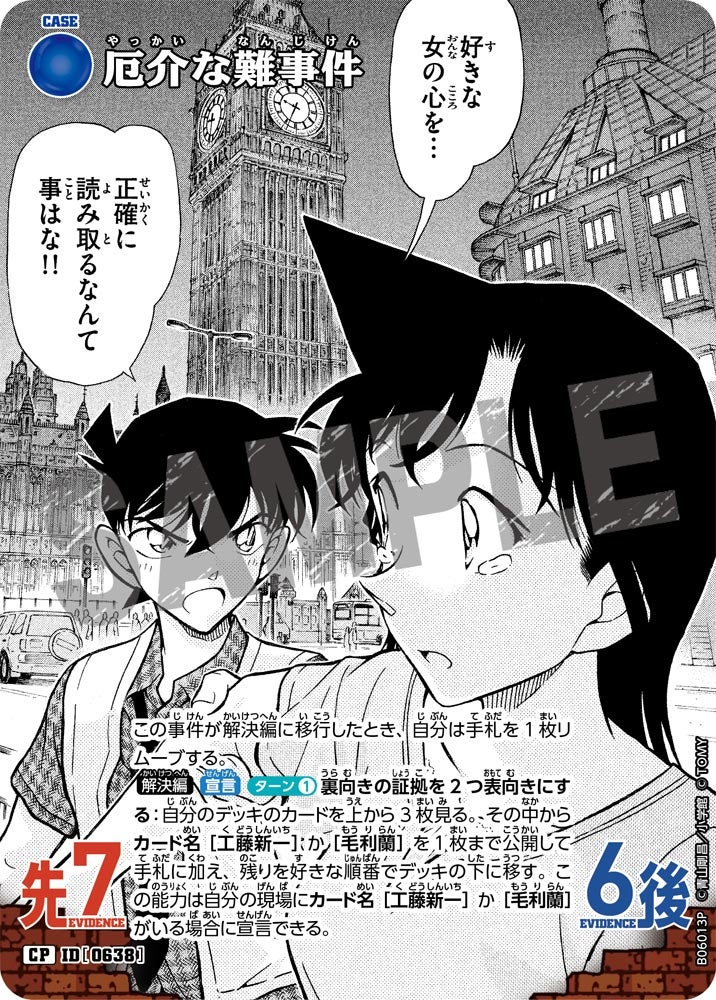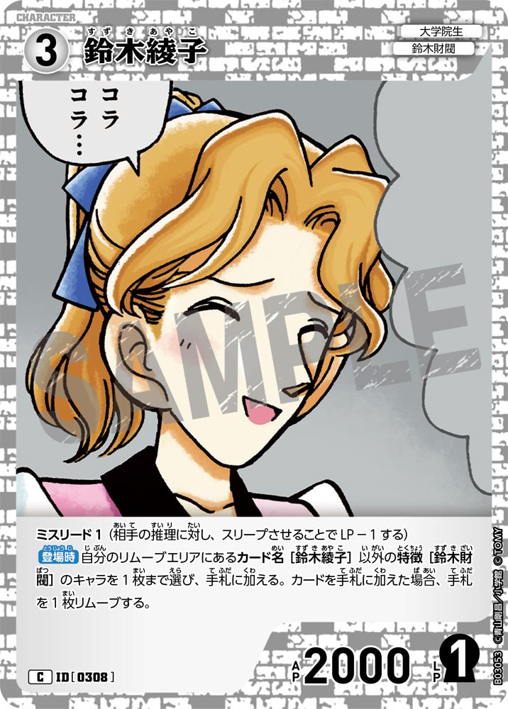 フリーワード 収録先 収録先を選択 ALL CT-P01 Case-Booster 01 探偵たちの切札(ジョーカー) CT-P02 Case-Booster 02 西と東の大決戦(コンタクト) CT-P03 Case-Booster 03 黒影の襲来(カットイン) CT-P04 Case-Booster 04 信義の絆(パートナー) CT-P05 Case-Booster 05 新たなる謎 CT-P06 Case-Booster 06 交錯する刃 CT-P07 Case-Booster 07 魅惑のマジック CT-D01 Case-StartDeck 01 江戸川コナン CT-D02 Case-StartDeck 02 服部平次 CT-D03 Case-StartDeck 03 怪盗キッド CT-D04 Case-StartDeck 04 赤井秀一 CT-D05 Case-StartDeck 05 安室透 CT-D06 Case-ThemeDeck 01 服部平次VS怪盗キッド CT-D07 Case-ThemeDeck 02 黒ずくめの組織 CT-D08 Case-ThemeDeck 03 青の古城探索事件 CT-D09 Case-ThemeDeck 04 死亡の館、赤い壁 CT-D10 Case-ThemeDeck 05 シャッフルロマンス PRカード 条件を追加+ 色 青 緑 白 赤 黄 黒 種類 パートナー キャラ イベント 事件 レアリティ C CP R RP SR SRP SEC D PR SRCP MR MRP MRCP レベル 1 2 3 4 5 6 7 8 9 〜 1 2 3 4 5 6 7 8 9 AP 0 1000 2000 3000 4000 5000 6000 7000 8000 LP 0 1 2 〜 0 1 2 この条件で検索する ×検索条件を解除 1625件 | 江戸川コナン ID カードの種類 レアリティ 色 特徴 レベル AP LP 収録先 事件レベル 先攻 後攻 イラストレーター カードの能力 変装 カットイン ヒラメキ FAQ Q&Aコミュニティで個別質問 NO.