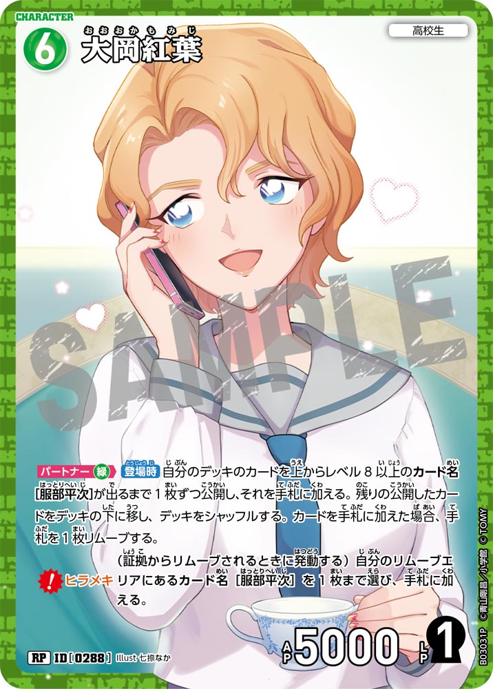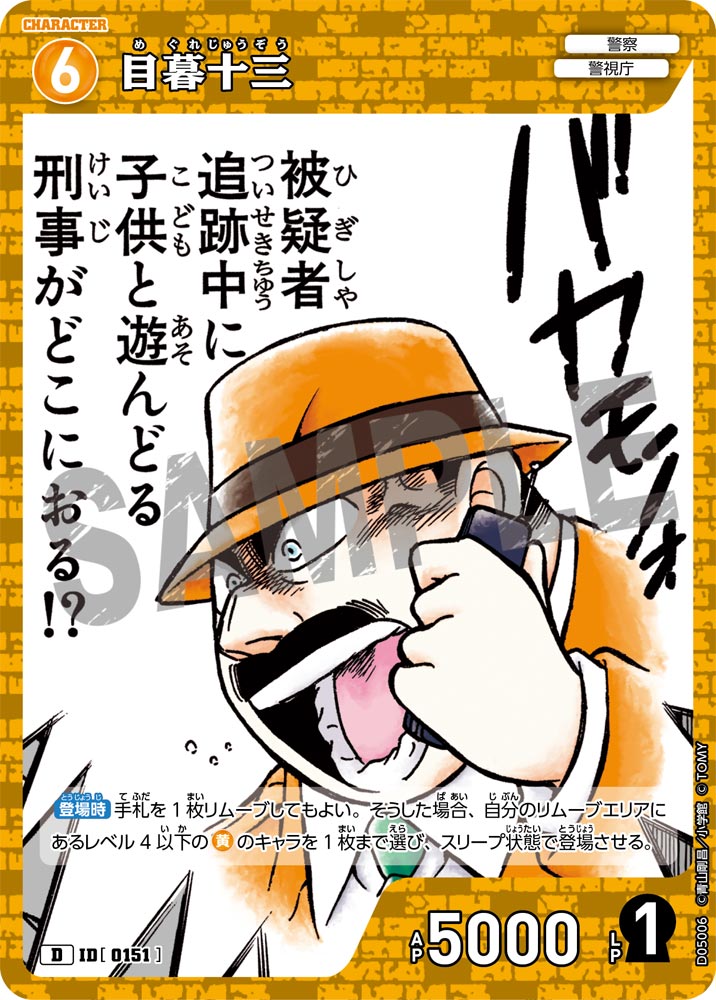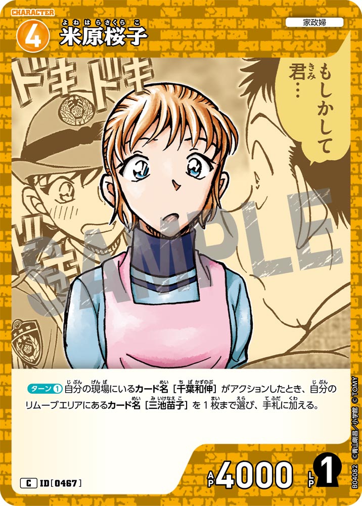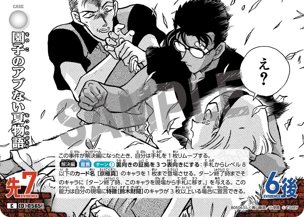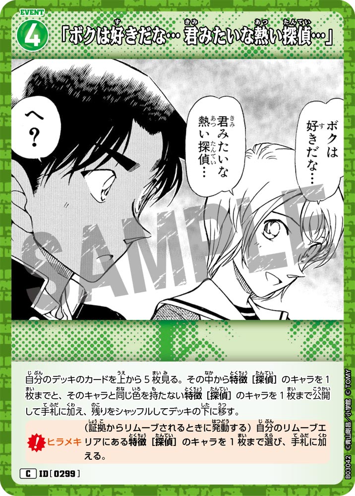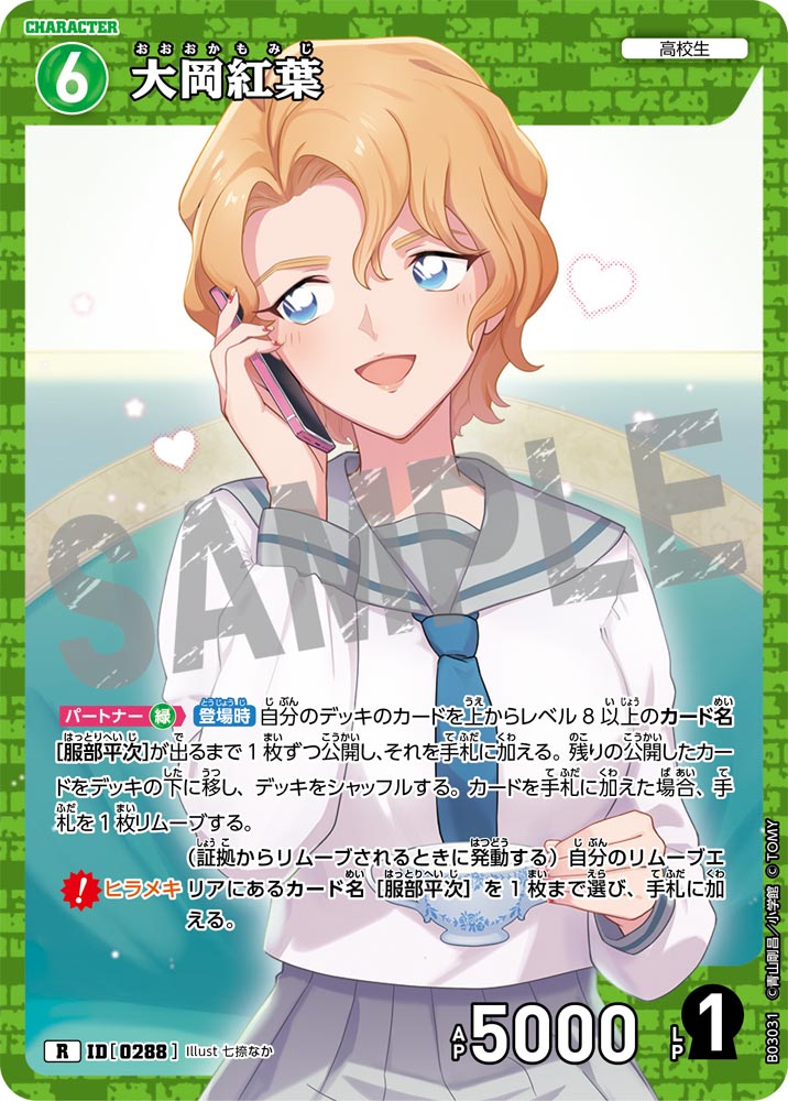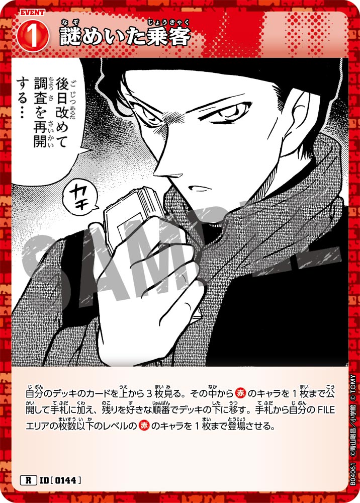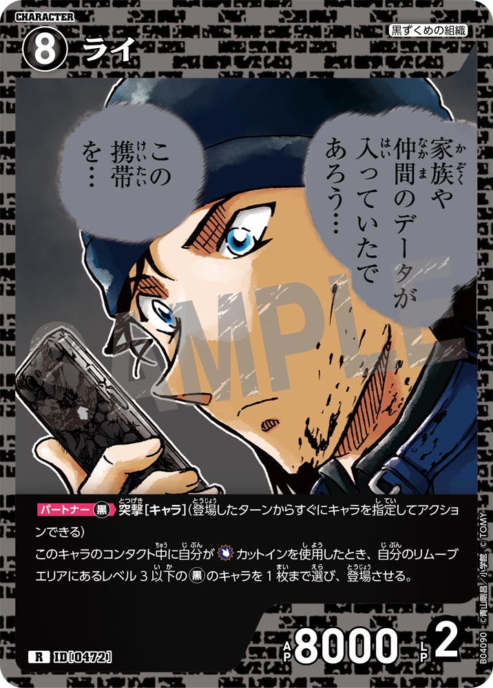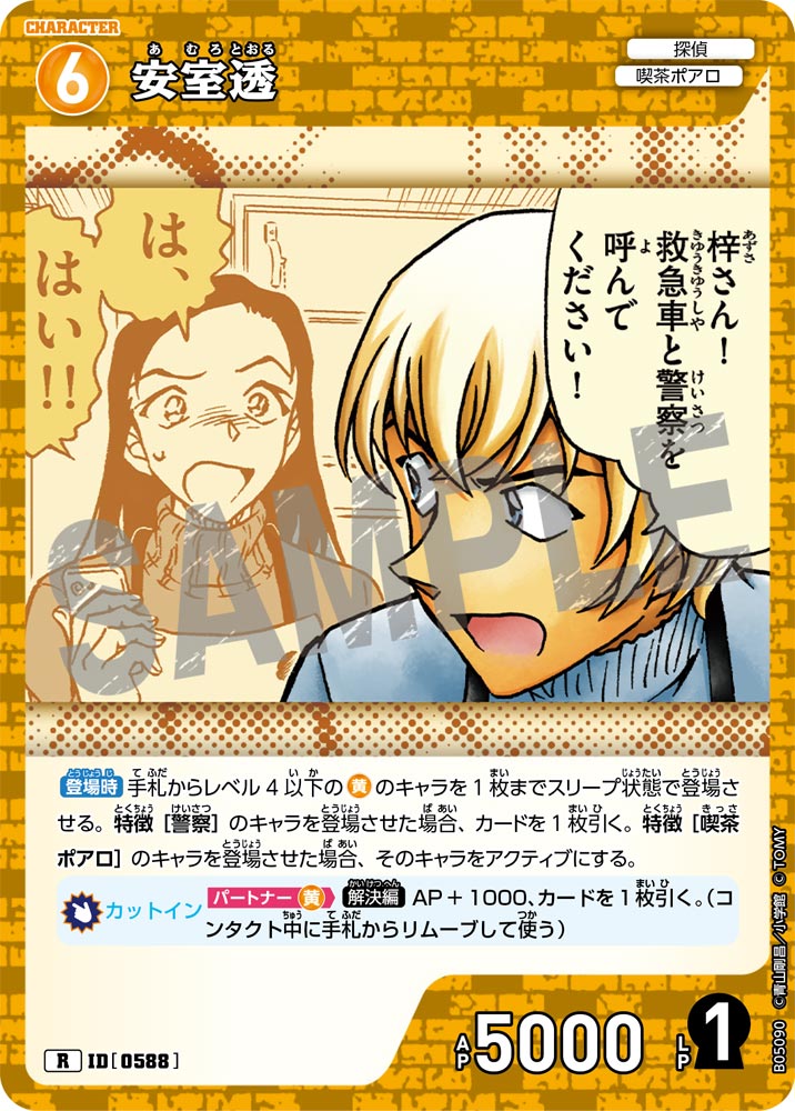 フリーワード 収録先 収録先を選択 ALL CT-P01 Case-Booster 01 探偵たちの切札(ジョーカー) CT-P02 Case-Booster 02 西と東の大決戦(コンタクト) CT-P03 Case-Booster 03 黒影の襲来(カットイン) CT-P04 Case-Booster 04 信義の絆(パートナー) CT-P05 Case-Booster 05 新たなる謎 CT-P06 Case-Booster 06 交錯する刃 CT-P07 Case-Booster 07 魅惑のマジック CT-D01 Case-StartDeck 01 江戸川コナン CT-D02 Case-StartDeck 02 服部平次 CT-D03 Case-StartDeck 03 怪盗キッド CT-D04 Case-StartDeck 04 赤井秀一 CT-D05 Case-StartDeck 05 安室透 CT-D06 Case-ThemeDeck 01 服部平次VS怪盗キッド CT-D07 Case-ThemeDeck 02 黒ずくめの組織 CT-D08 Case-ThemeDeck 03 青の古城探索事件 CT-D09 Case-ThemeDeck 04 死亡の館、赤い壁 CT-D10 Case-ThemeDeck 05 シャッフルロマンス PRカード 条件を追加+ 色 青 緑 白 赤 黄 黒 種類 パートナー キャラ イベント 事件 レアリティ C CP R RP SR SRP SEC D PR SRCP MR MRP MRCP レベル 1 2 3 4 5 6 7 8 9 〜 1 2 3 4 5 6 7 8 9 AP 0 1000 2000 3000 4000 5000 6000 7000 8000 LP 0 1 2 〜 0 1 2 この条件で検索する ×検索条件を解除 1625件 | 江戸川コナン ID カードの種類 レアリティ 色 特徴 レベル AP LP 収録先 事件レベル 先攻 後攻 イラストレーター カードの能力 変装 カットイン ヒラメキ FAQ Q&Aコミュニティで個別質問 NO.