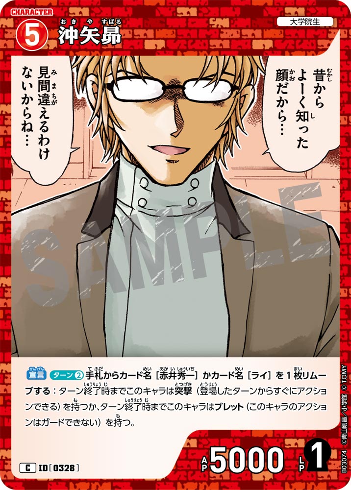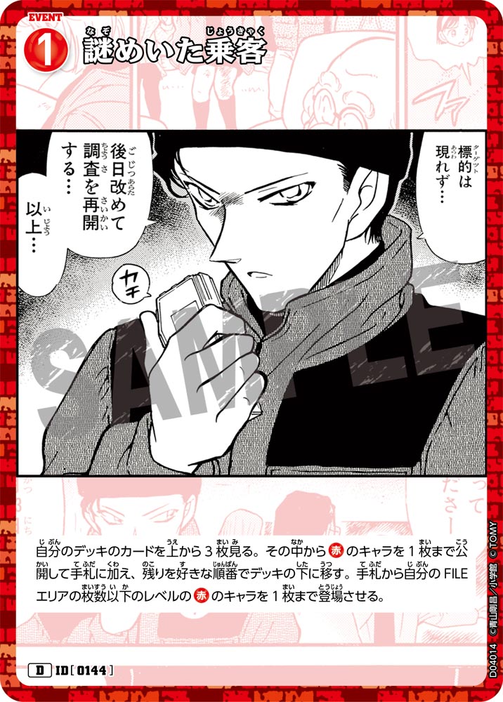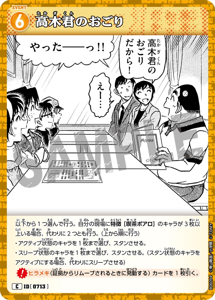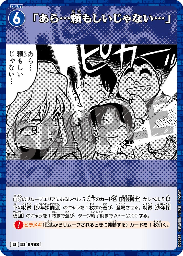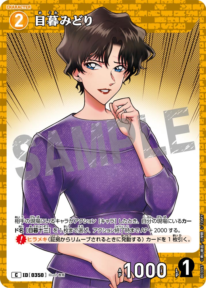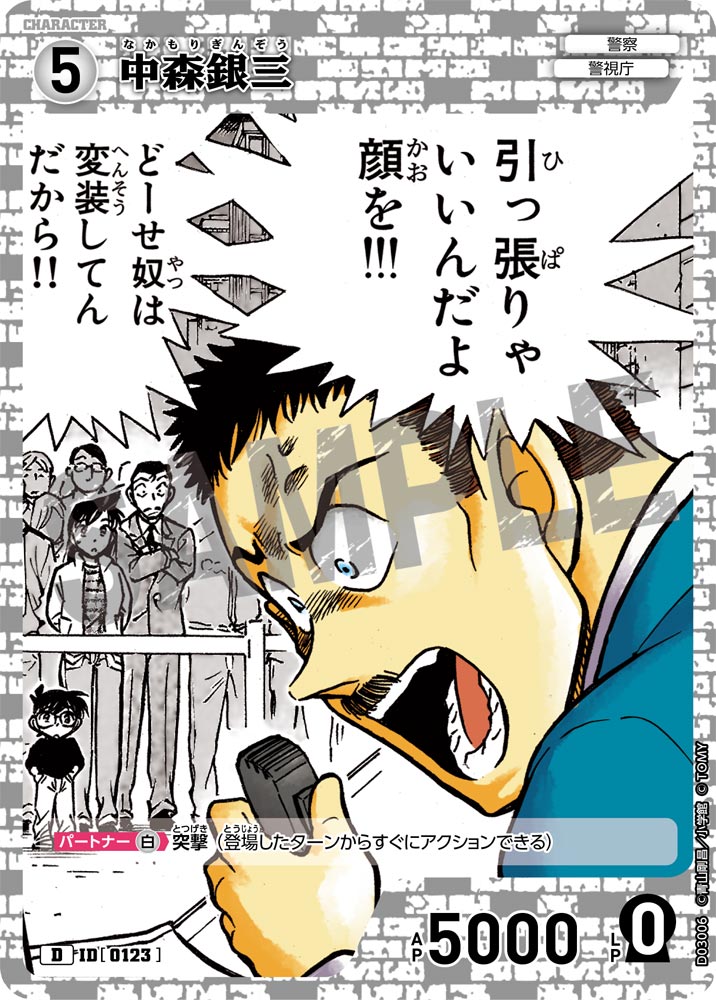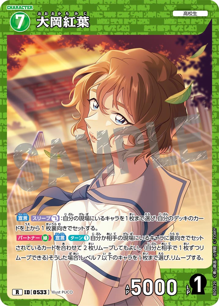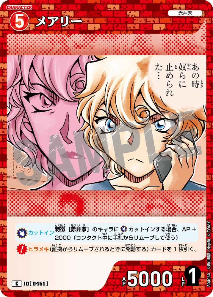 フリーワード 収録先 収録先を選択 ALL CT-P01 Case-Booster 01 探偵たちの切札(ジョーカー) CT-P02 Case-Booster 02 西と東の大決戦(コンタクト) CT-P03 Case-Booster 03 黒影の襲来(カットイン) CT-P04 Case-Booster 04 信義の絆(パートナー) CT-P05 Case-Booster 05 新たなる謎 CT-P06 Case-Booster 06 交錯する刃 CT-P07 Case-Booster 07 魅惑のマジック CT-D01 Case-StartDeck 01 江戸川コナン CT-D02 Case-StartDeck 02 服部平次 CT-D03 Case-StartDeck 03 怪盗キッド CT-D04 Case-StartDeck 04 赤井秀一 CT-D05 Case-StartDeck 05 安室透 CT-D06 Case-ThemeDeck 01 服部平次VS怪盗キッド CT-D07 Case-ThemeDeck 02 黒ずくめの組織 CT-D08 Case-ThemeDeck 03 青の古城探索事件 CT-D09 Case-ThemeDeck 04 死亡の館、赤い壁 CT-D10 Case-ThemeDeck 05 シャッフルロマンス PRカード 条件を追加+ 色 青 緑 白 赤 黄 黒 種類 パートナー キャラ イベント 事件 レアリティ C CP R RP SR SRP SEC D PR SRCP MR MRP MRCP レベル 1 2 3 4 5 6 7 8 9 〜 1 2 3 4 5 6 7 8 9 AP 0 1000 2000 3000 4000 5000 6000 7000 8000 LP 0 1 2 〜 0 1 2 この条件で検索する ×検索条件を解除 1625件 | 江戸川コナン ID カードの種類 レアリティ 色 特徴 レベル AP LP 収録先 事件レベル 先攻 後攻 イラストレーター カードの能力 変装 カットイン ヒラメキ FAQ Q&Aコミュニティで個別質問 NO.