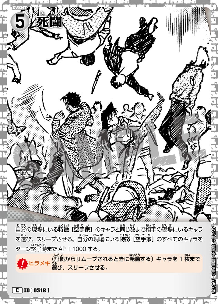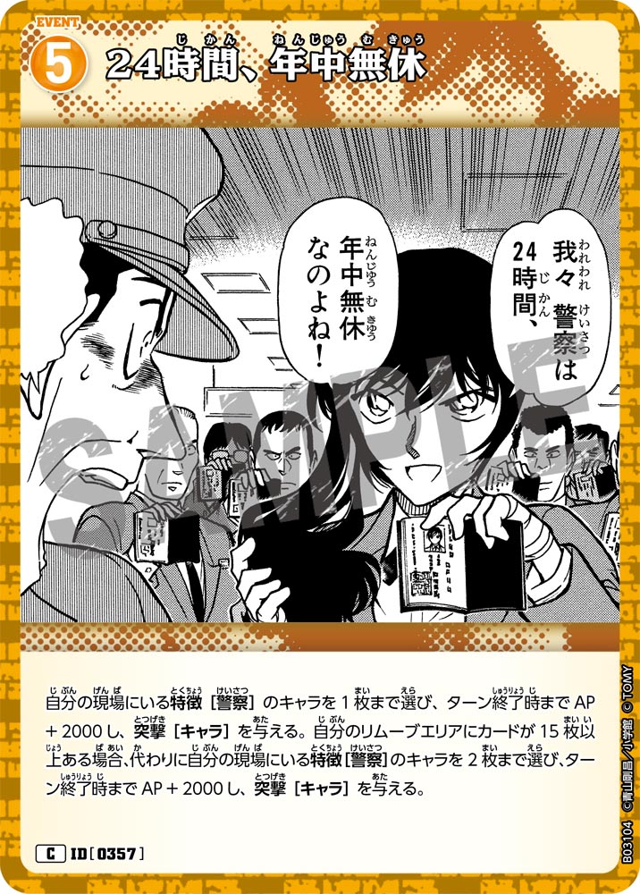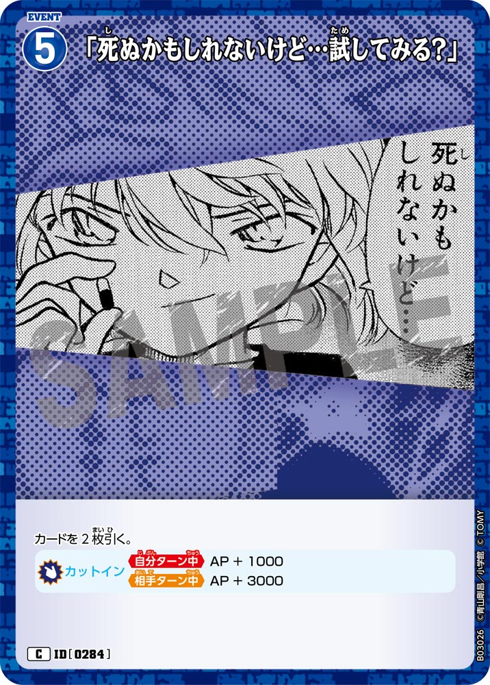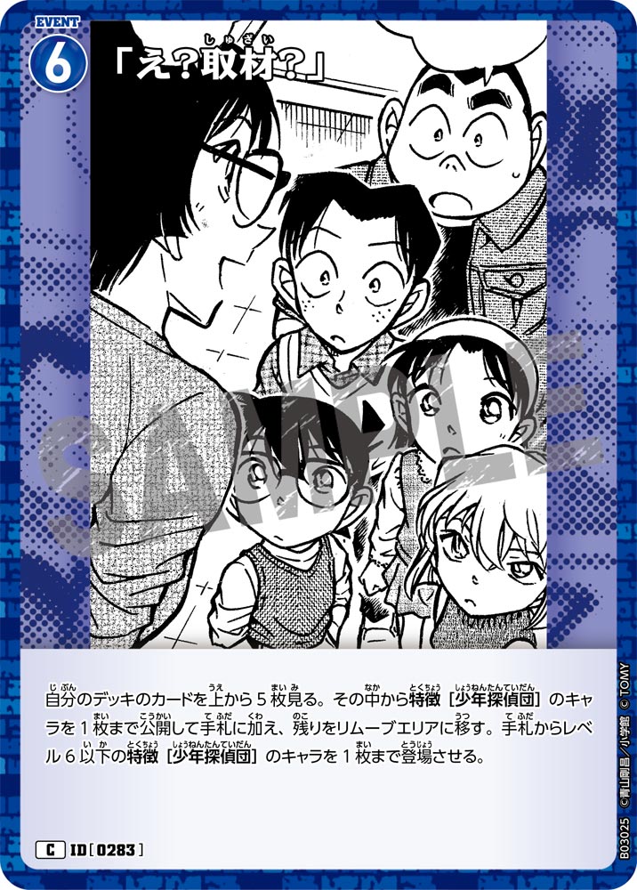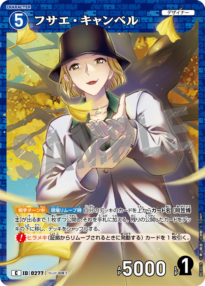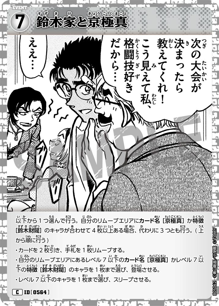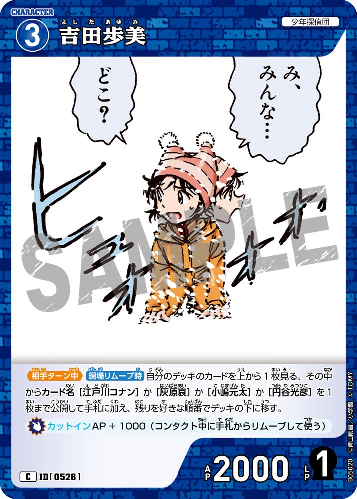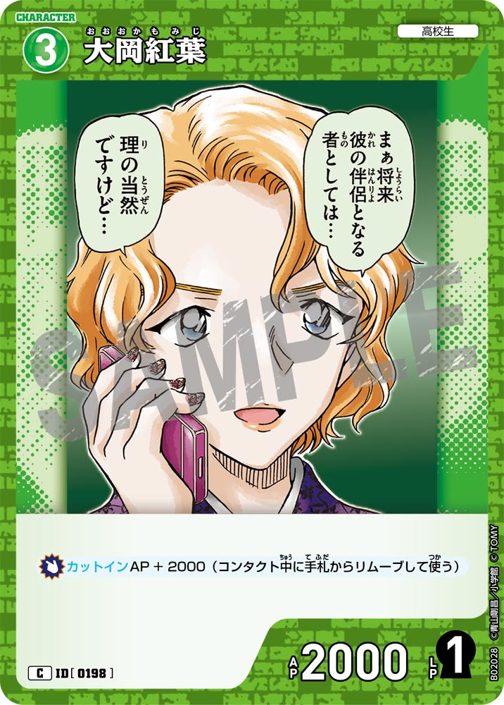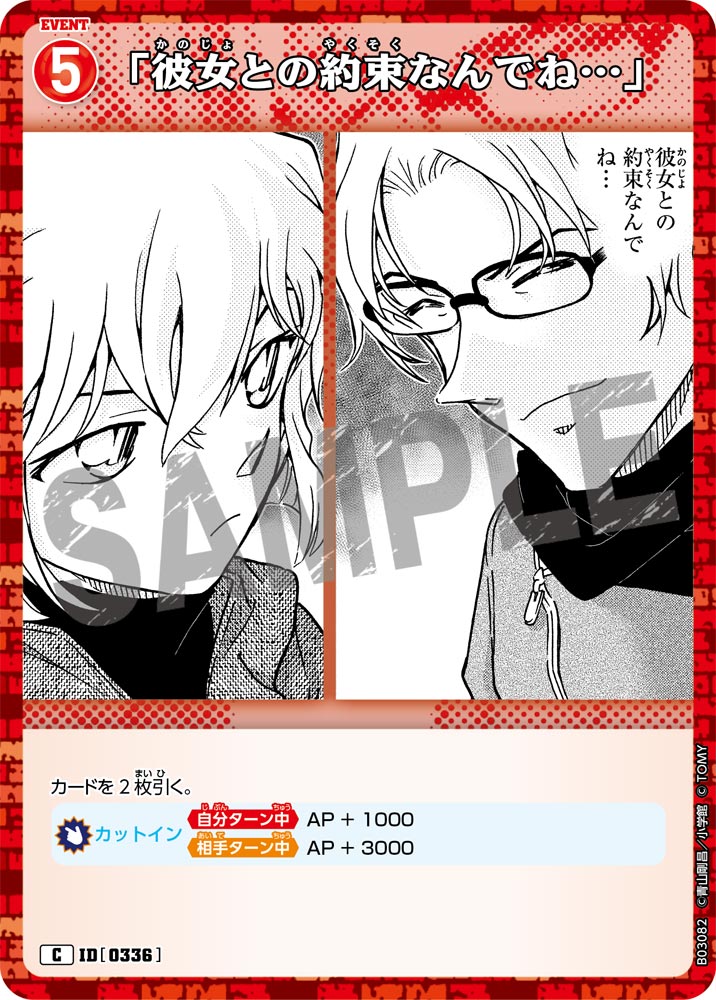 フリーワード 収録先 収録先を選択 ALL CT-P01 Case-Booster 01 探偵たちの切札(ジョーカー) CT-P02 Case-Booster 02 西と東の大決戦(コンタクト) CT-P03 Case-Booster 03 黒影の襲来(カットイン) CT-P04 Case-Booster 04 信義の絆(パートナー) CT-P05 Case-Booster 05 新たなる謎 CT-P06 Case-Booster 06 交錯する刃 CT-P07 Case-Booster 07 魅惑のマジック CT-D01 Case-StartDeck 01 江戸川コナン CT-D02 Case-StartDeck 02 服部平次 CT-D03 Case-StartDeck 03 怪盗キッド CT-D04 Case-StartDeck 04 赤井秀一 CT-D05 Case-StartDeck 05 安室透 CT-D06 Case-ThemeDeck 01 服部平次VS怪盗キッド CT-D07 Case-ThemeDeck 02 黒ずくめの組織 CT-D08 Case-ThemeDeck 03 青の古城探索事件 CT-D09 Case-ThemeDeck 04 死亡の館、赤い壁 CT-D10 Case-ThemeDeck 05 シャッフルロマンス PRカード 条件を追加+ 色 青 緑 白 赤 黄 黒 種類 パートナー キャラ イベント 事件 レアリティ C CP R RP SR SRP SEC D PR SRCP MR MRP MRCP レベル 1 2 3 4 5 6 7 8 9 〜 1 2 3 4 5 6 7 8 9 AP 0 1000 2000 3000 4000 5000 6000 7000 8000 LP 0 1 2 〜 0 1 2 この条件で検索する ×検索条件を解除 1625件 | 江戸川コナン ID カードの種類 レアリティ 色 特徴 レベル AP LP 収録先 事件レベル 先攻 後攻 イラストレーター カードの能力 変装 カットイン ヒラメキ FAQ Q&Aコミュニティで個別質問 NO.