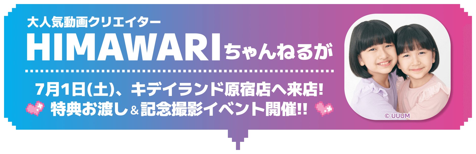 - イベント参加ご希望の方は、7月1日(土)にキデイランド原宿店にて