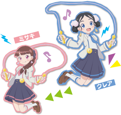 Girls2メンバー9人のうちミサキ(声:鶴屋美咲)・クレア(声:増田來亜)・キラ(声:山口綺羅)・