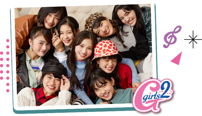 Girls2メンバー9人のうちモモカ(声:隅谷百花)・ミナミ(声:菱田未渚美)