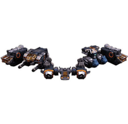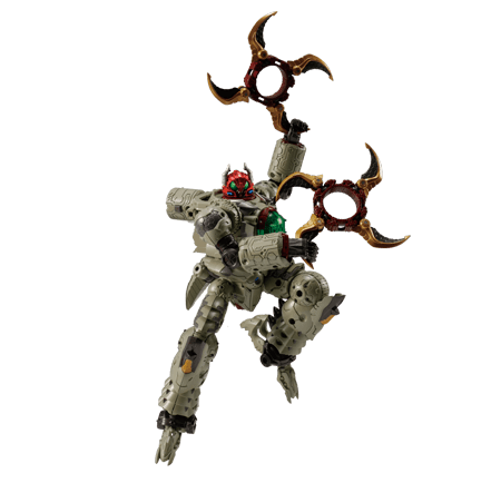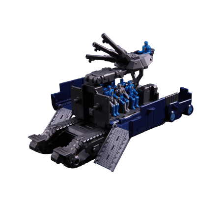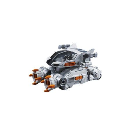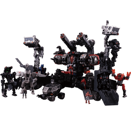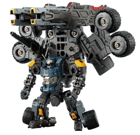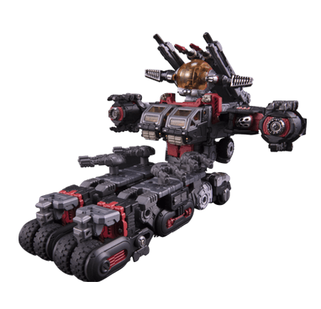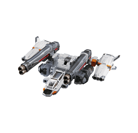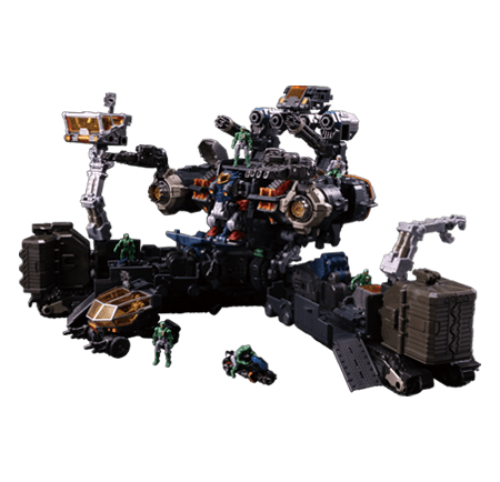 - ▶︎マクロゾーンの多重型防衛網をかいくぐり猛威を振るうワルダーの亜空強襲攻撃に対し、ダイアクロン総司令部は移動型防衛システム<V-MAX>計画を打ち出す。これまで輸送移動部隊のバックアップ的役割を担っていたバトルコンボイ機とグランダー型自走基地を主力旗艦に選定、数世代特進とも言える程の大幅なアップグレードを成す<バトルコンボイ V-MAX>の開発がスタートする。