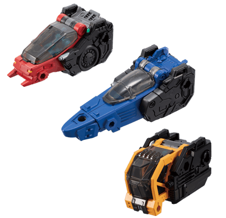 - ▶︎トライランブラーのカスタム機<レッドチェイサー>に搭載された各種最先端機能をフィードバックしたトライダッシャー<サンバースト>が完成。これに準じた機能が搭載された<D-キャリバー>シリーズと呼ばれるトライヴァース各機種の製造もスタートする。