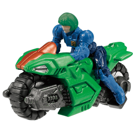 - ▶︎月面のダイアクロン科学研究基地で開発されたダッシャー、ジェッター、ディガーとは異なり、メトラゾーンの研究施設が<ソルジャータイプ>のキャンセラーとして急ピッチで開発したトライヴァースの新型マシン<トライランブラー>が完成。超高速戦闘機動の必要性が高まりハイパーアクセラレーター型のフリーゾンエンジンを搭載したカスタム機の試験も同時にスタートした。