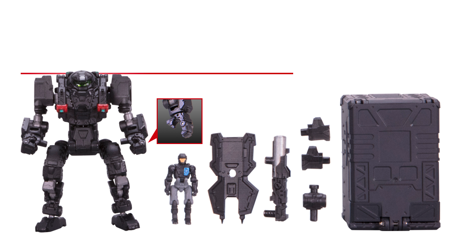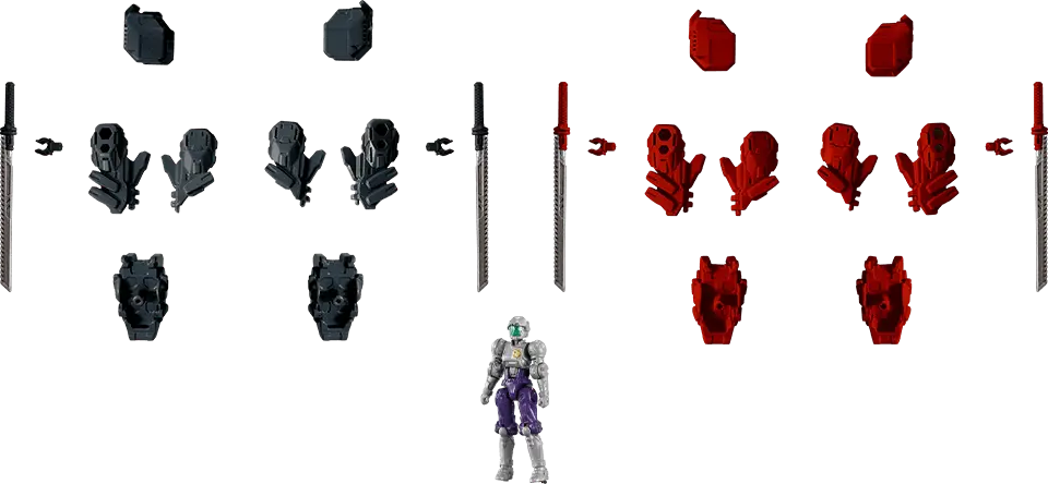 本体(1)、ボレットモジュール (1)、推進ユニット (1)、ジョイントパーツA(2)ジョイントパーツB(2)、ジョイントパーツC(1)、シールド(2)、武器A(2)、武器B(1)、スラスター(2)、ランナーパーツA(1)、ランナーパーツB(1)、ダイアクロン隊員/Ver.2.0(1)、シール(1)、パンフレット(1)、取扱説明書(1)