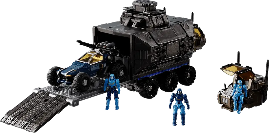 コックピットユニット(1)、コンテナ本体(1)、レーダーパーツA(1)、レーダーパーツB(1)、ダイアクロン隊員(2)、ビークル(1)、二輪戦闘車(1)、連結パーツ(2)、ランナーパーツ(2)、シール(1)、スチールシート(1)、パンフレット(1)、取扱説明書(1)