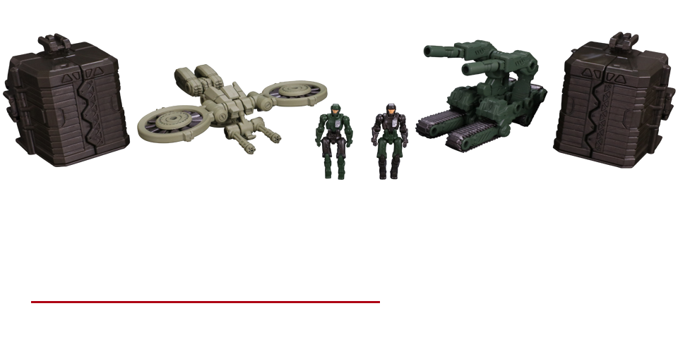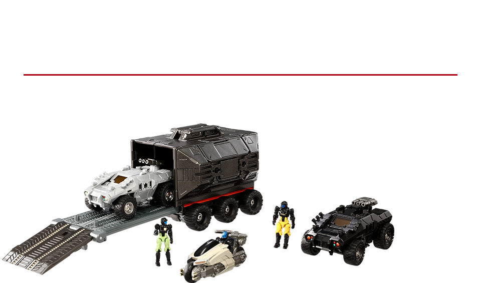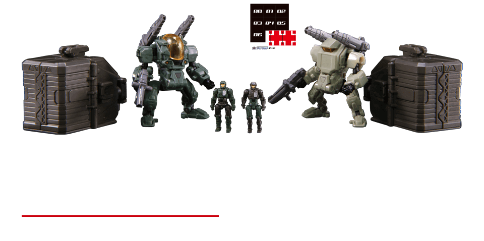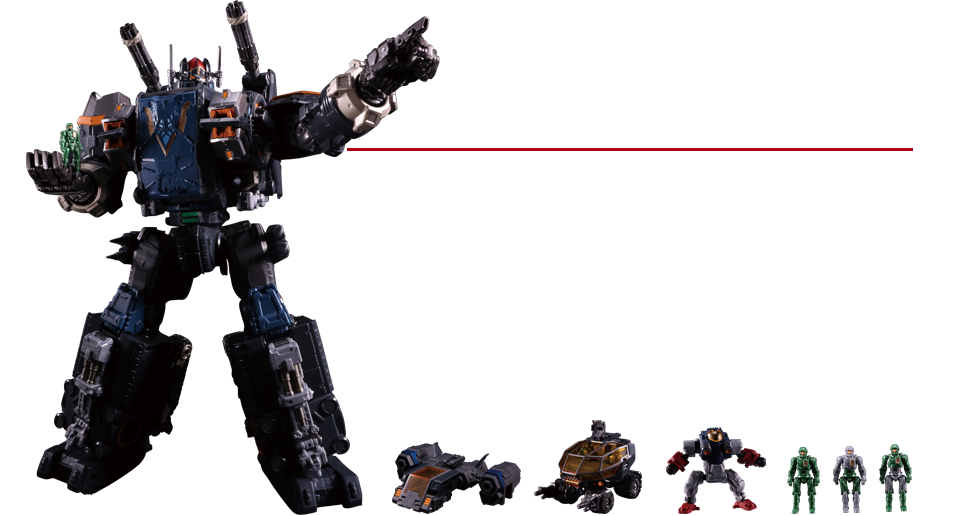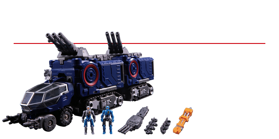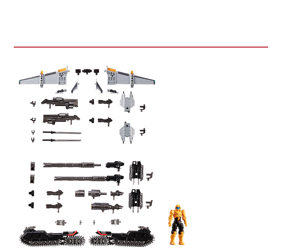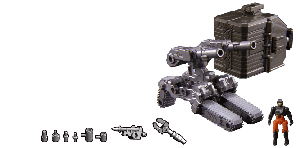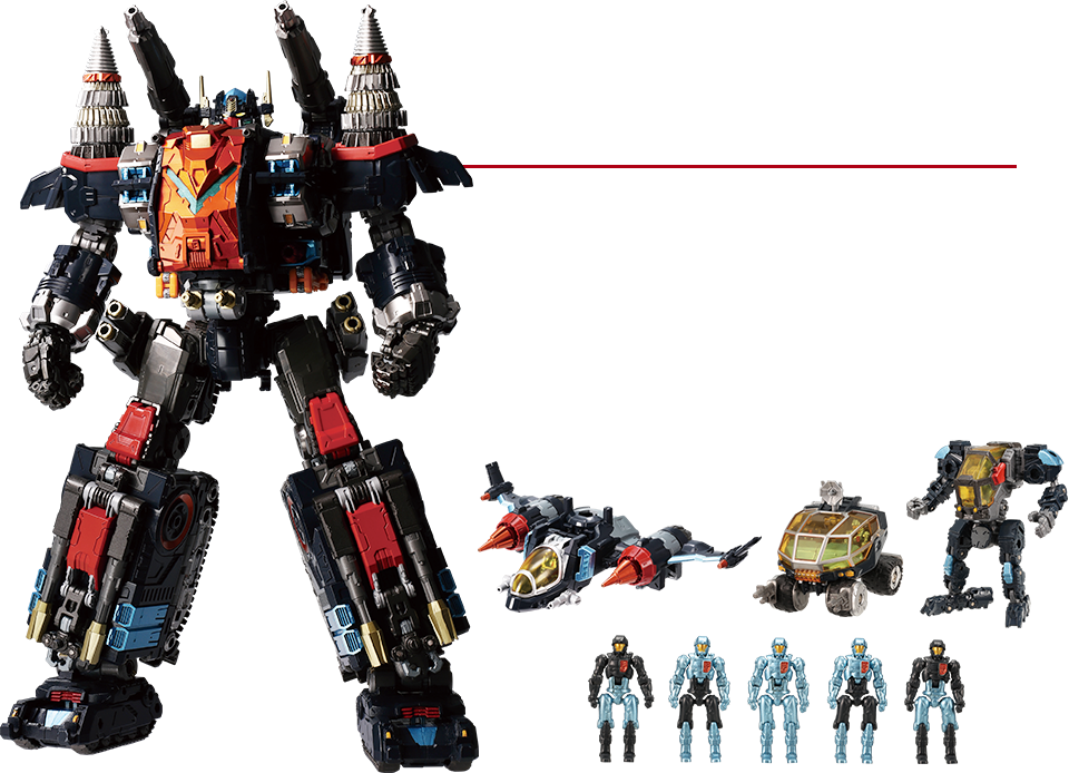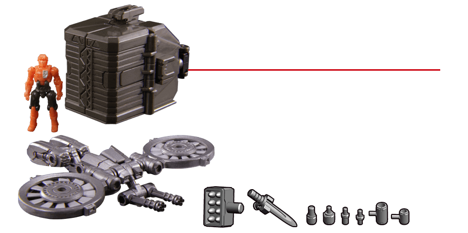 本体(1)、、大型武器(1)、武器A(2)、マシン(1)、ロックパーツ(1)、ダイアクロン隊員/Ver.2.0(6)、ダイアクロン女性隊員(4)、スチールシート(1)、シール(1)、パンフレット(1)、取扱説明書(1)