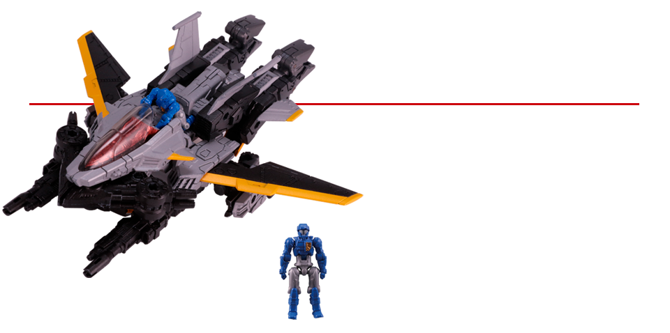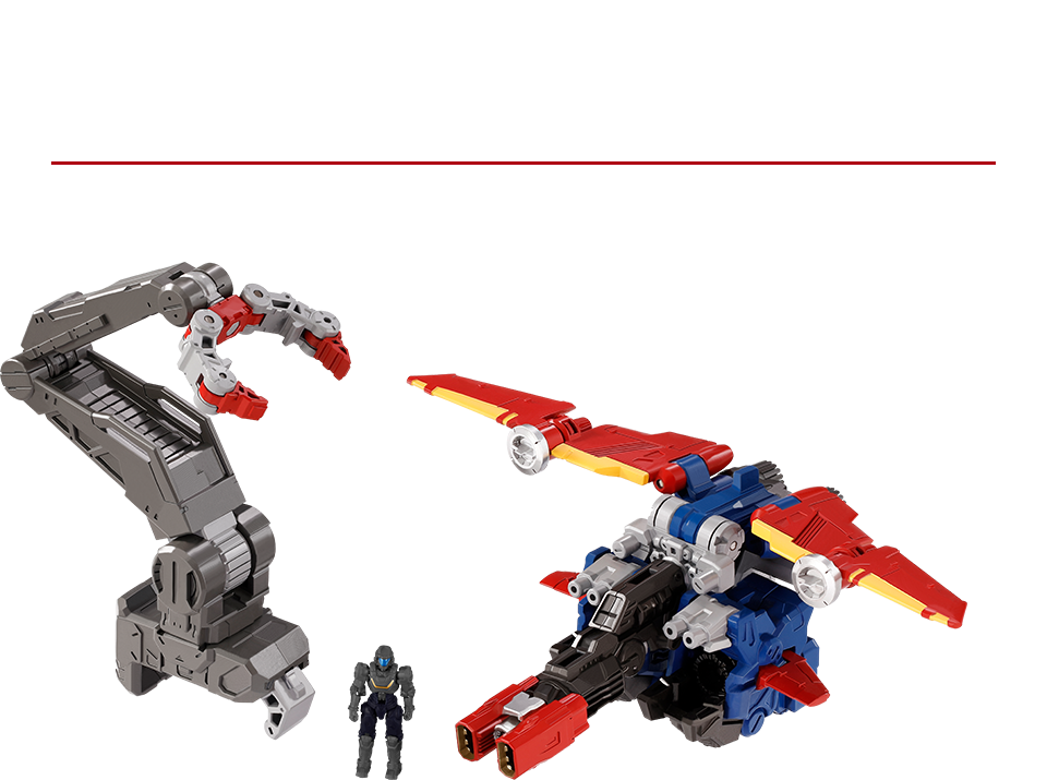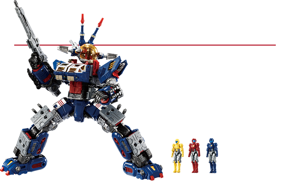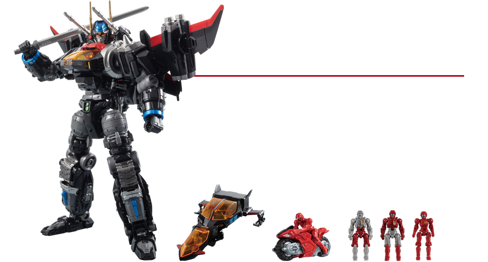 本体(1)、ブースター右(1)、ブースター左(1)、懸架ジョイントA (1)、懸架ジョイントB (1)、連結ジョイント(2)、ダイアクロン隊員/Ver.2.0 (1)、ランナーパーツ(1)、取扱説明書(1)、パンフレット(1)、アダプター(1)