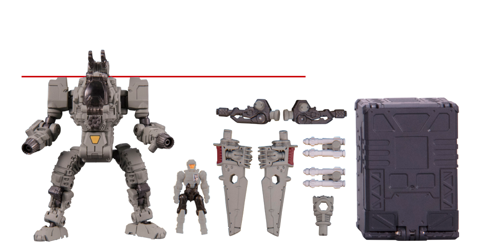 本体×1個、ボレットモジュール×1個、飛行ユニット×1個、肩部装着パーツ×2個、脚部装着パーツA×2個、脚部装着パーツB×2個、脚部装着パーツC×2個、腕部装着パーツ×2個、武器A×1個、武器B×2個、ランディングギアパーツ×2個、ダイアクロン女性隊員×1個、ランナーパーツ×2個、シール×1枚、パンフレット×1冊、取扱説明書×1冊