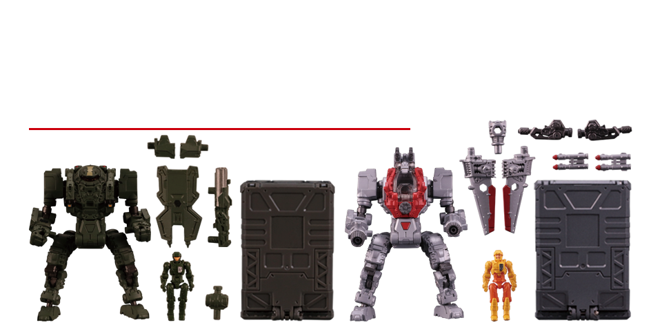 本体(1)、ボレットモジュール(1)、推進ユニット(1)、脚部装着パーツA(2)、脚部装着パーツB(2)、脚部装着パーツC(2)、脚部装着パーツD(2)、肩部装着パーツA(2)、肩部装着パーツB(2)、武装パーツ(4)、ミサイル(2)、武器(2)、武器マウント(1)、ビークル(1)、ランナーパーツ(1)、ダイアクロン隊員/Ver.2.0(1)、シール(1)、パンフレット(1)、取扱説明書(1)