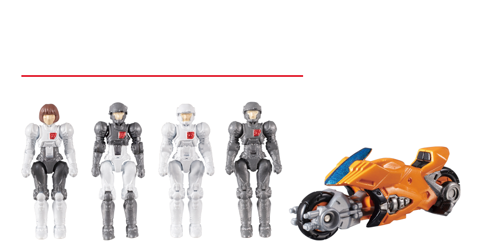 マシンA(1)、マシンB(1)、マシンC(2)、マシンD(1)、マシンE(1)マシンF(1)、マシンG(2)、ダイアクロン隊員/Ver.2.0(3)、ダイアクロン女性隊員(2)、パンフレット(1)、取扱説明書(1)