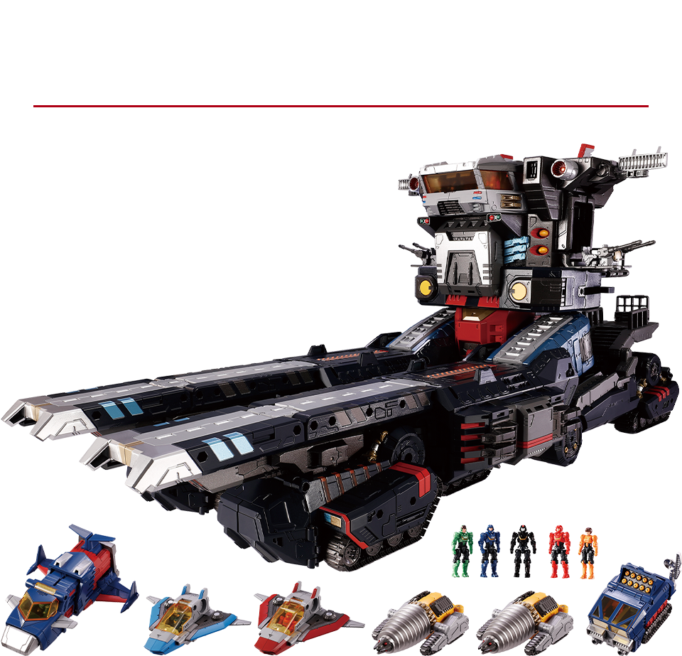 GXソード(1)、ジョイントパーツ一式(1)、ジョイントユニット(左)(1)、ジョイントユニット(右)(1)、武器A(2)、武器B(2)、武器C(2)、武器D(2)、武器E(2)、砲台(2)、マシン(2)、甲板ユニットA(左)(1)、甲板ユニットA(右)(1)、甲板ユニットB(左)(1)、甲板ユニットB(右)(1)、アームユニット(1)、ダイアクロン隊員/Ver.2.0(3)、スチールシート(1)、パンフレット(1)、取扱説明書(1)