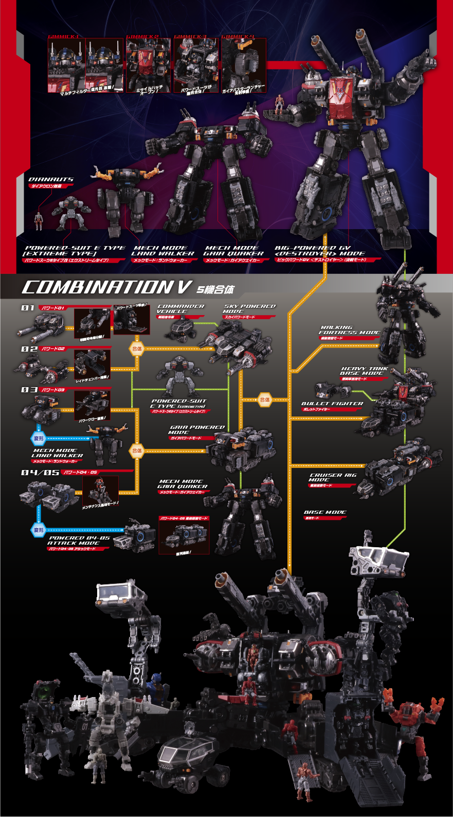 新規に装備された武装は5機のパワードマシンに分散装備しており 各マシン単位でも戦闘力の強化が為されている。<デストロイヤー>機最大の武装は5機合体モードでのみ使用可能な<デストラクターキャノン>である。デストラクターキャノン発射の際にはエネルギーの過剰チャージが必須となり 頻繁には使用できない為 通常は戦況を見計らっての一撃必殺の最終攻撃手段として使用される。