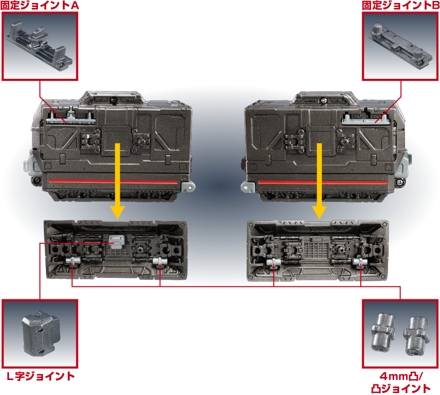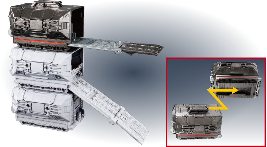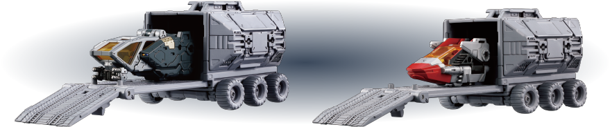 自走機能を備えた輸送モジュール型装甲マシン。数機での縦列連結や列車式連結等多彩な連結機能を持ちダイアクロン隊の車両やPS機等の比較的小型マシンの輸送や格納に運用される。