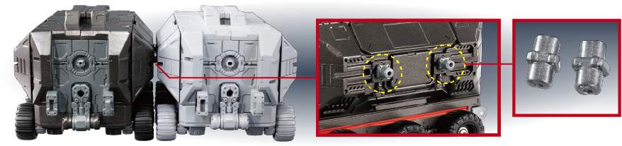 またホイールユニットを分離させたチェンバコアー状態で垂直連結やクロス連結させる事により簡易型の前線基地や駐機施設等を構築する事も可能だ。